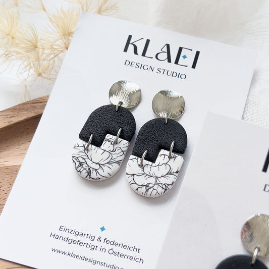 Col C ✦ Weiß-schwarze Blumen Puzzle Ohrringe