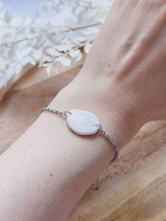 Bridal Col ✦ Perlmuttfarbene Ohrstecker mit silber-glänzendem Muster