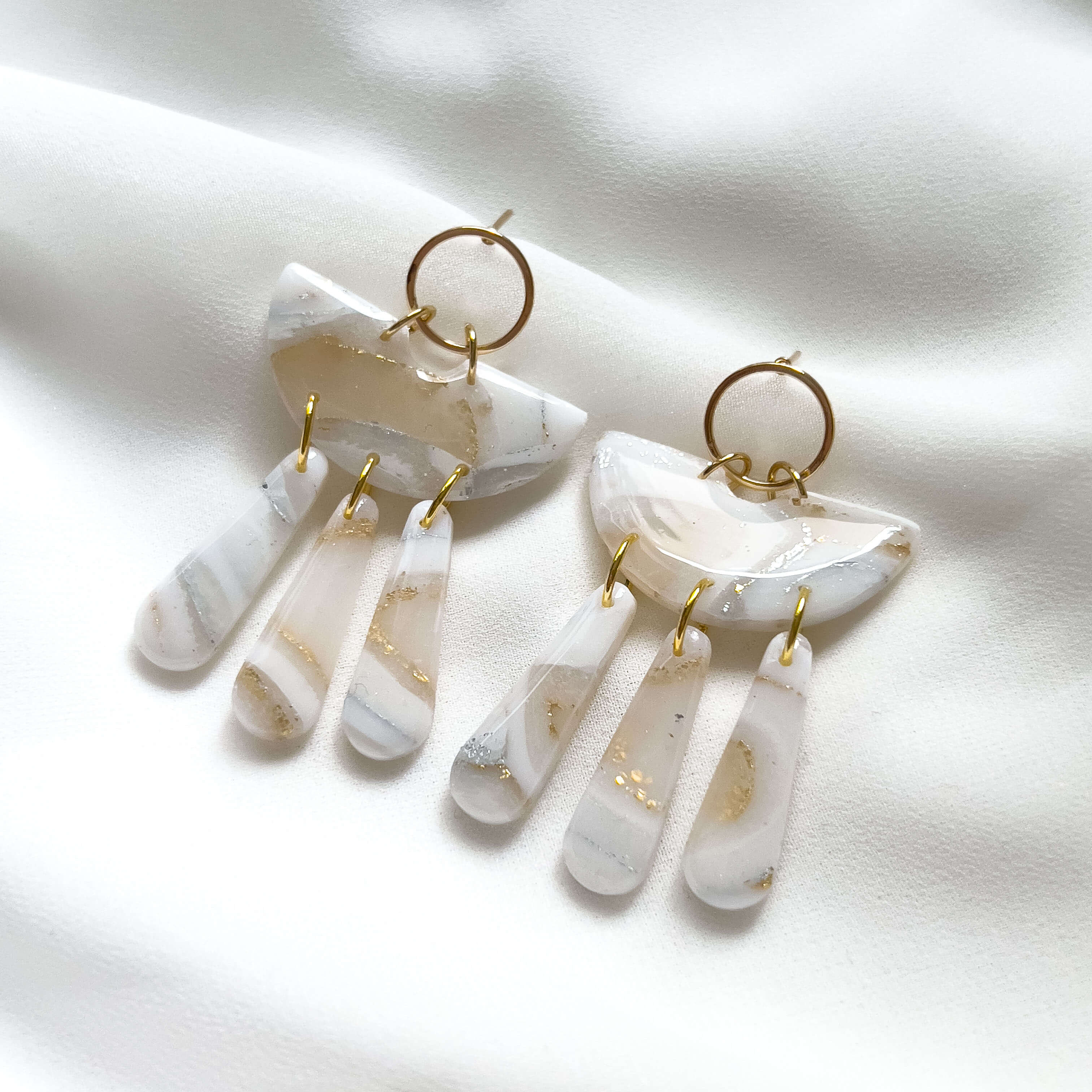 Bridal Col ✦ Perlmuttfarbene Ohrringe mit goldenem Muster