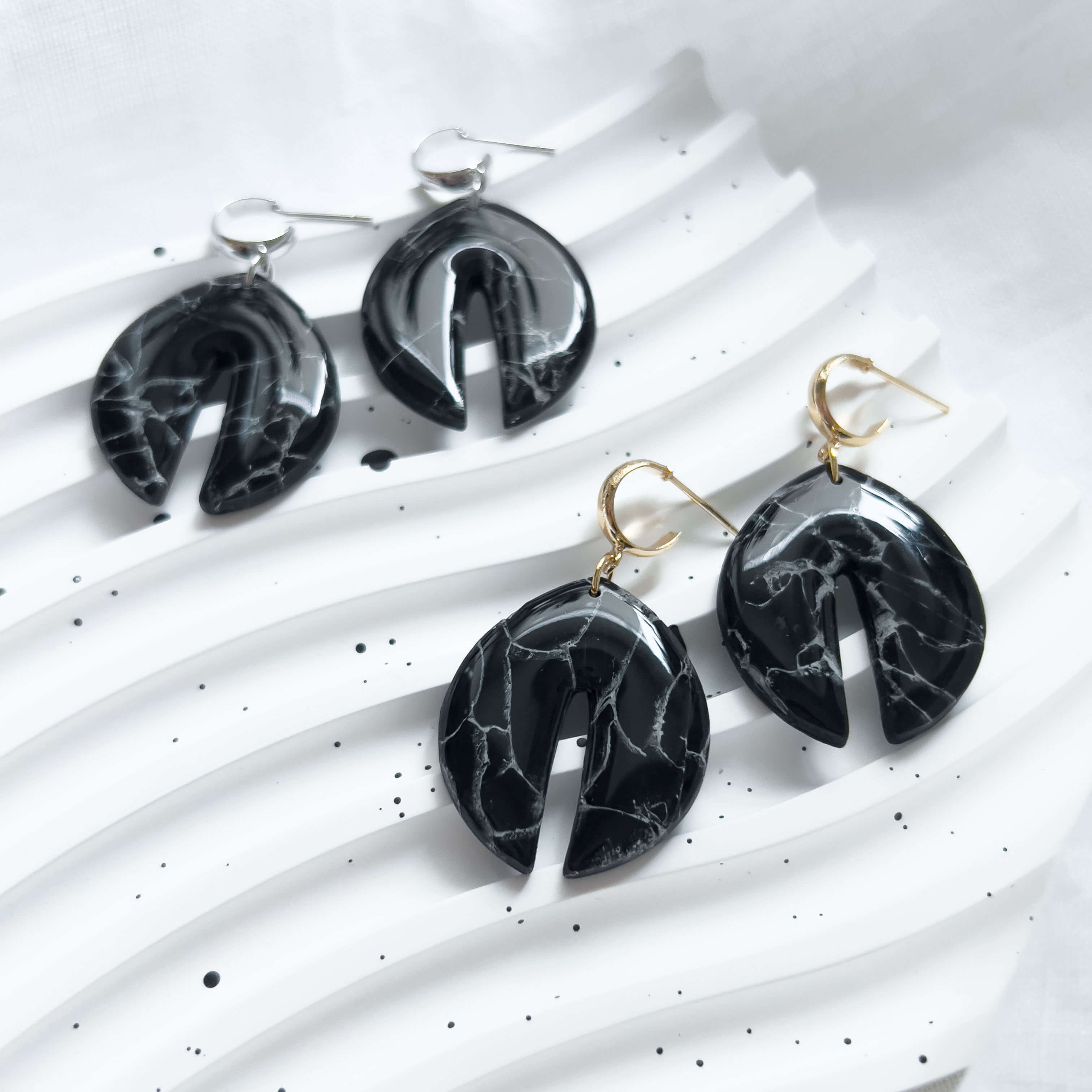 Col R ✦ Schwarz marmorierte Huggie Ohrringe