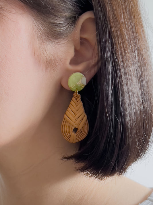 Col J ✦ Pistaziengrün marmorierte Rattan-Ohrringe