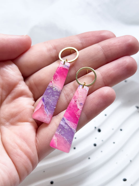 Col R ✦ Fuchsia-marmorierte lange Ohrringe