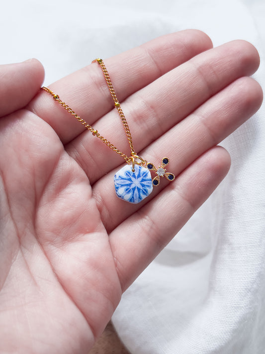 Col K ✦ Grün marmorierte Lotus Boho Halskette