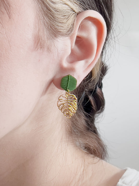 Col K ✦ Kleine tropische Monstera Ohrringe