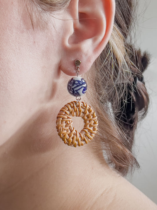 Col K ✦ Griechische Keramik-Perlen Rattan Ohrringe