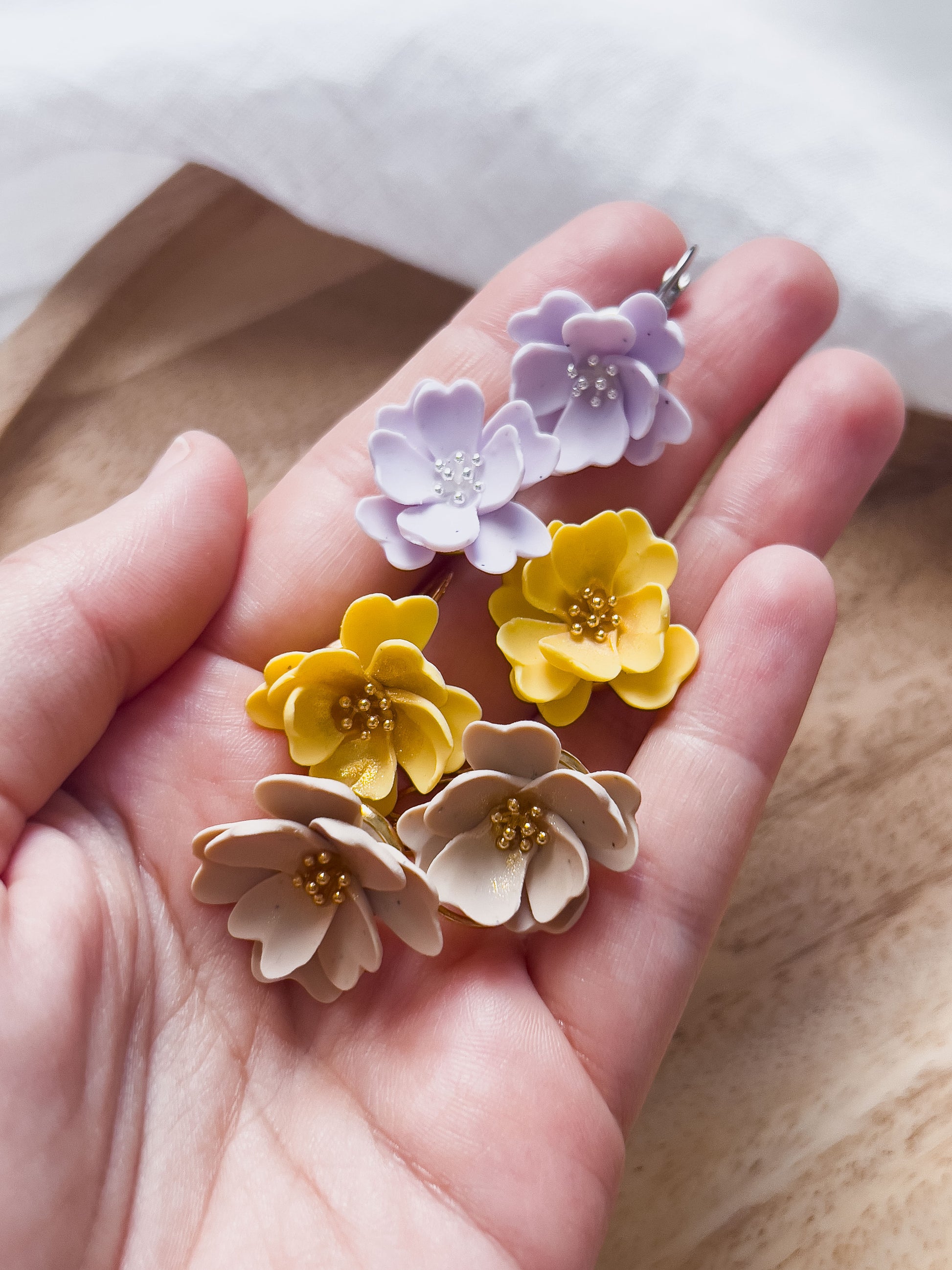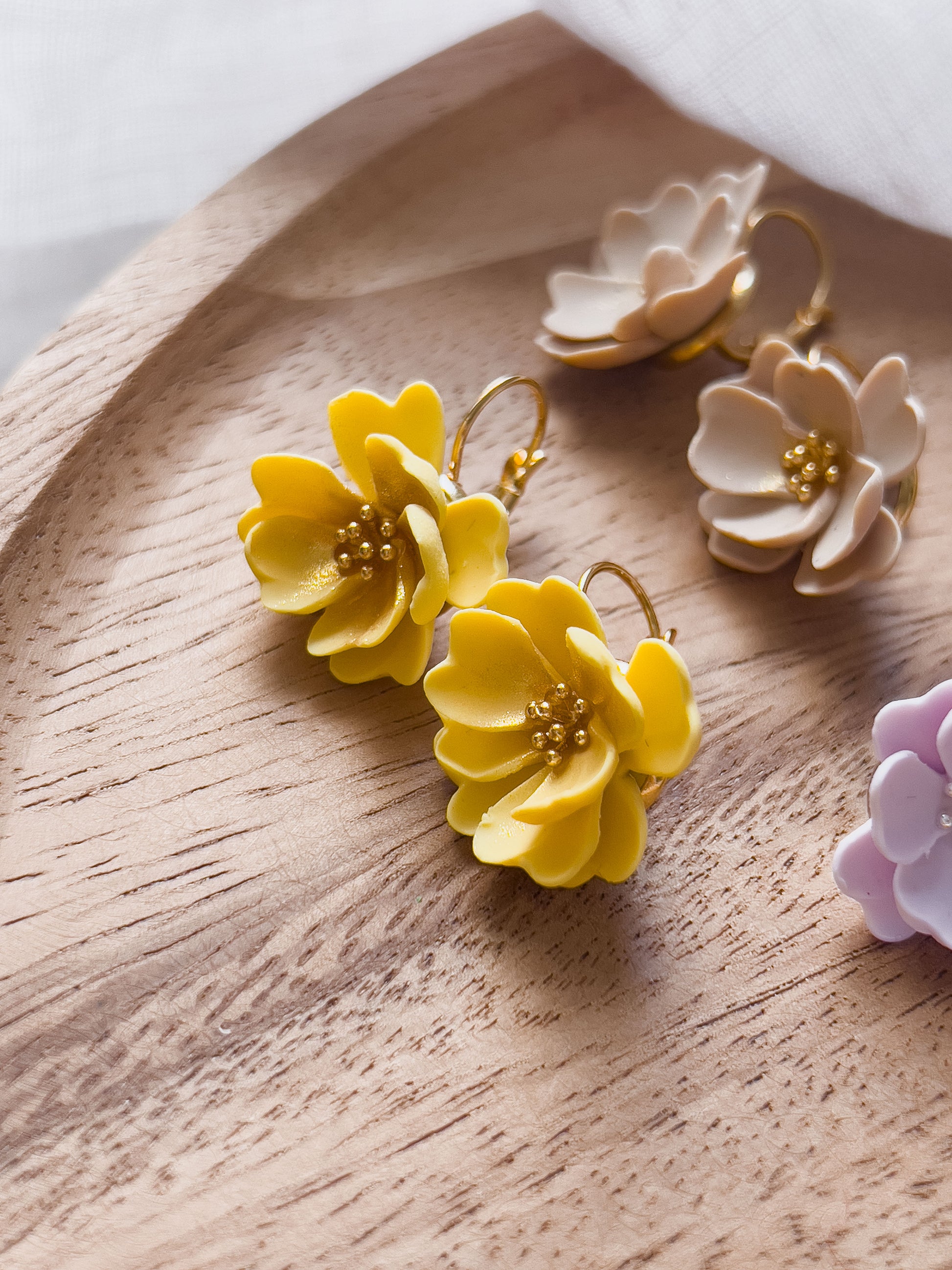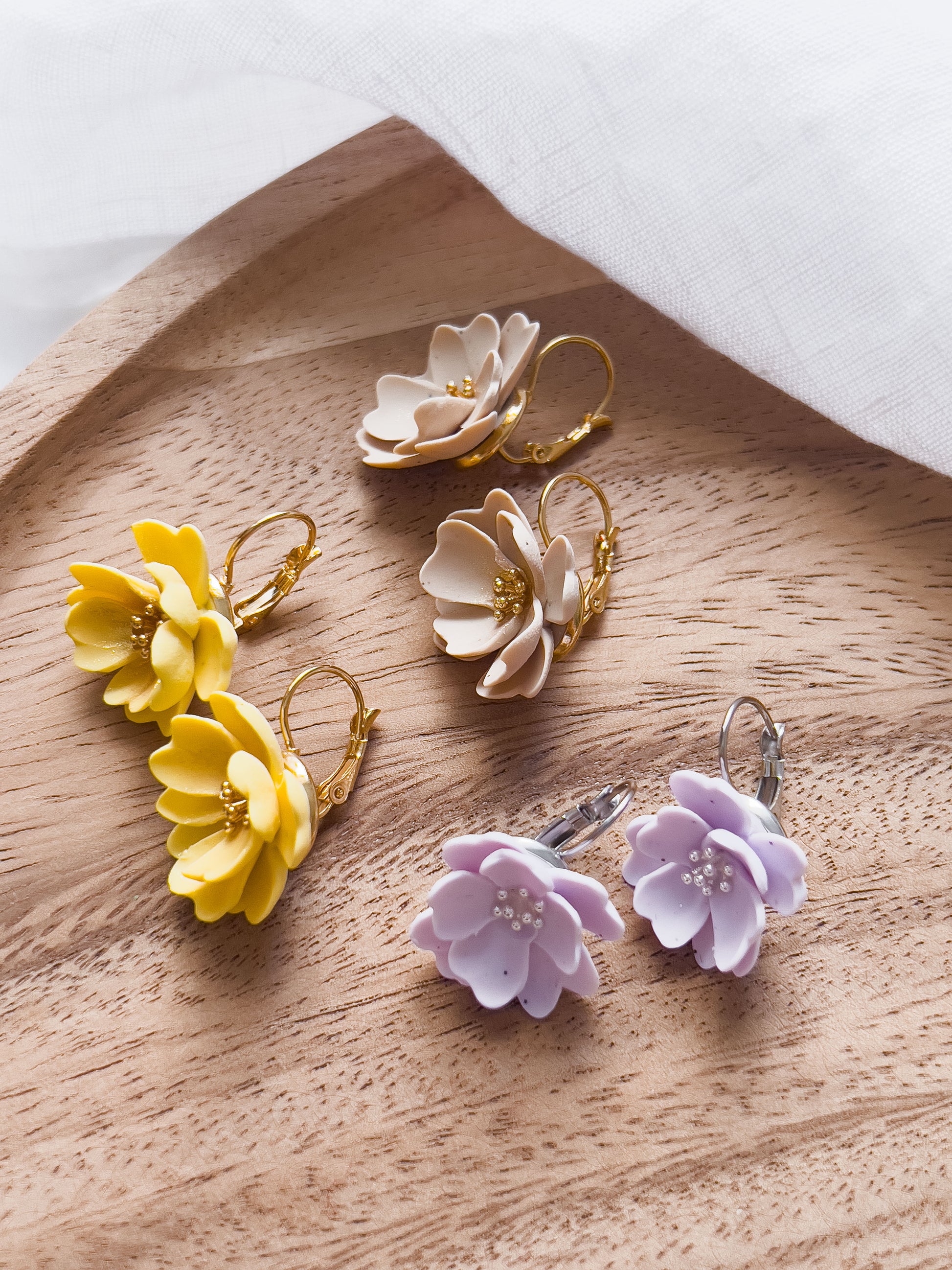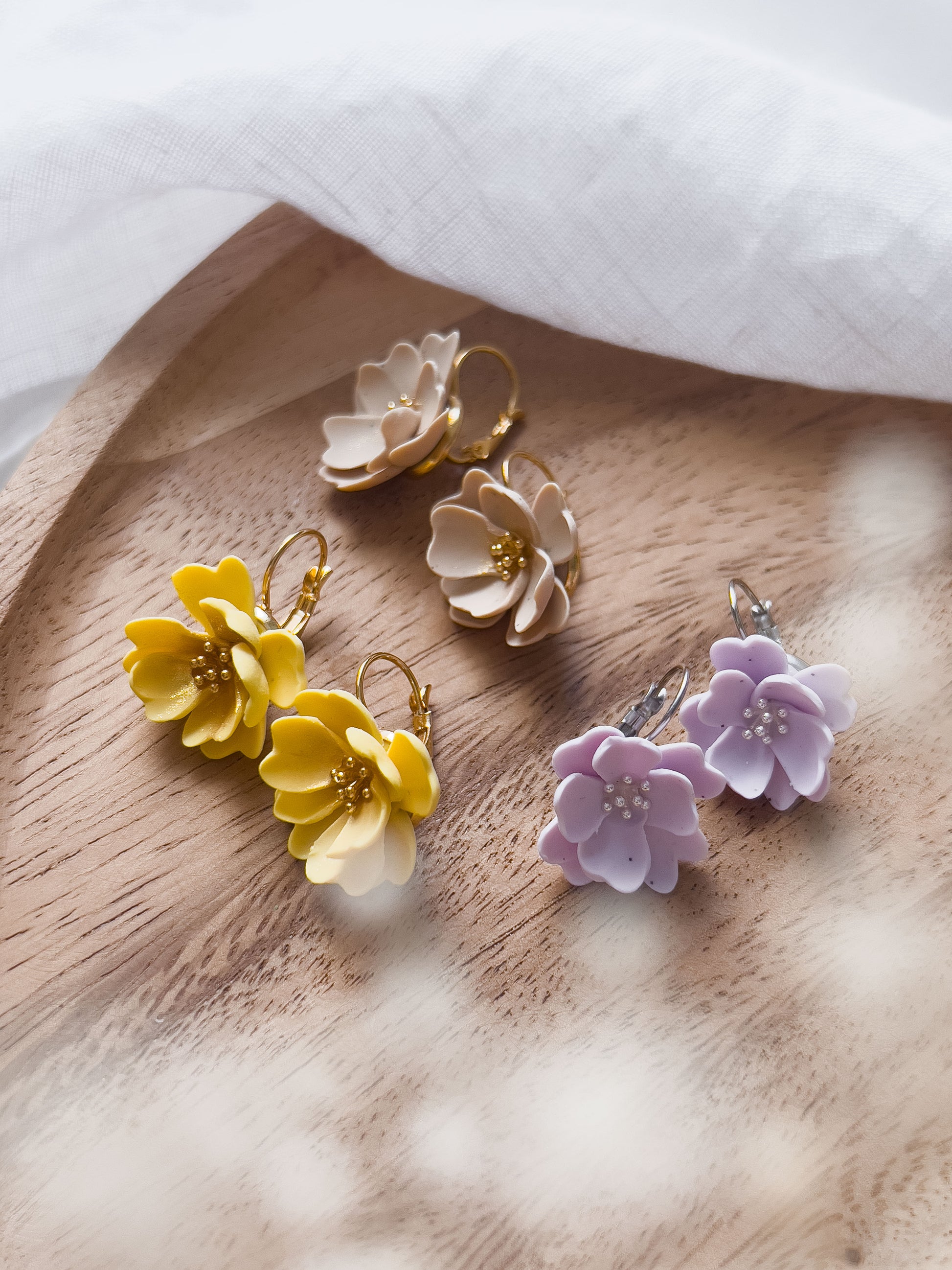 Mit diesen einzigartigen handgemachten Blumen Ohrhängern mit super easy verschließbarer Klapp-Brisur und vielen frohen Farben fällst du jedenfalls auf. Die Ohrringe kannst du dank ihrer neutralen Farben zu jedem Outfit kombinieren. Ob für eine Hochzeit, für einen Dinnerabend oder zu einem luftigen Sommerkleid – mit diesen Cuties bist du passend geschmückt.