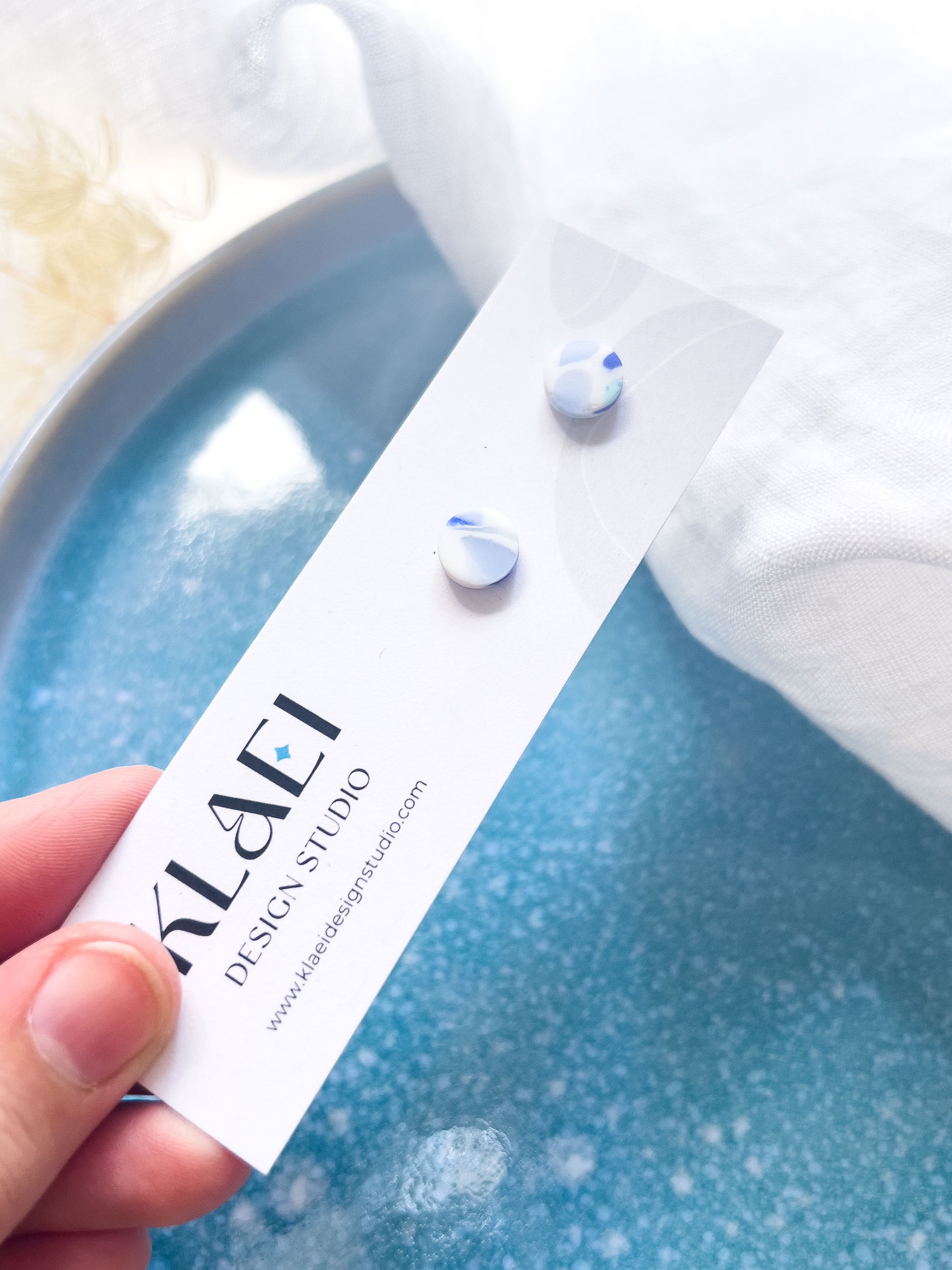 They are back! Passend zu unseren blauen Ohrringen, Halsketten und Armbändern aus den Kollektionen KALYPSO, SOL und BAHRI gibt es wieder unsere kleinen Ohrstecker mit dem schönen Muster in tollen Blautönen.