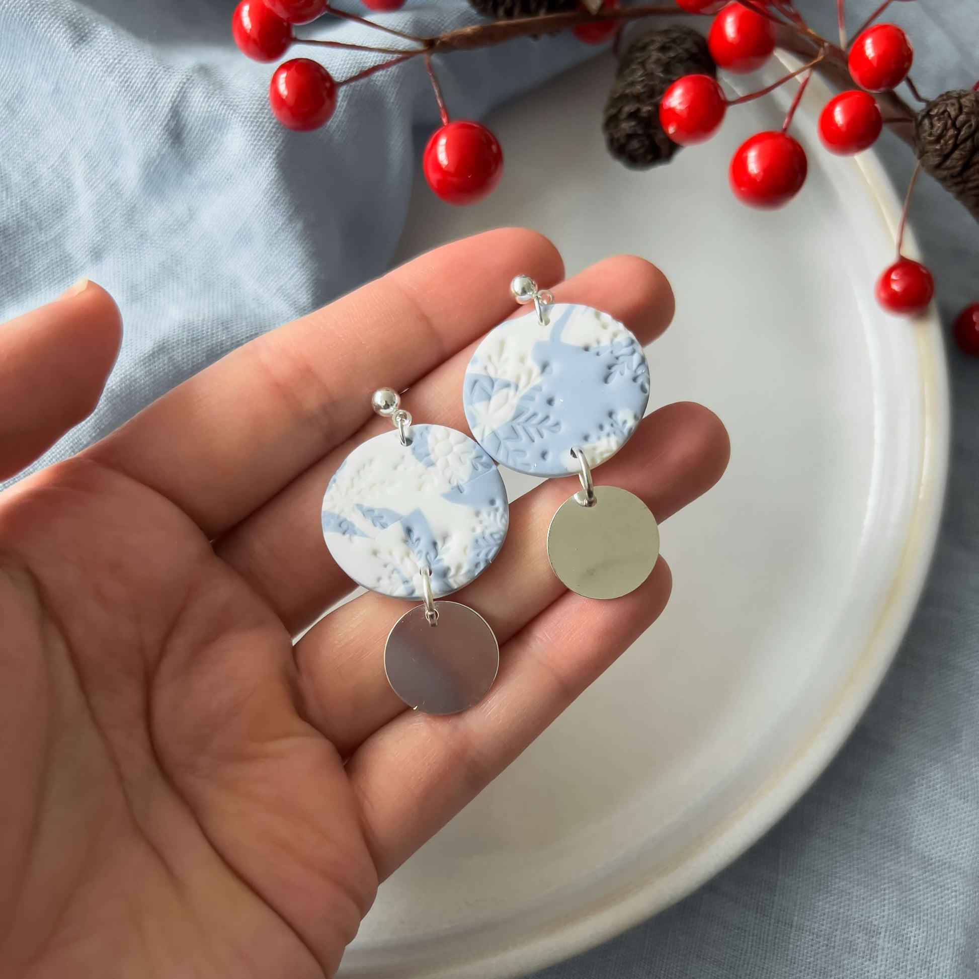 Middle-sized earrings for your winter outfit. The silver charm sparkles in the light like a little star 🌟