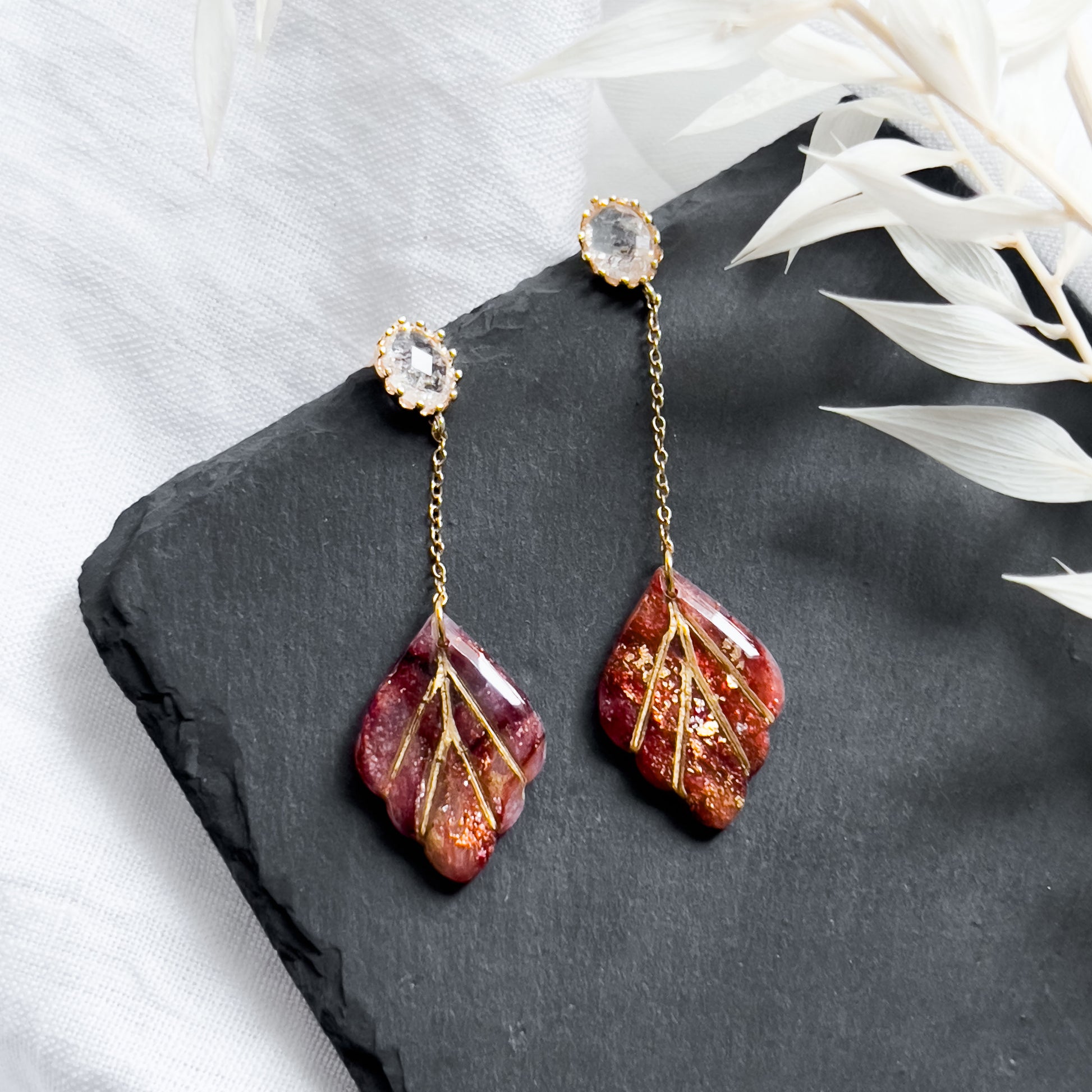 Col T ✦ Bordeauxrot marmorierte asymmetrische Ohrringe
