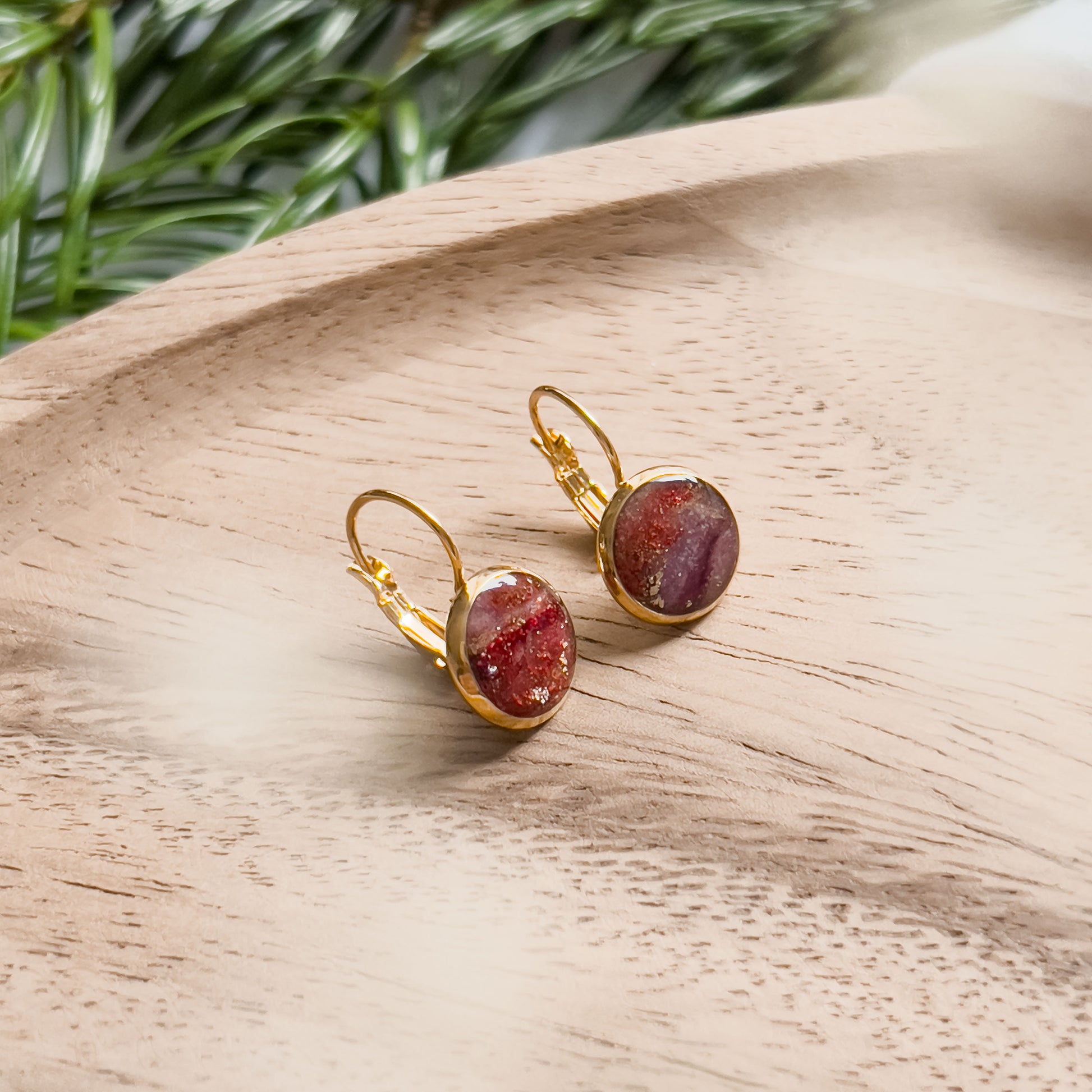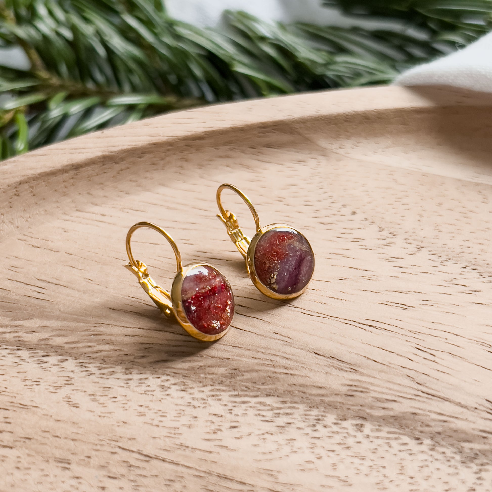 Col T ✦ Bordeauxrot marmorierte kleine Ohrringe
