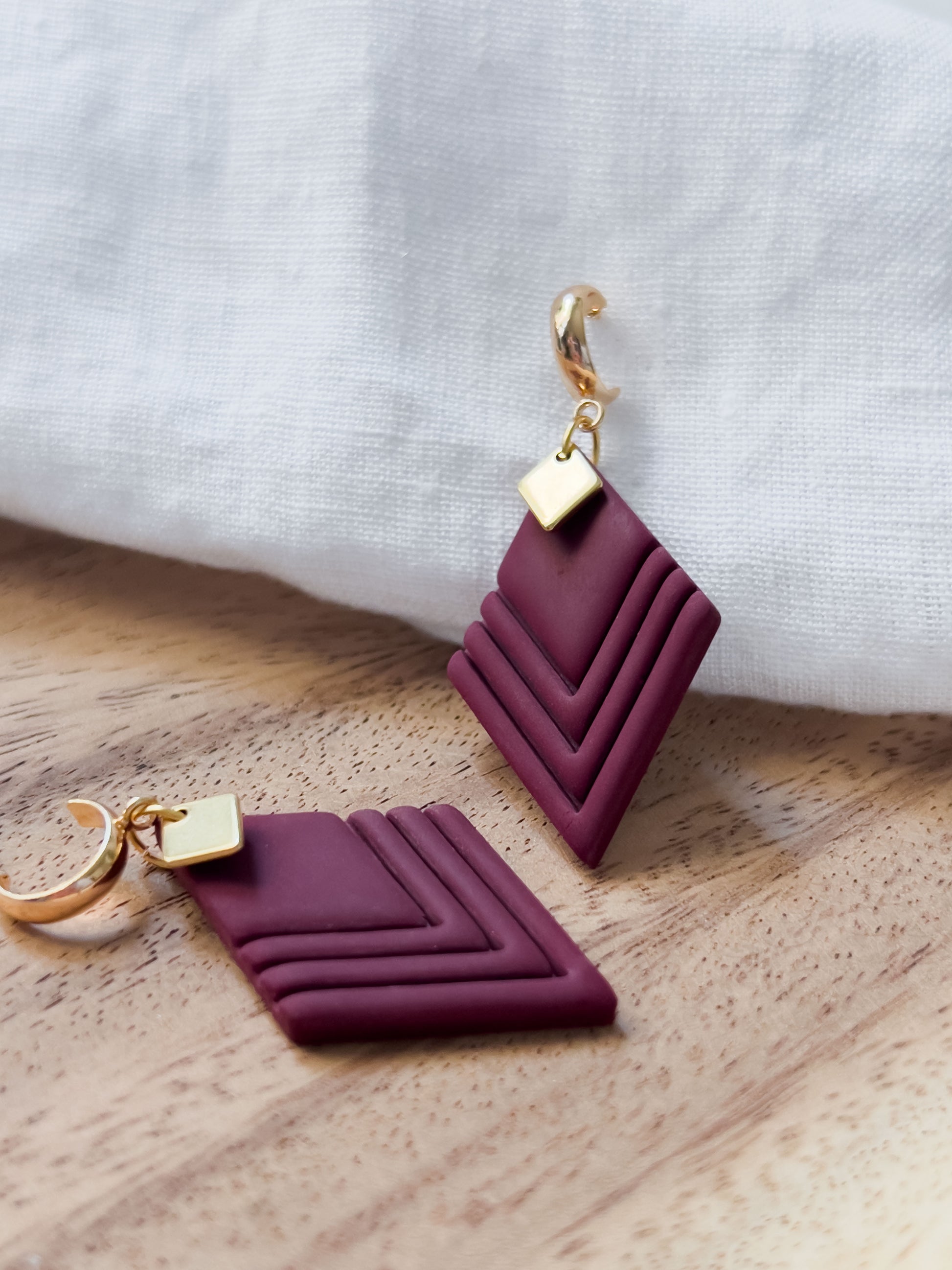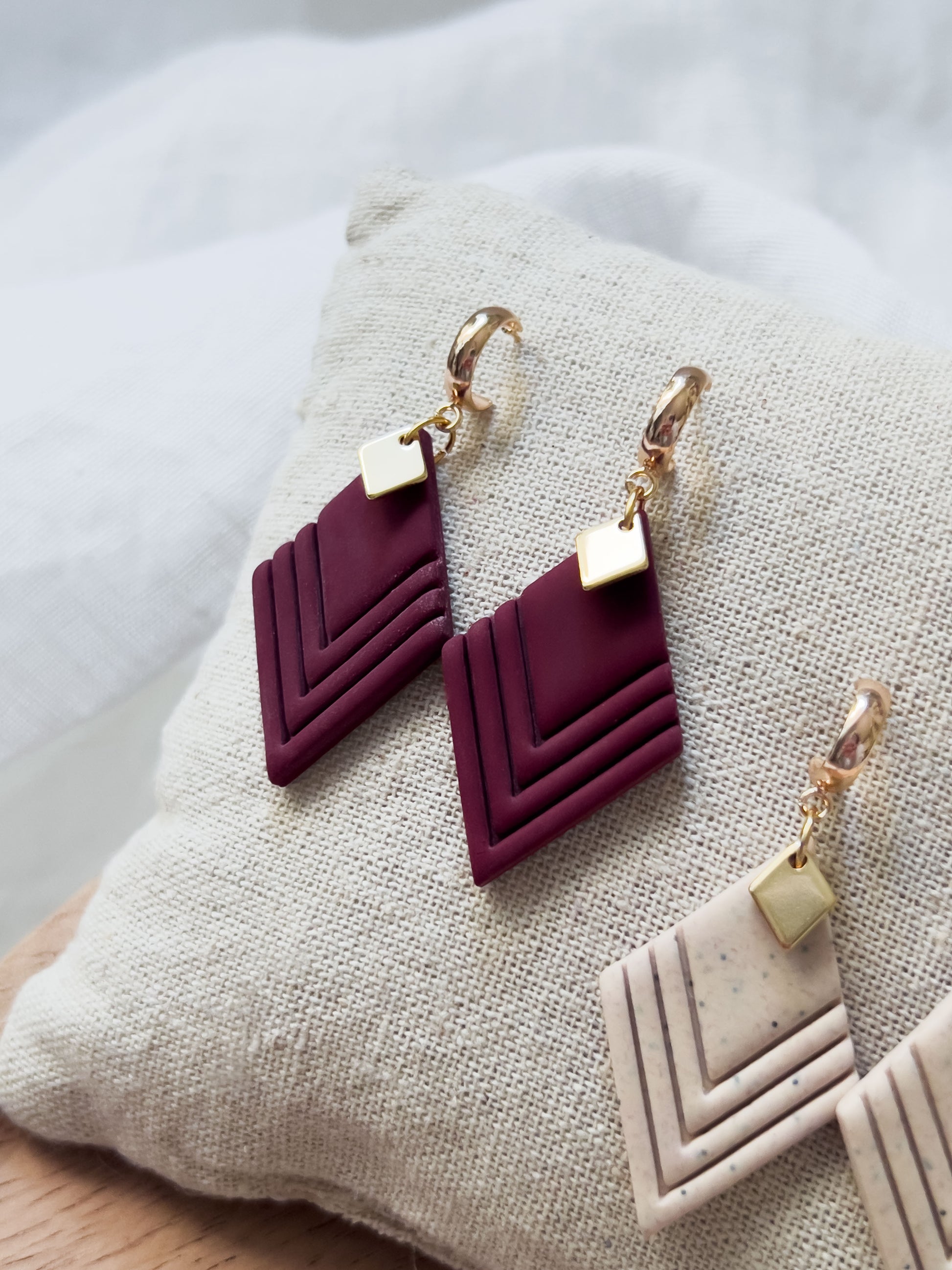 Col R ✦ Bordeauxrote & crèmefarbene Ohrringe