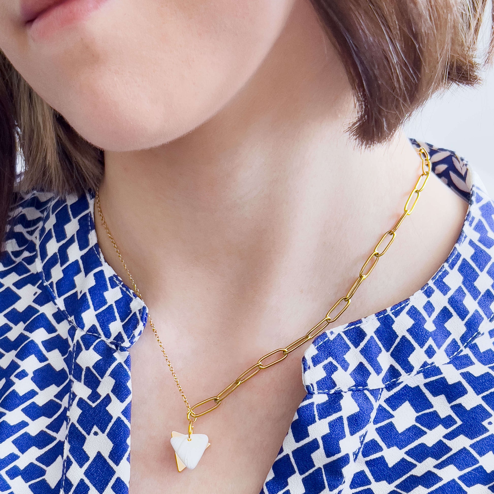Col S ✦ Dreieckige weiße Statement Halskette