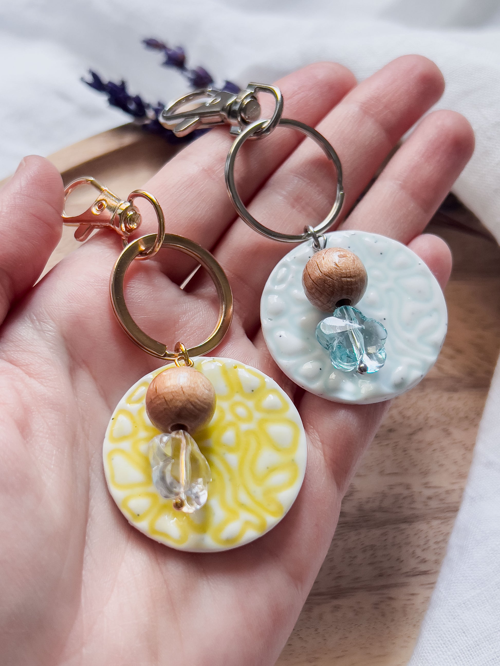 Verschönere deinen Schlüsselbund oder verschenke ein bisschen Freude. Egal wie, unsere neuen Schlüsselanhängerdesigns mit filigranem Faux-Keramik Blumenmuster sind ein richtiger Hingucker 🌼