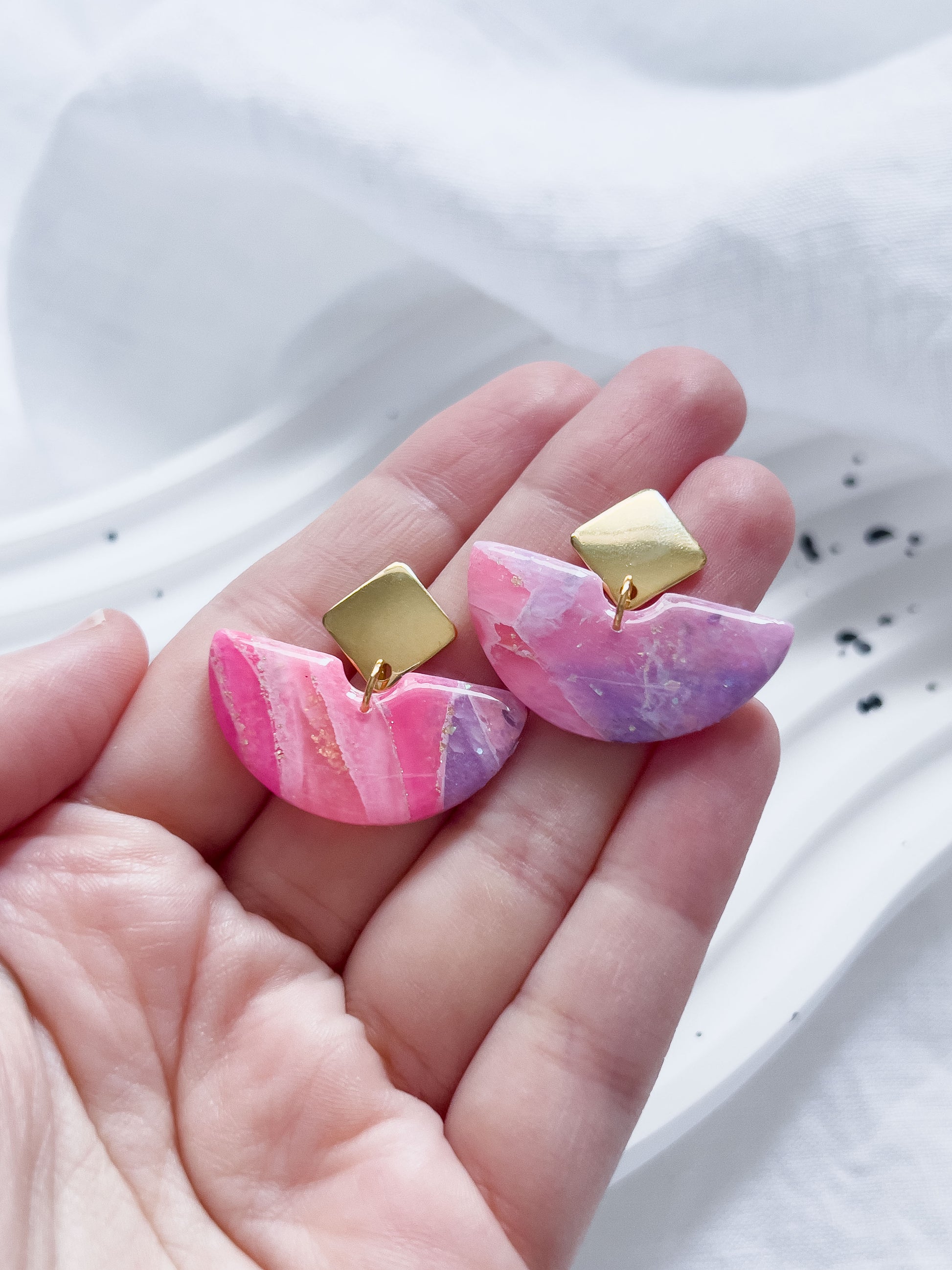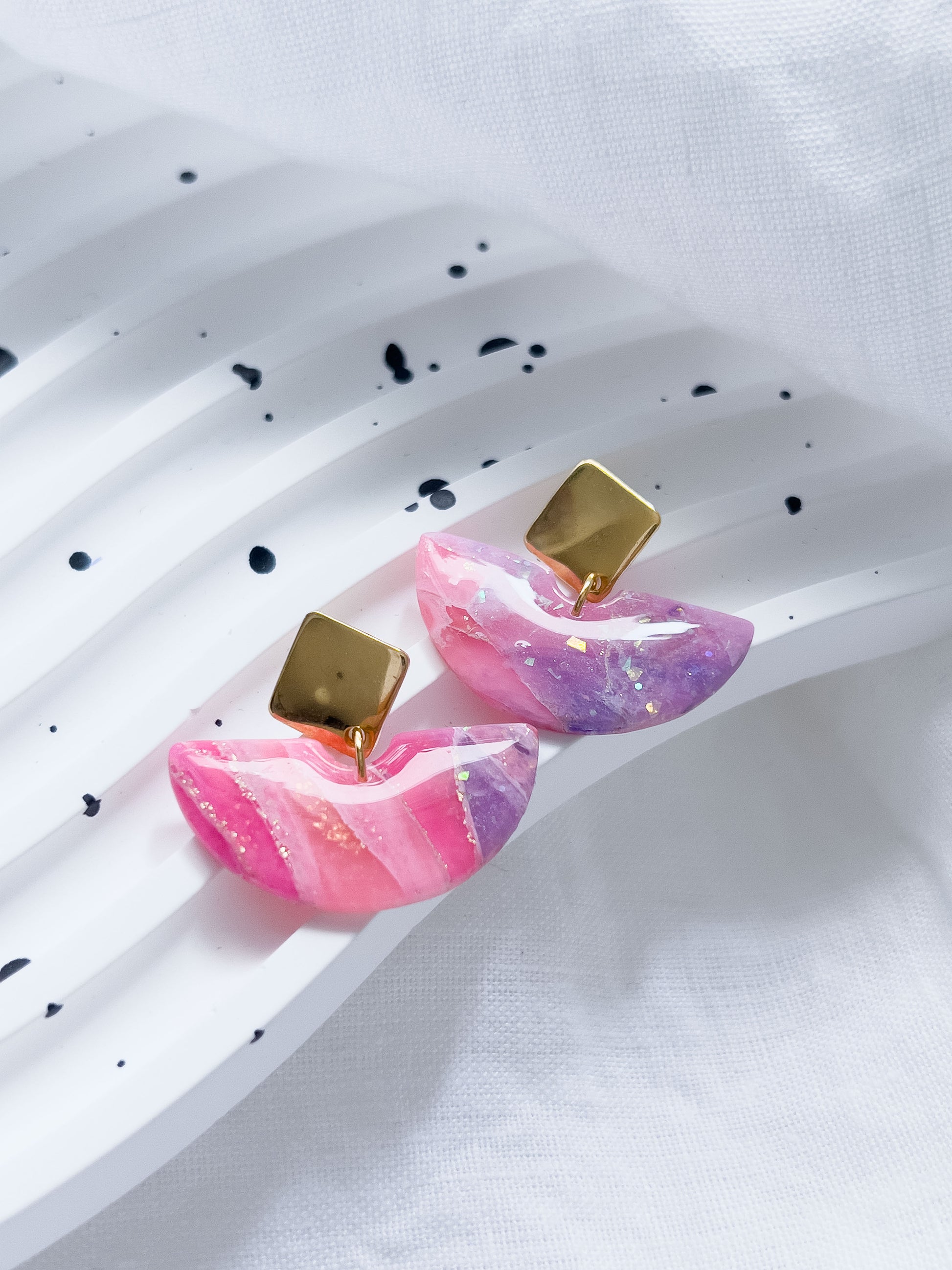 Col R ✦ Fuchsia-marmorierte halbkreisförmige Ohrringe