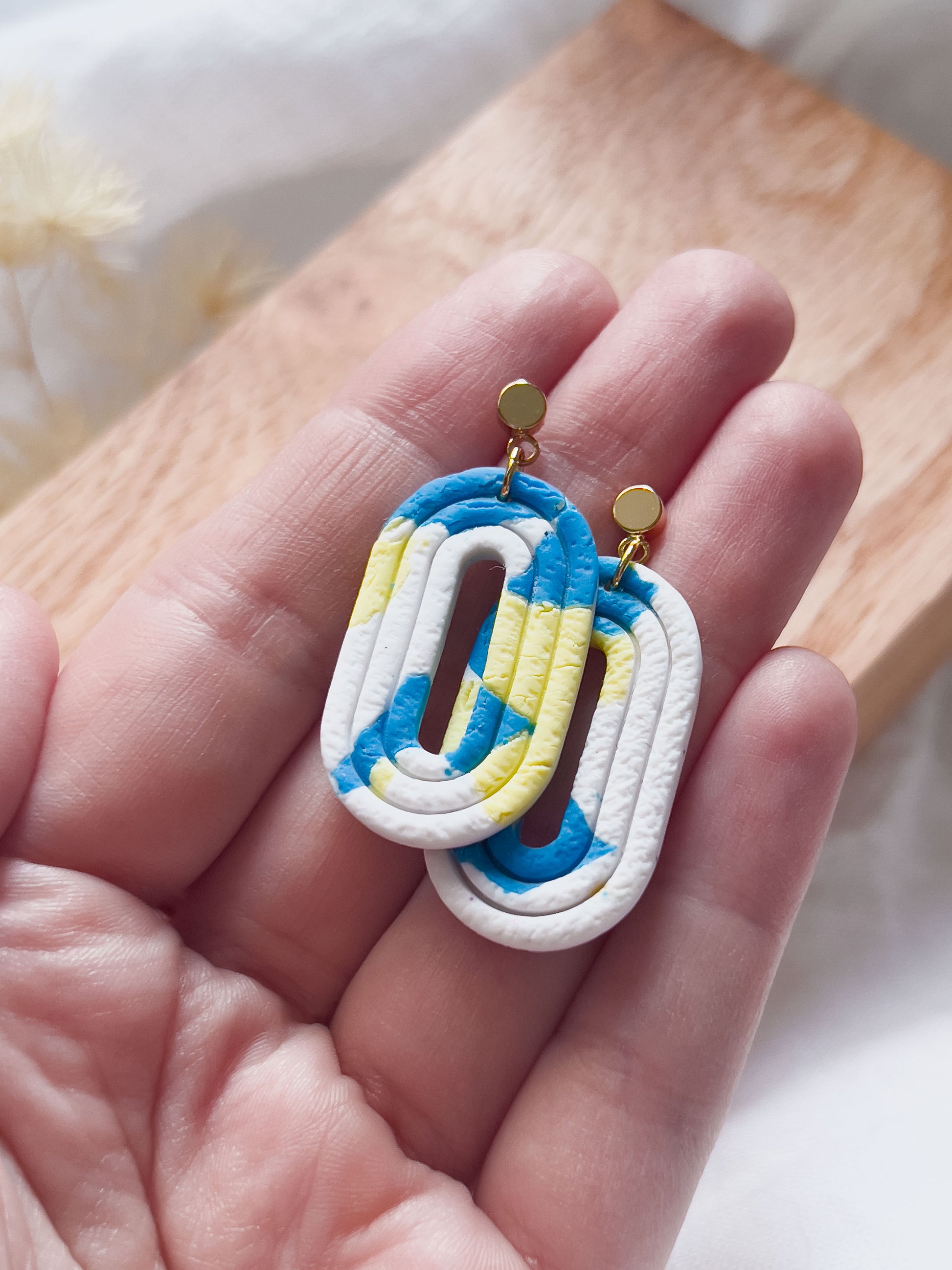 Col J ✦ Gelb-blaue Terrazzo Ohrringe