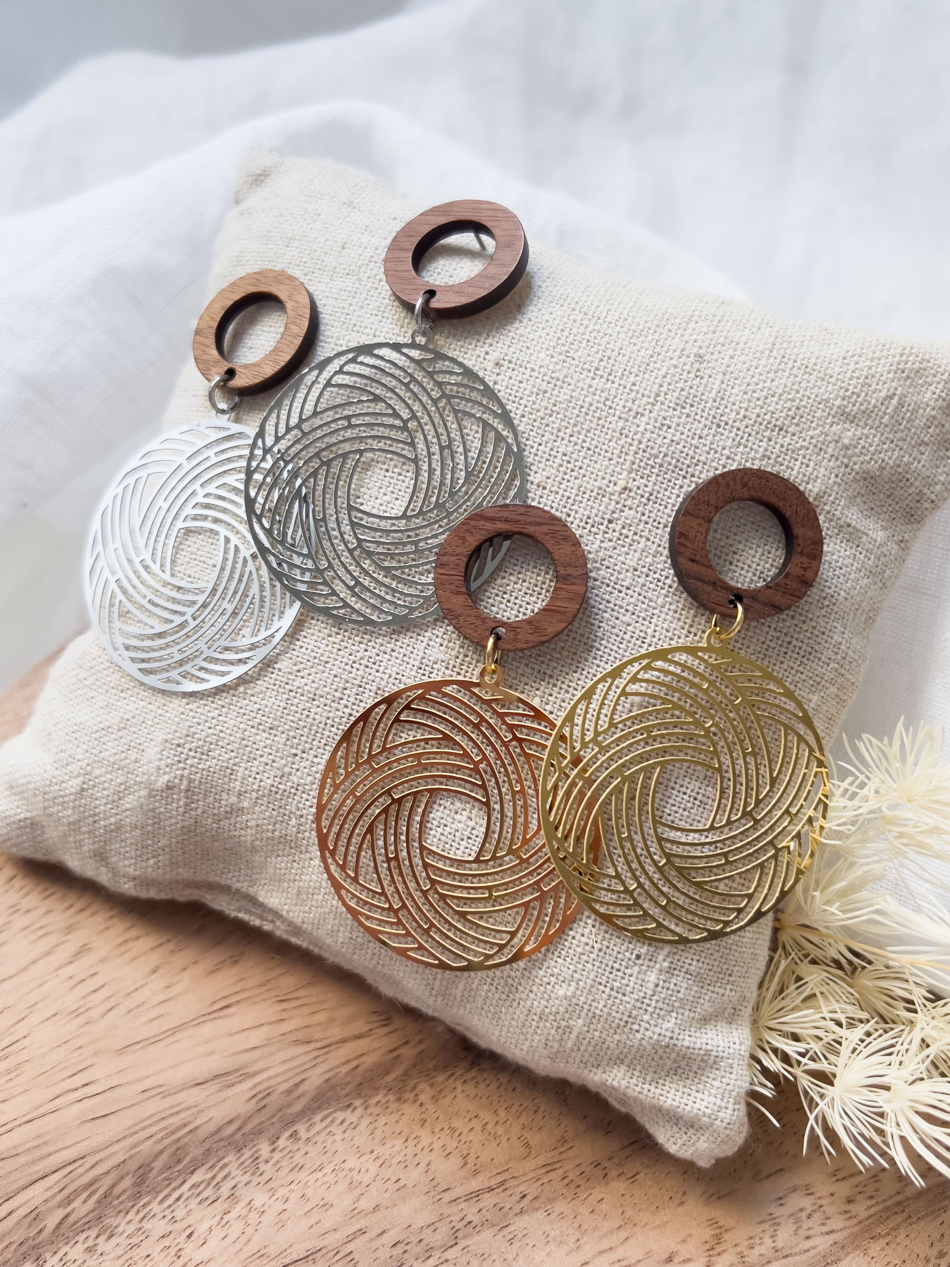 Col R ✦ Große Boho Ohrringe mit Holz-Stecker