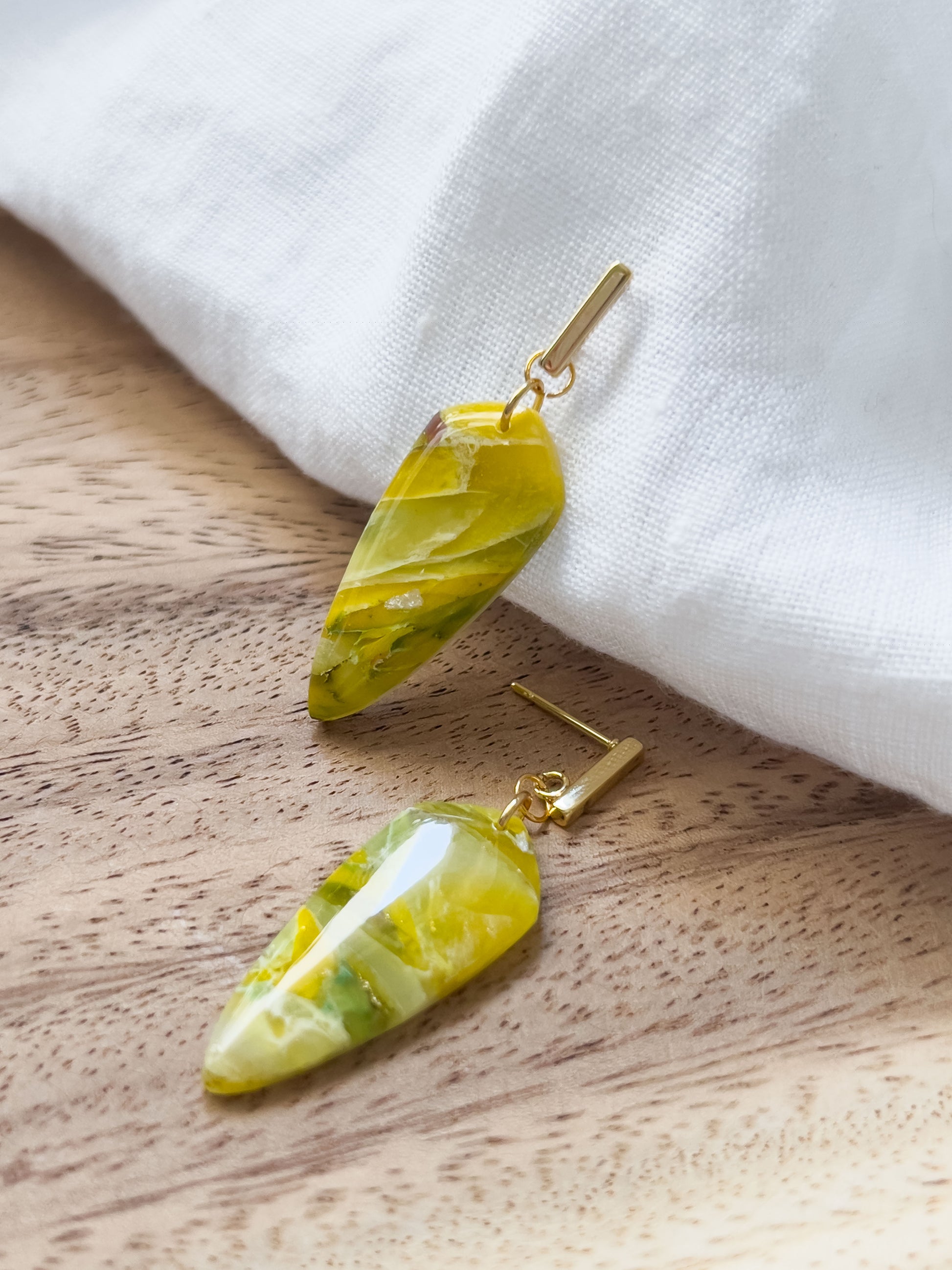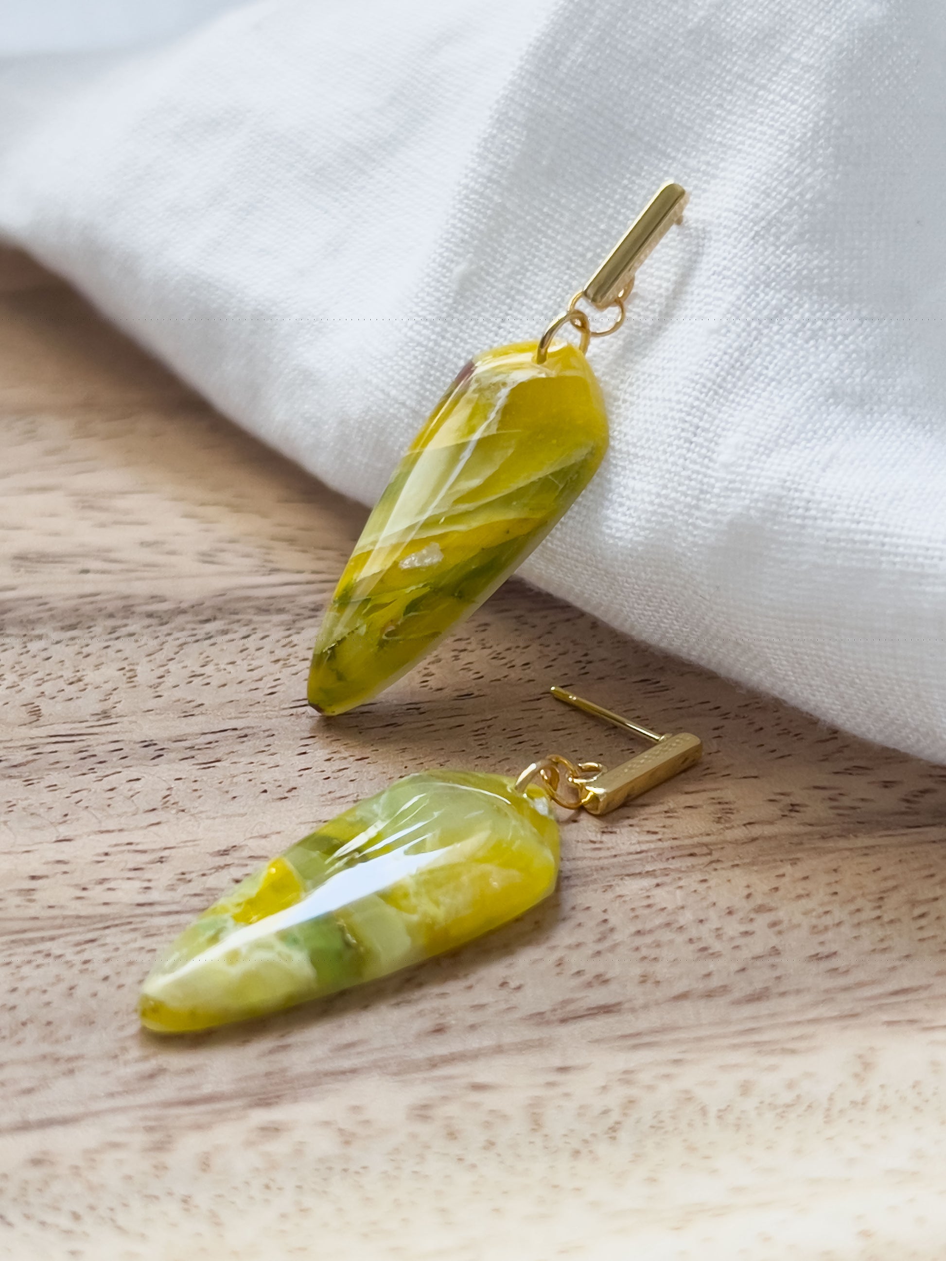 Col R ✦ Grün-gelb marmorierte Dolch Ohrringe