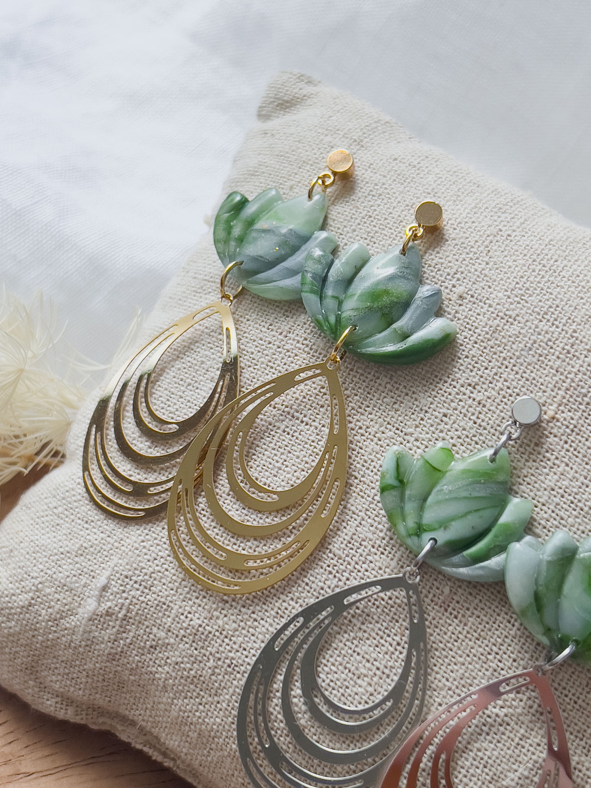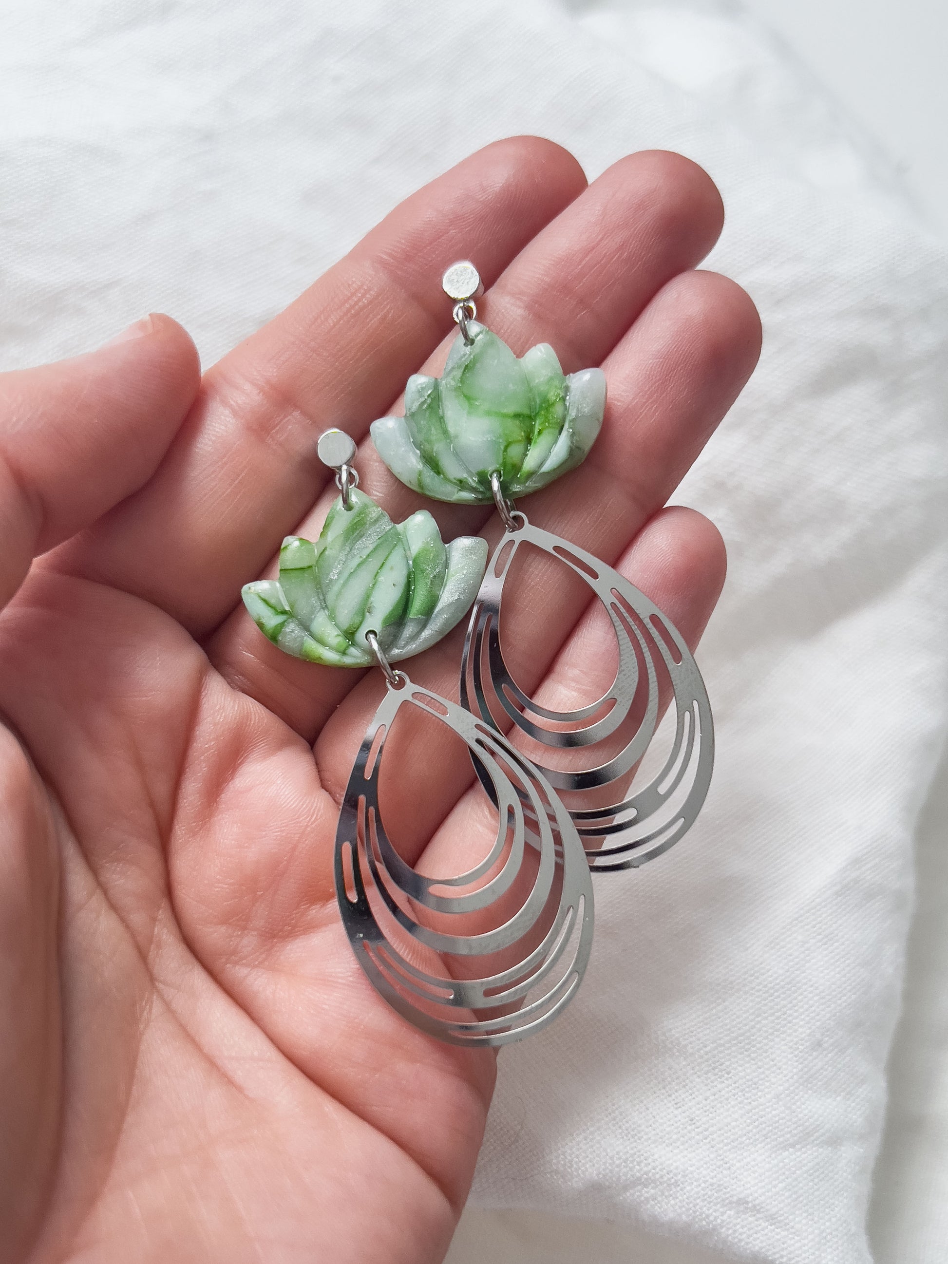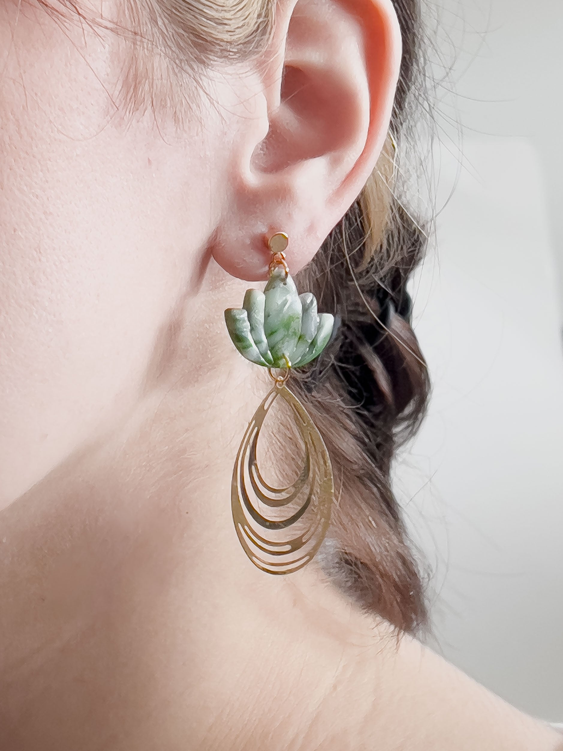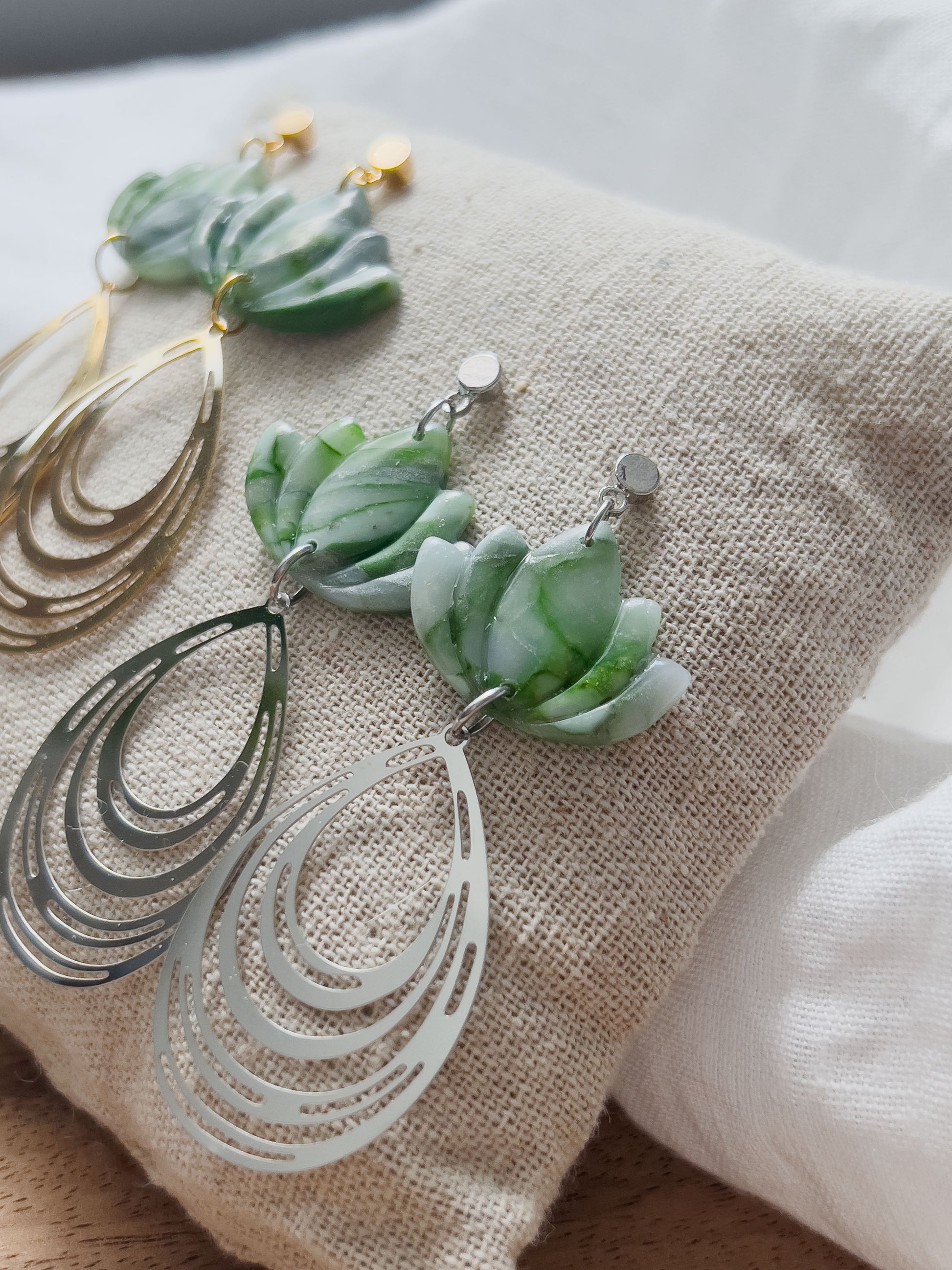 Col K ✦ Grün marmorierte Lotus Boho Ohrringe