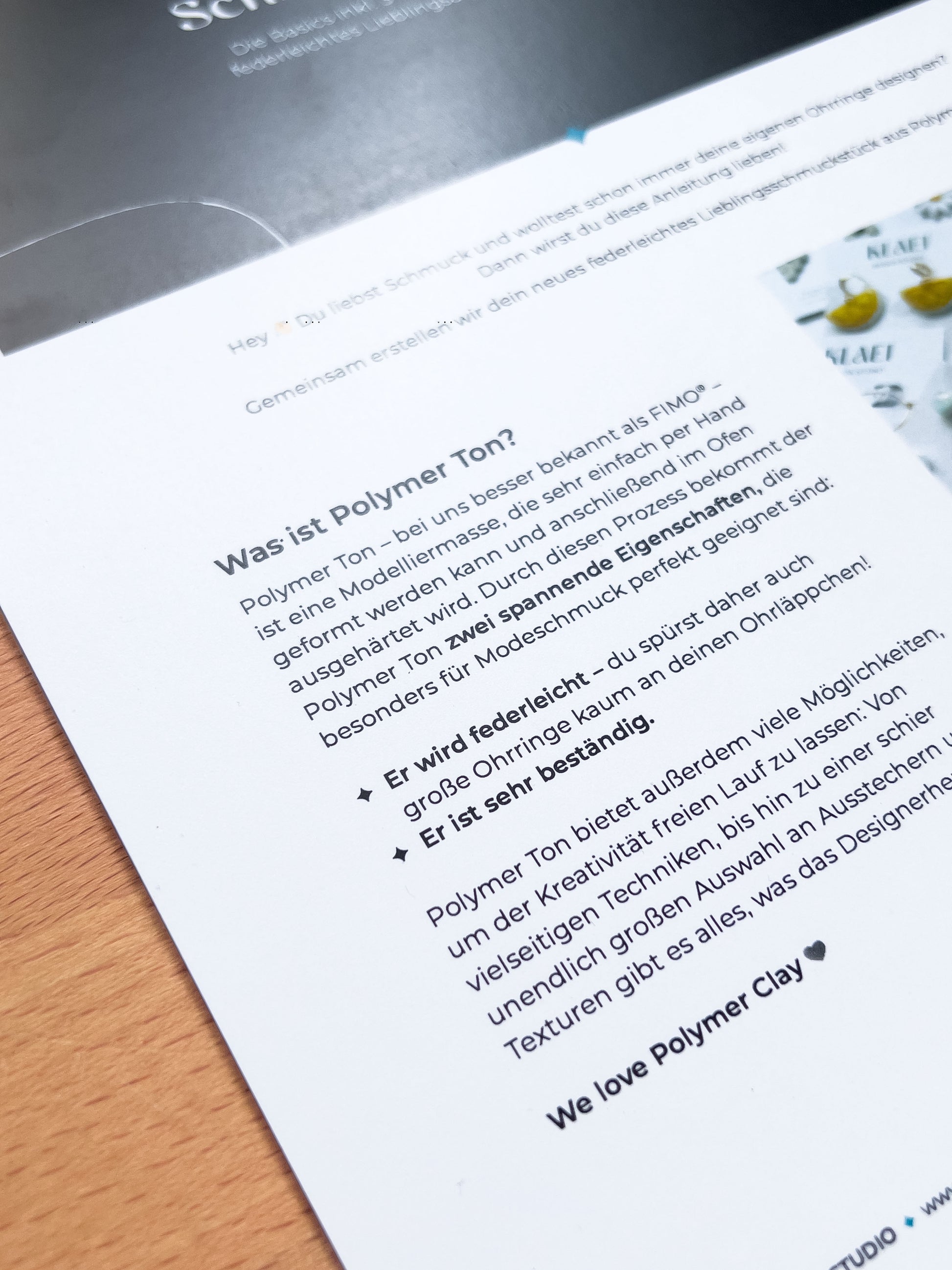 - 10 Seiten voller Wissen rund um Polymer Ton, gesammelt aus über 3 Jahren Erfahrung im Bereich Schmuckdesign