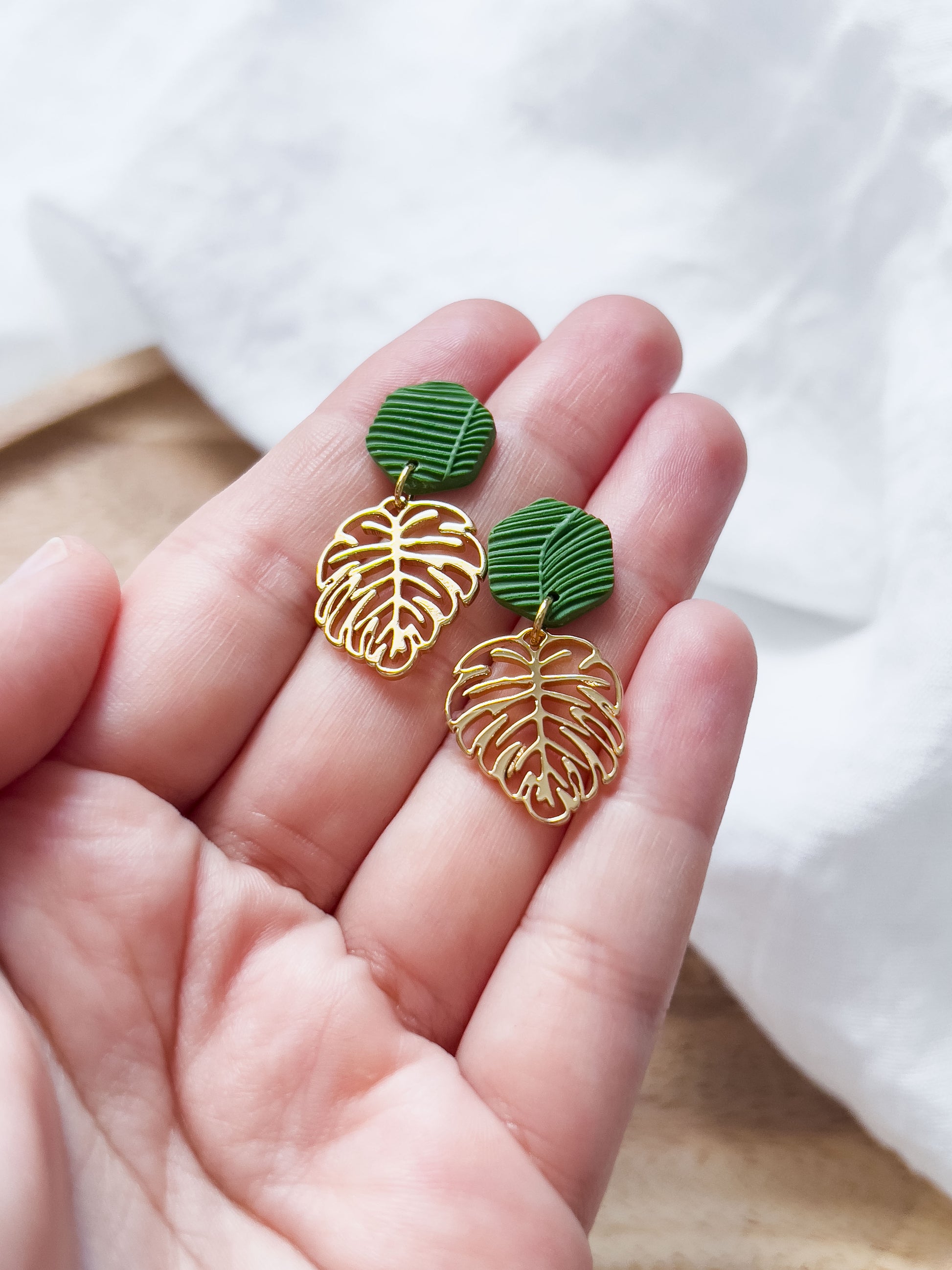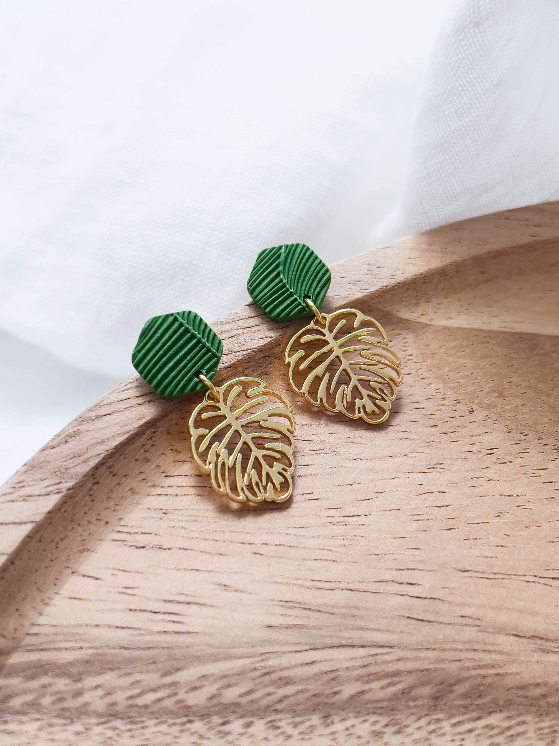 Col K ✦ Kleine tropische Monstera Ohrringe