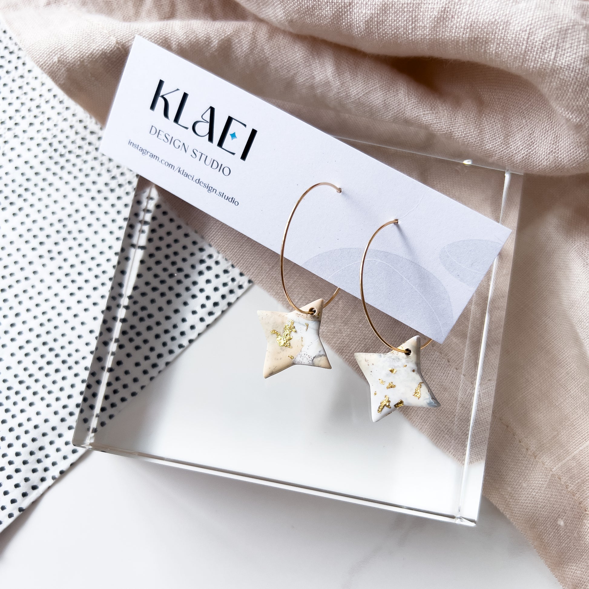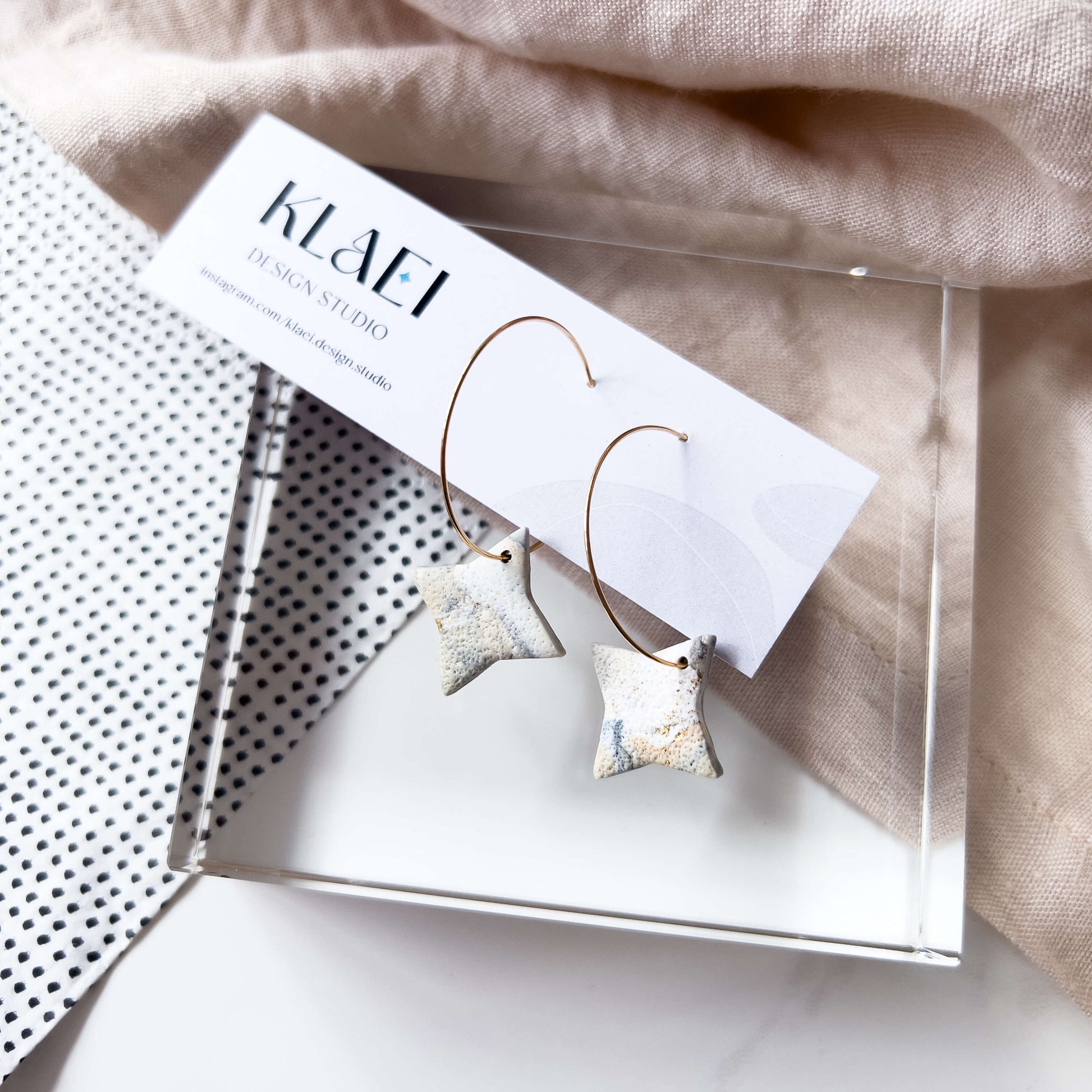 Thin hoops with a neutral marbled polarstar charm. Trust the stars when they tell you, that you look fantastic in these cuties ✨