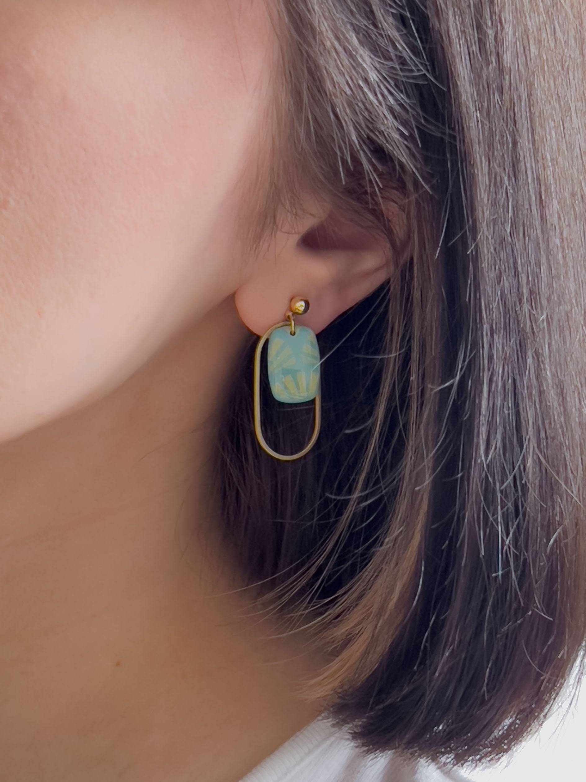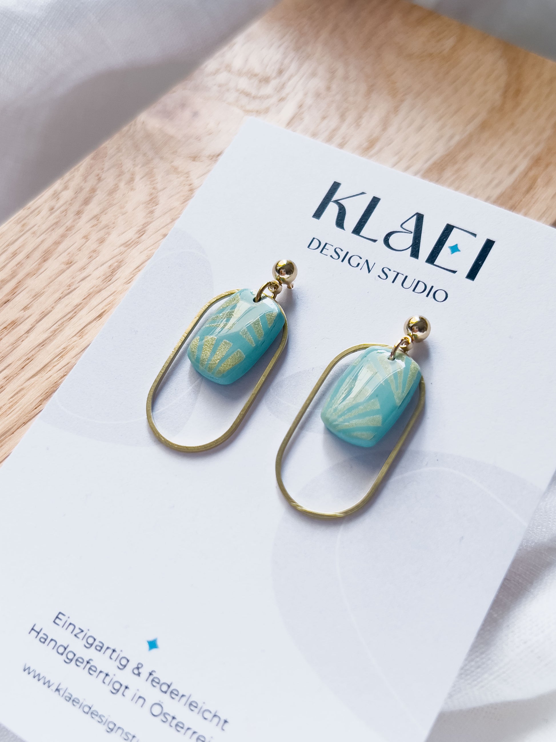 Fast schon sommerlich kommen diese pfefferminzblauen und gold gemusterten Ohrringe daher ✨ Aber egal wann du sie trägst, werden sie dir viel Freude bereiten!