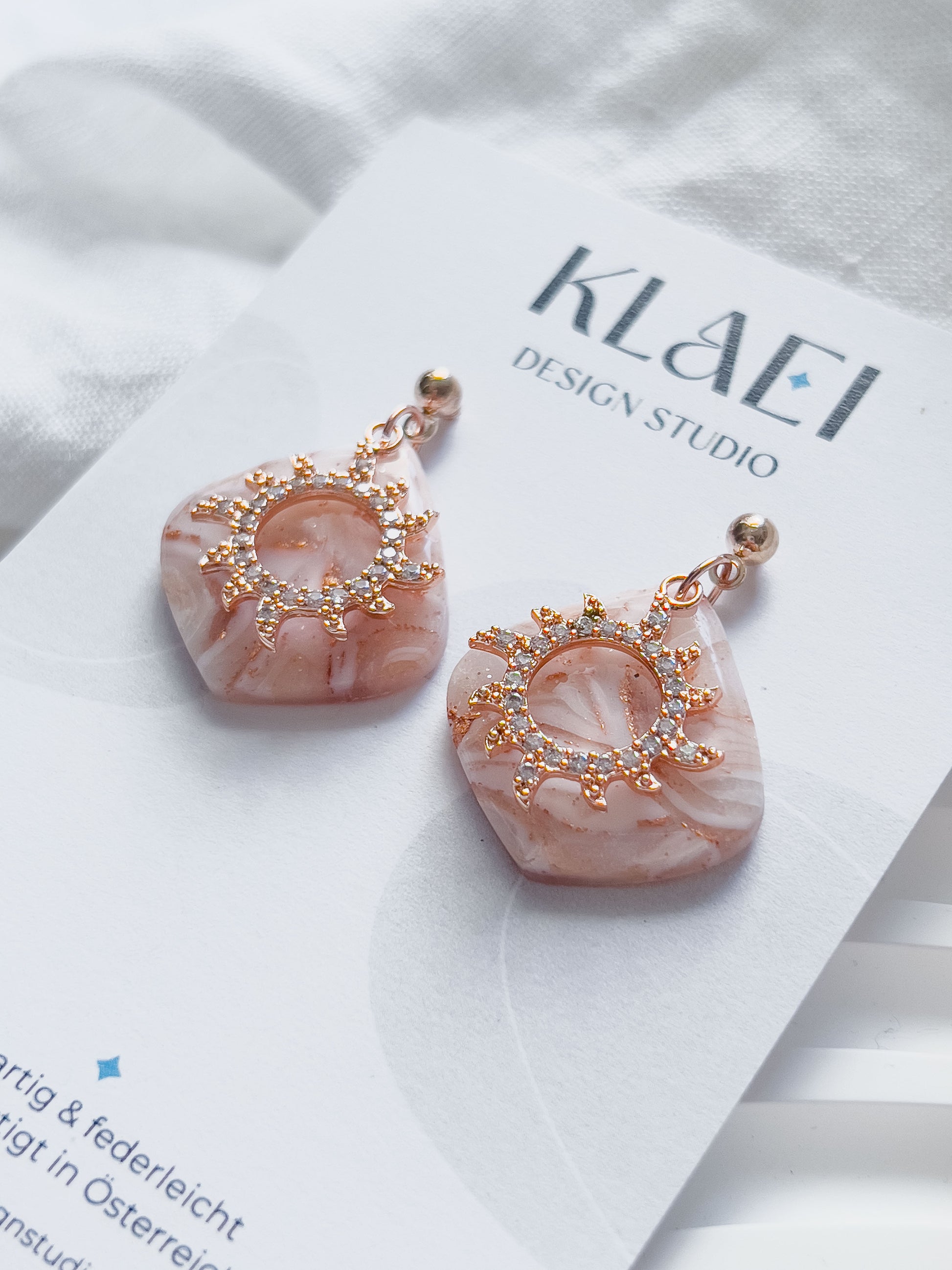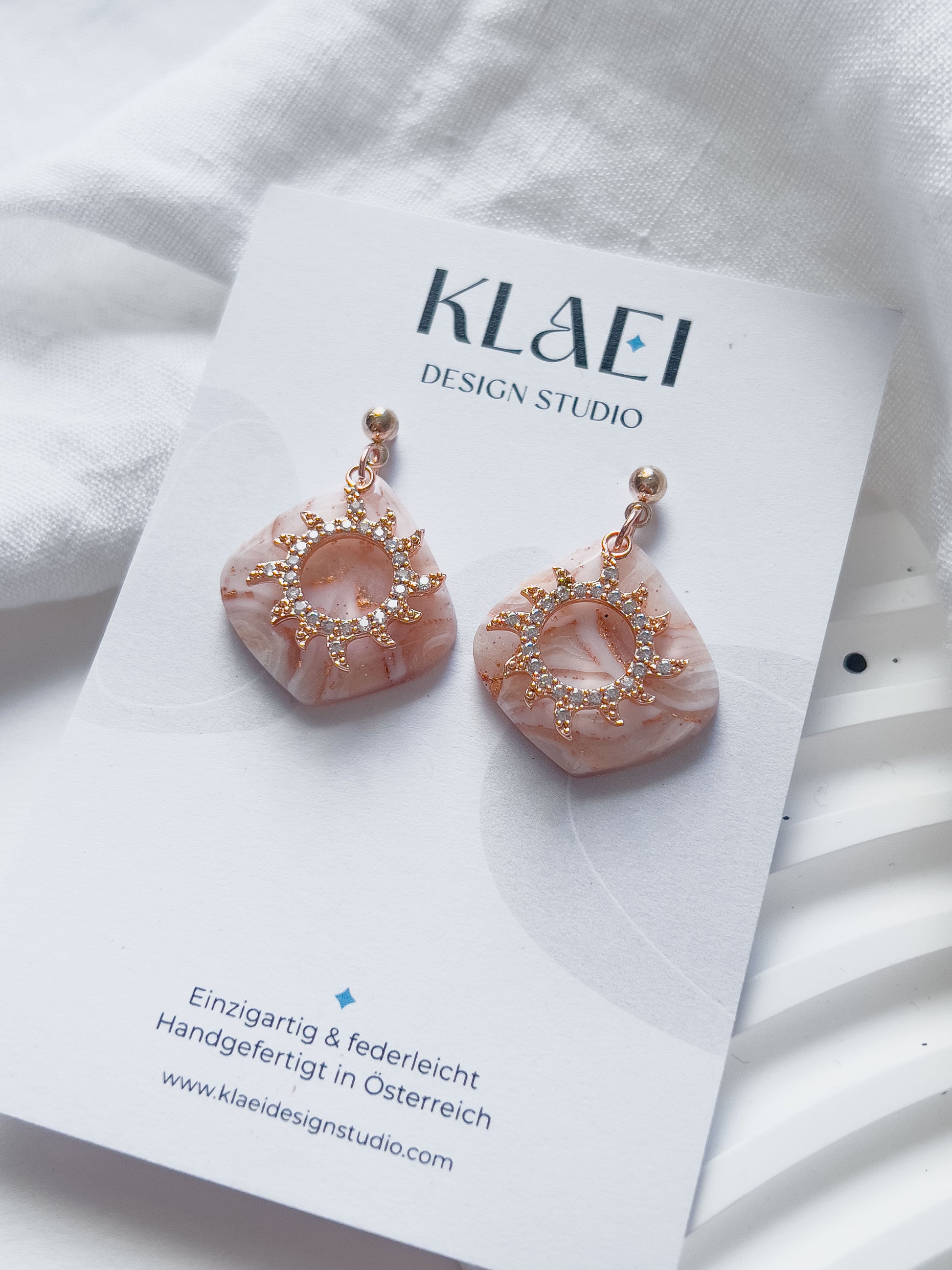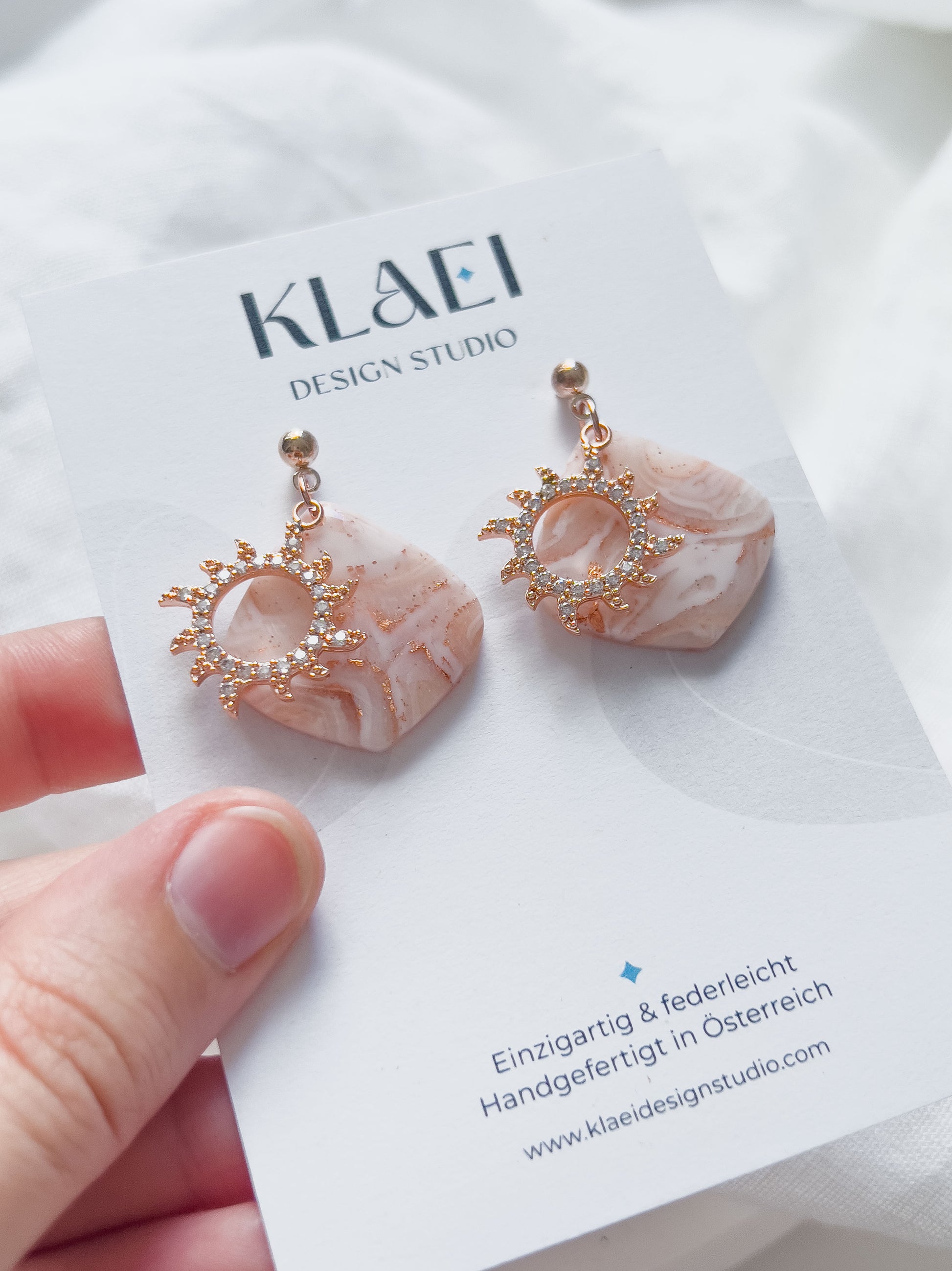 Bridal ✦ Roségolden-marmorierte Ohringe mit Zirkonia-Sonnen