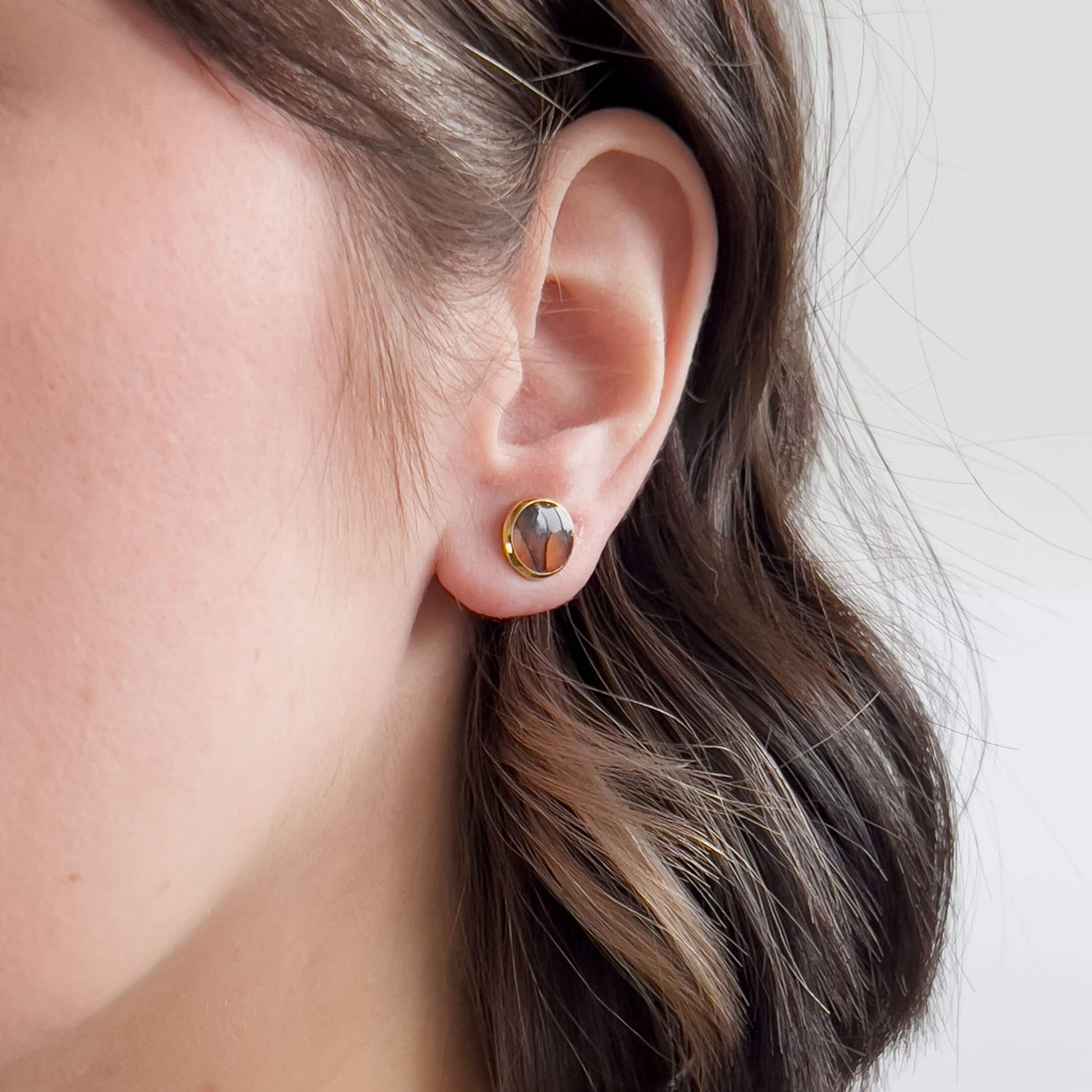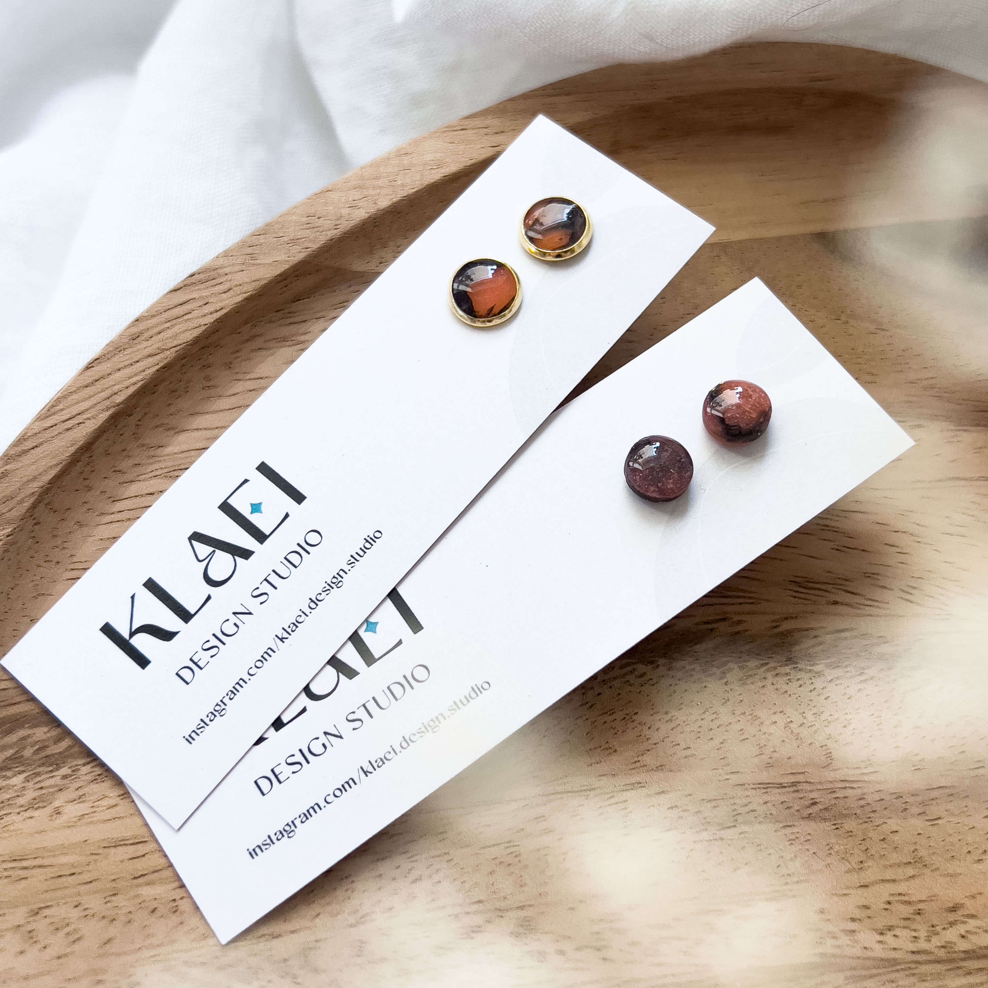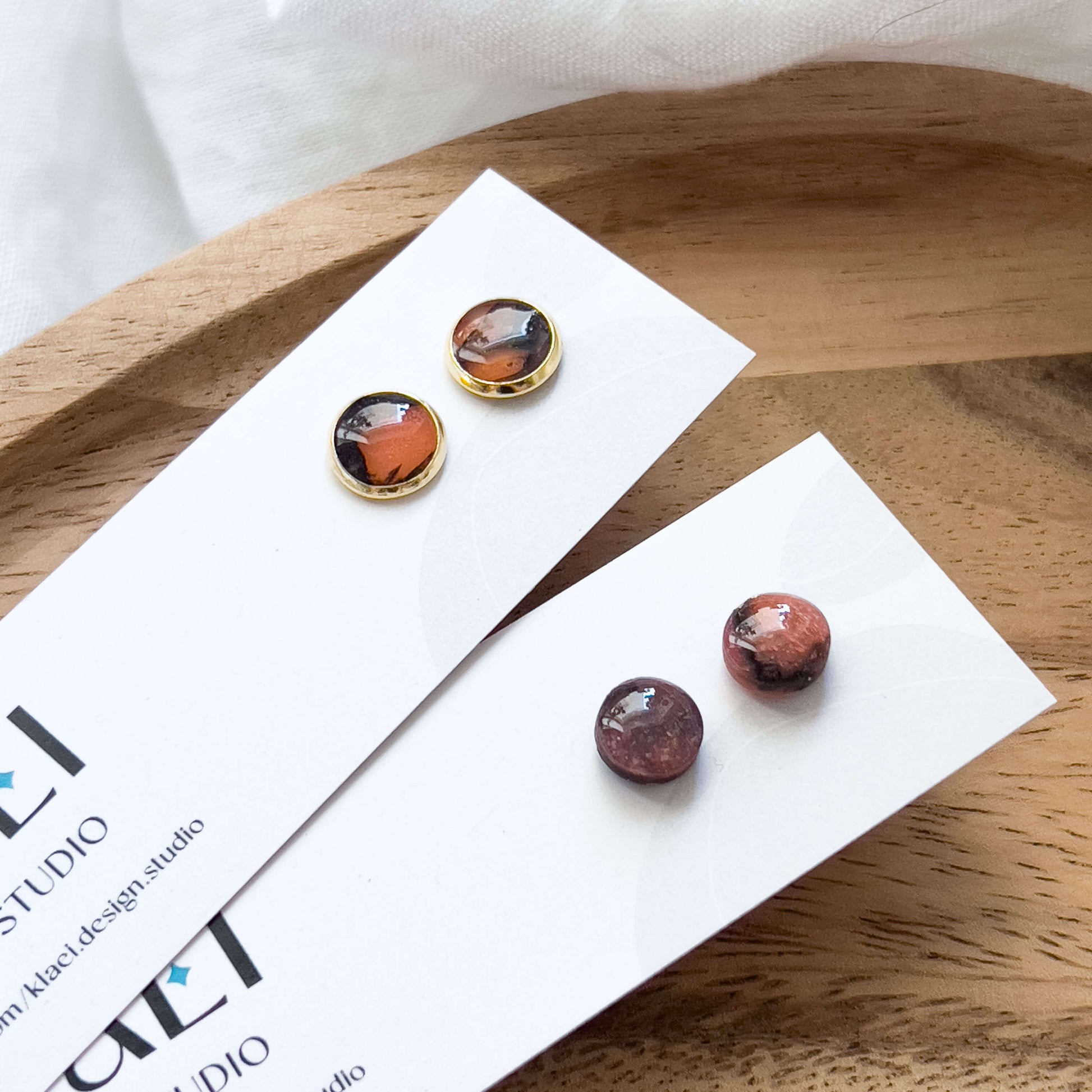 Diese kleinen rot-schwarz marmorierten Ohrstecker glänzen funkelnd mysteriös ✨ Sie sind eine perfekte, etwas gedecktere Ergänzung zu deinen Outfits!