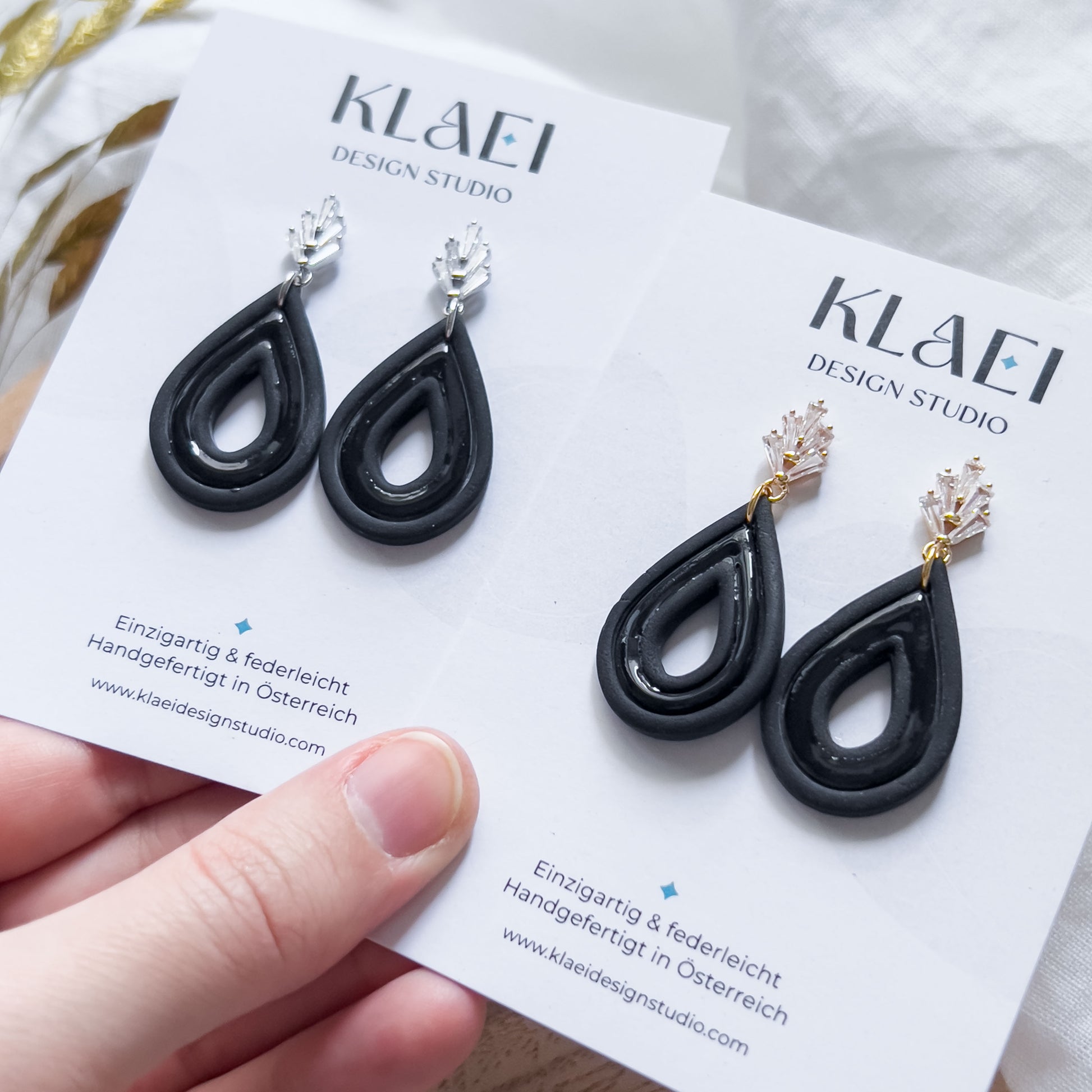 Col T ✦ Schwarze Tropfen Ohrringe mit Zirkonia-Stecker