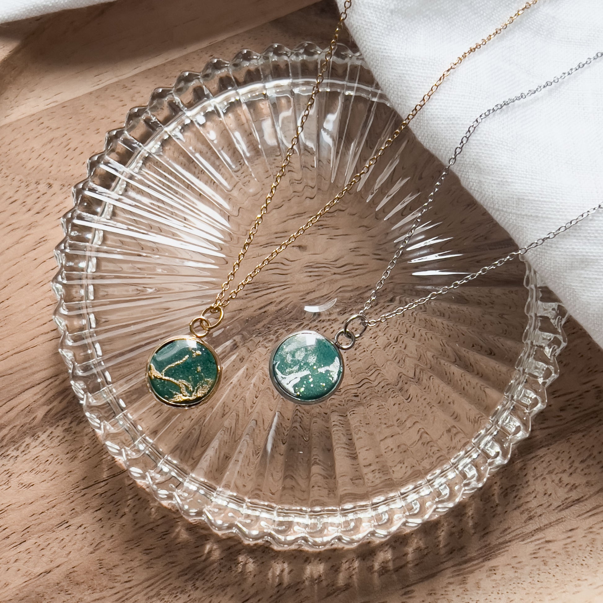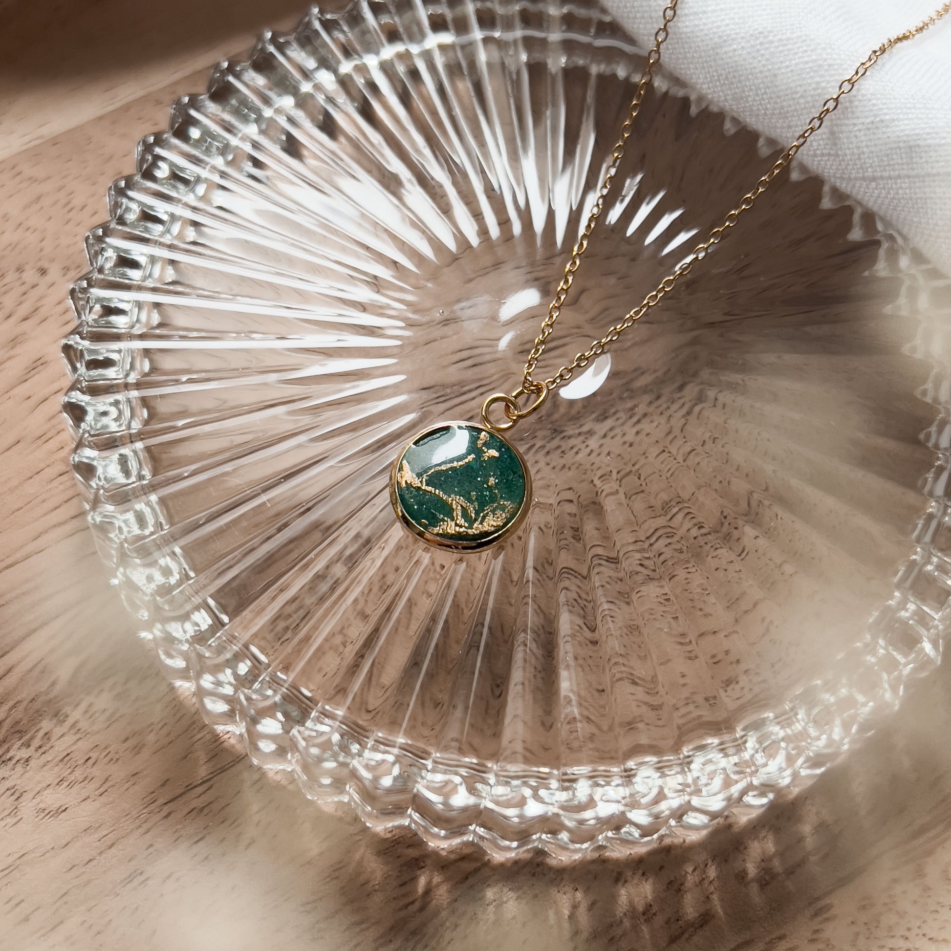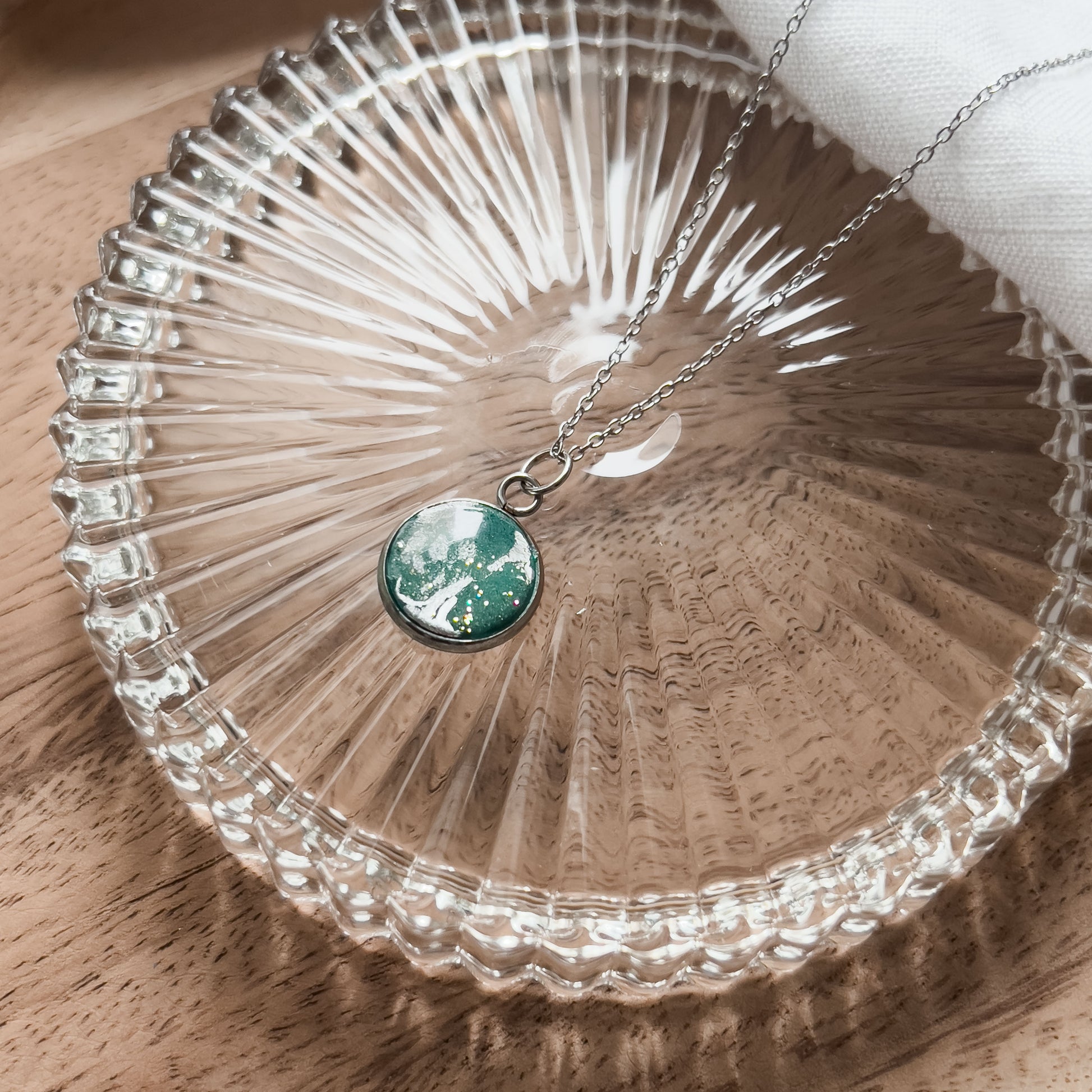 Col T ✦ Smaradgrün marmorierte runde Halskette