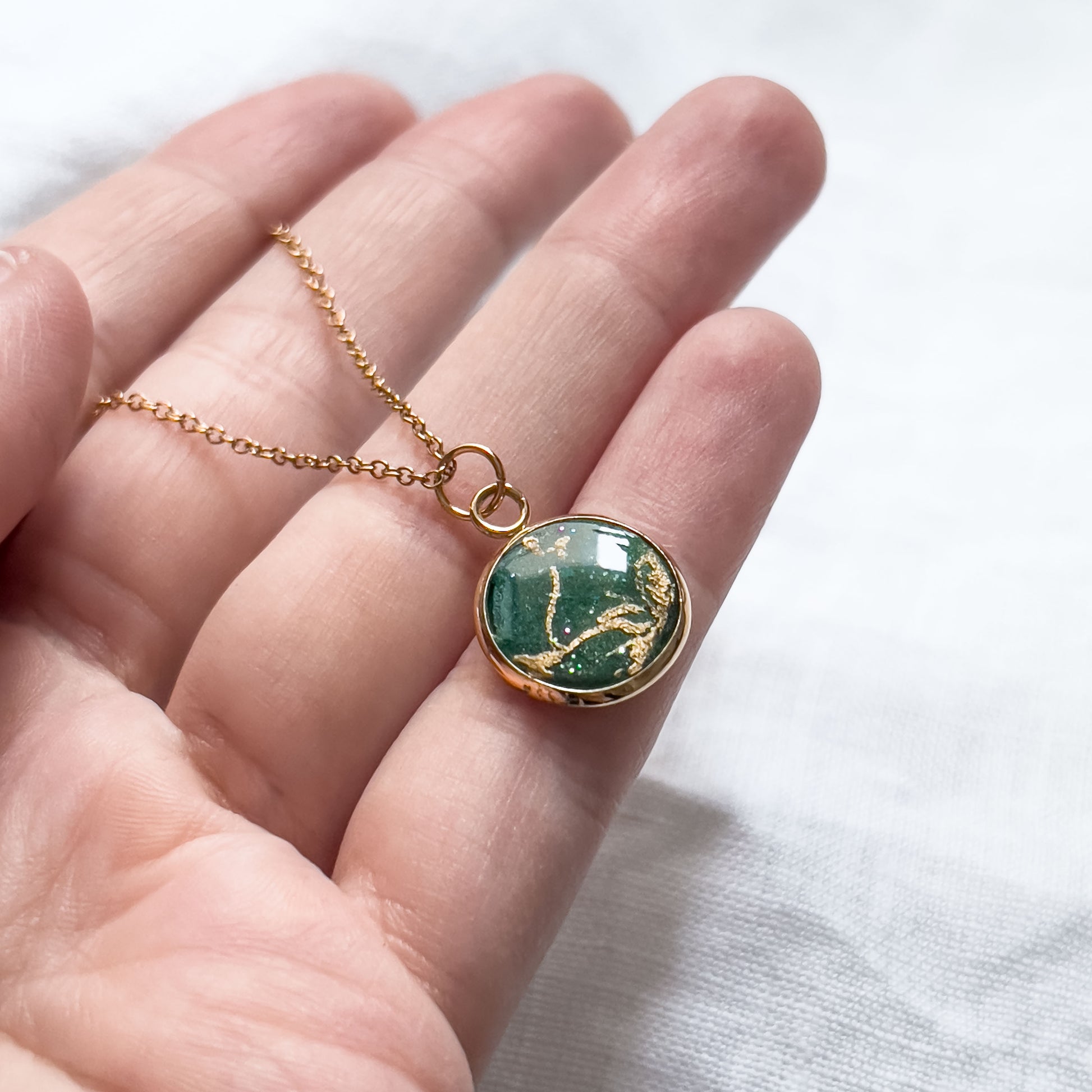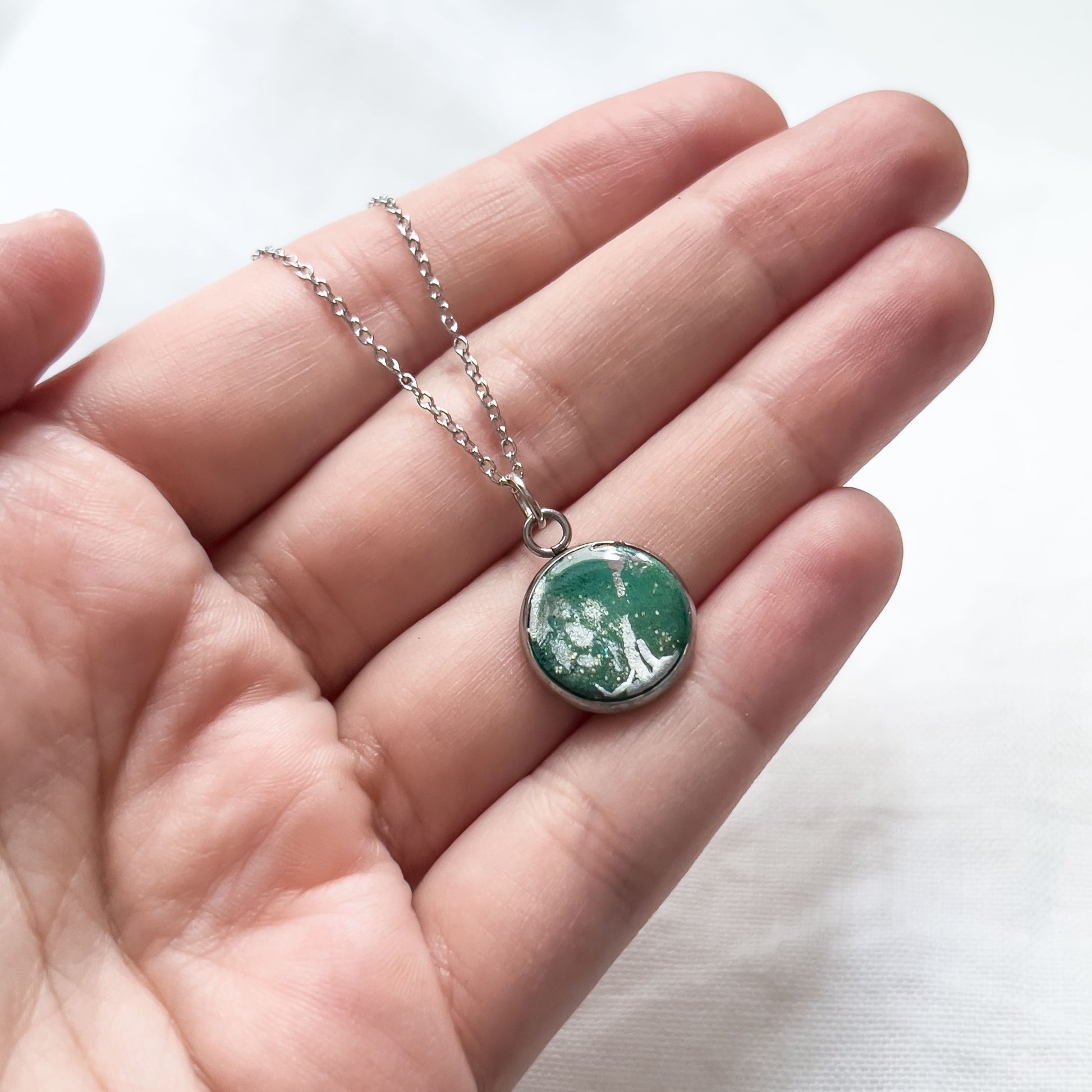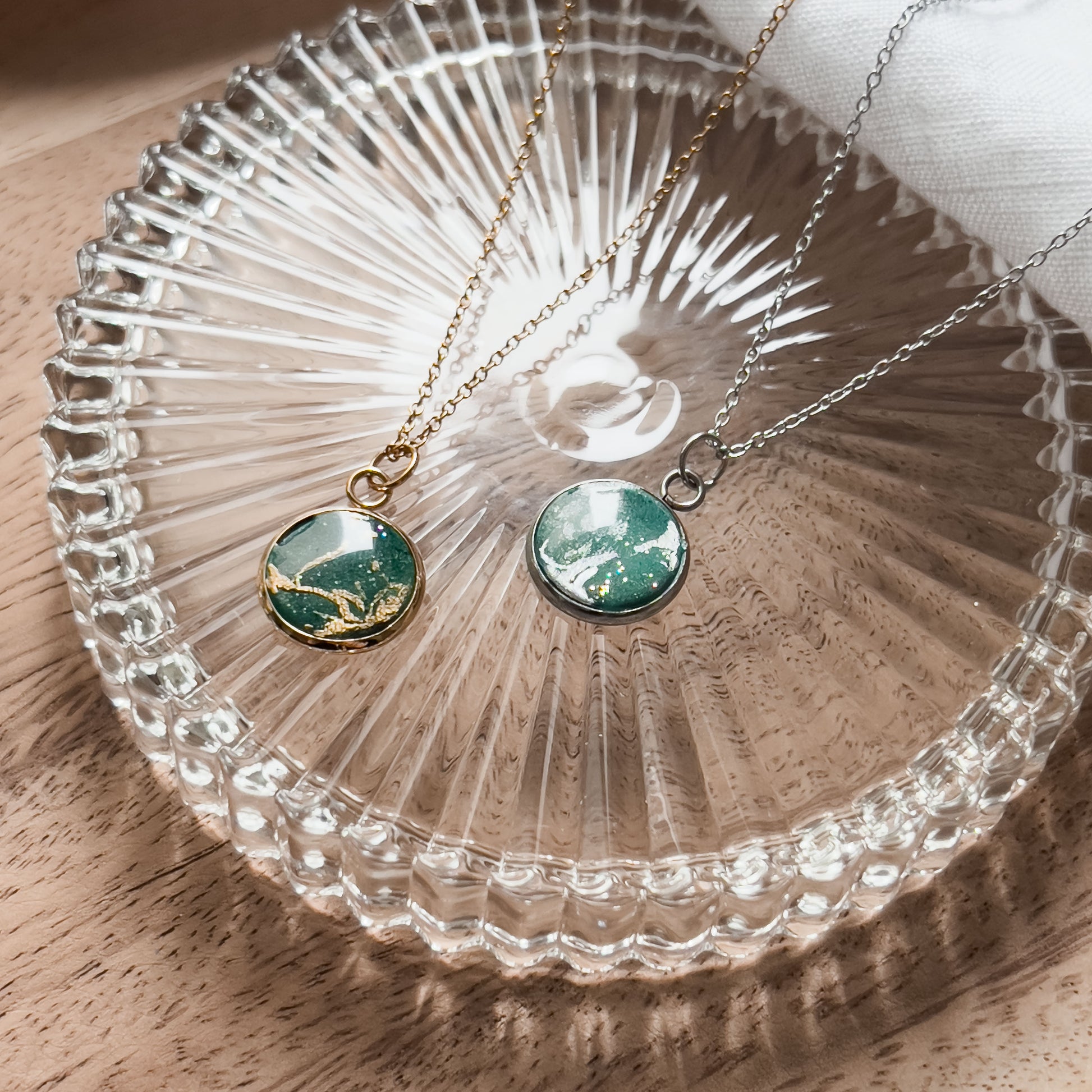 Col T ✦ Smaradgrün marmorierte runde Halskette