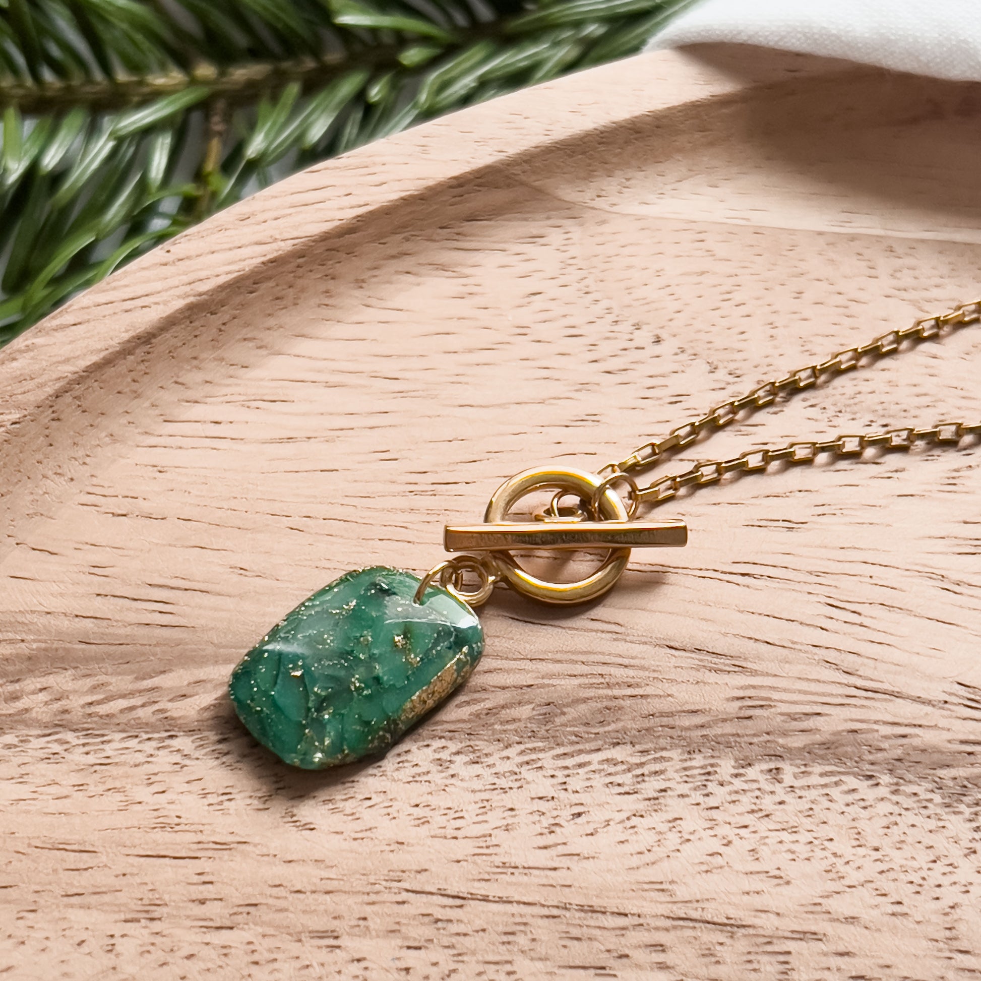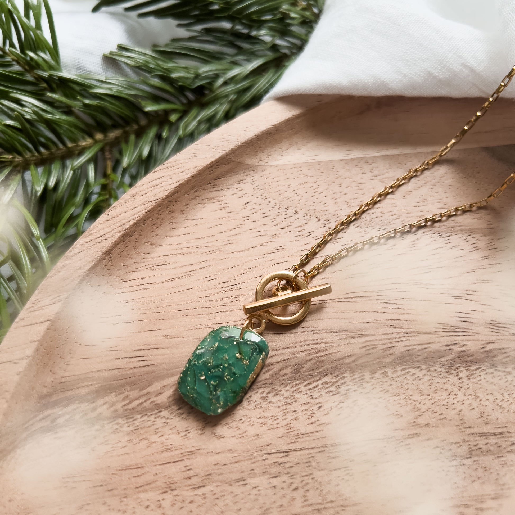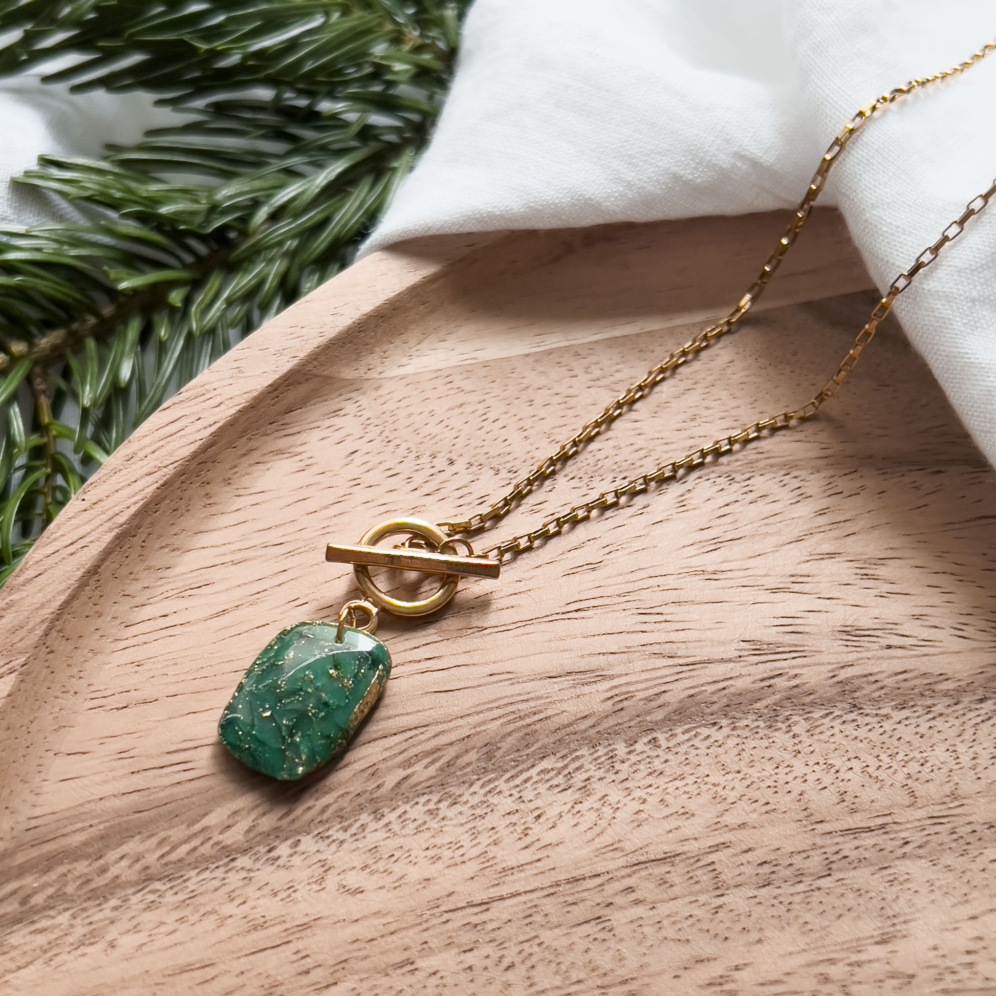 Col T ✦ Smaradgrün marmorierte Statement Halskette