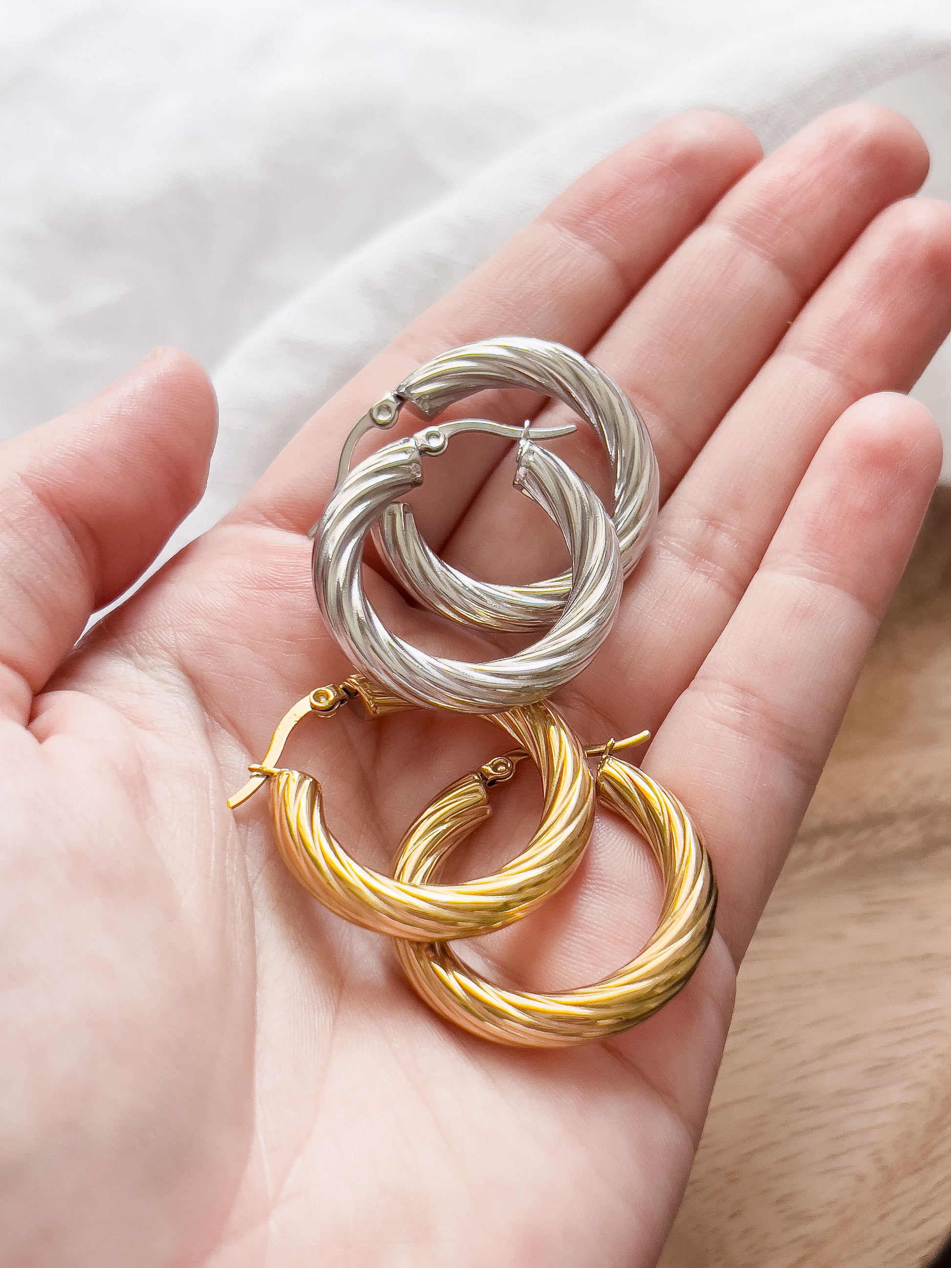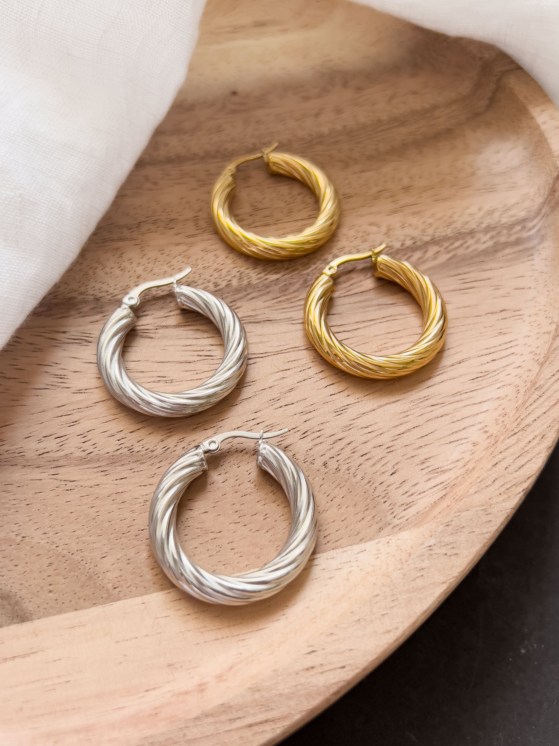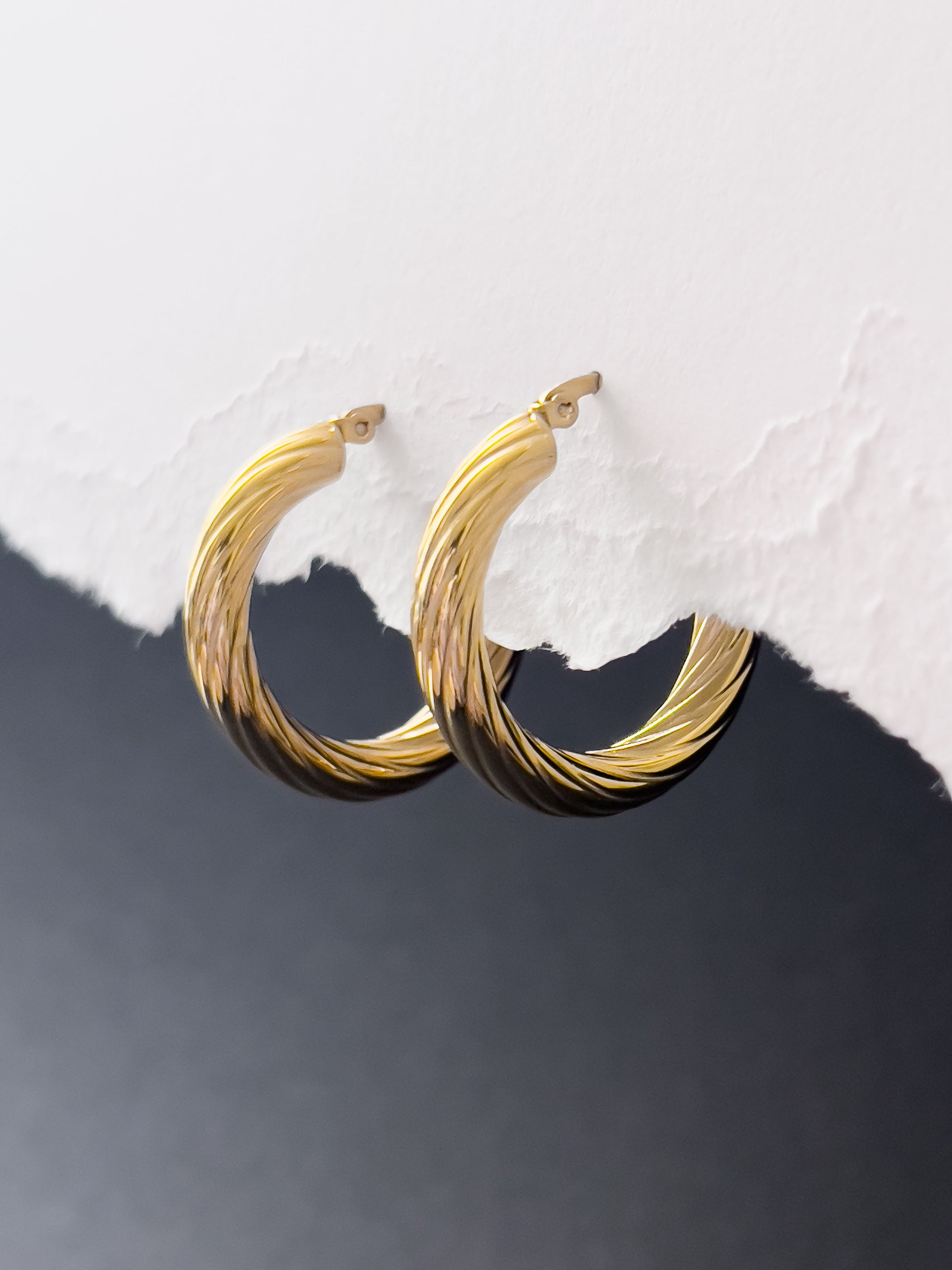 Fancy something a little swirly? These enchanting SWIRL hoop earrings captivate with their delicately crafted twisted pattern. We think they're truly beautiful 🖤