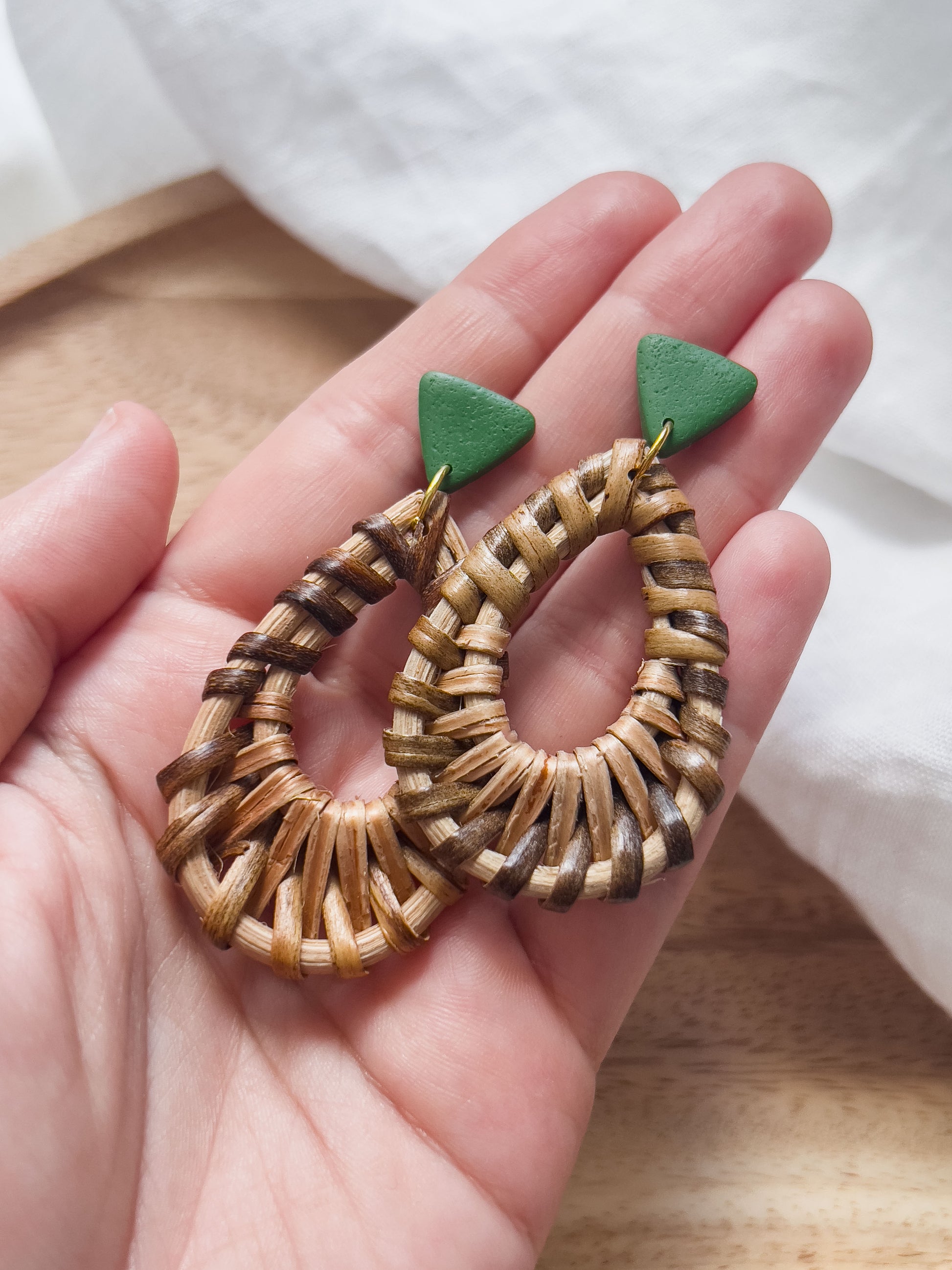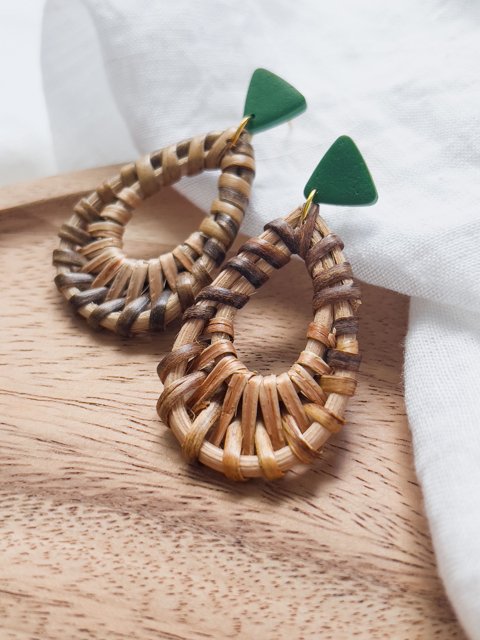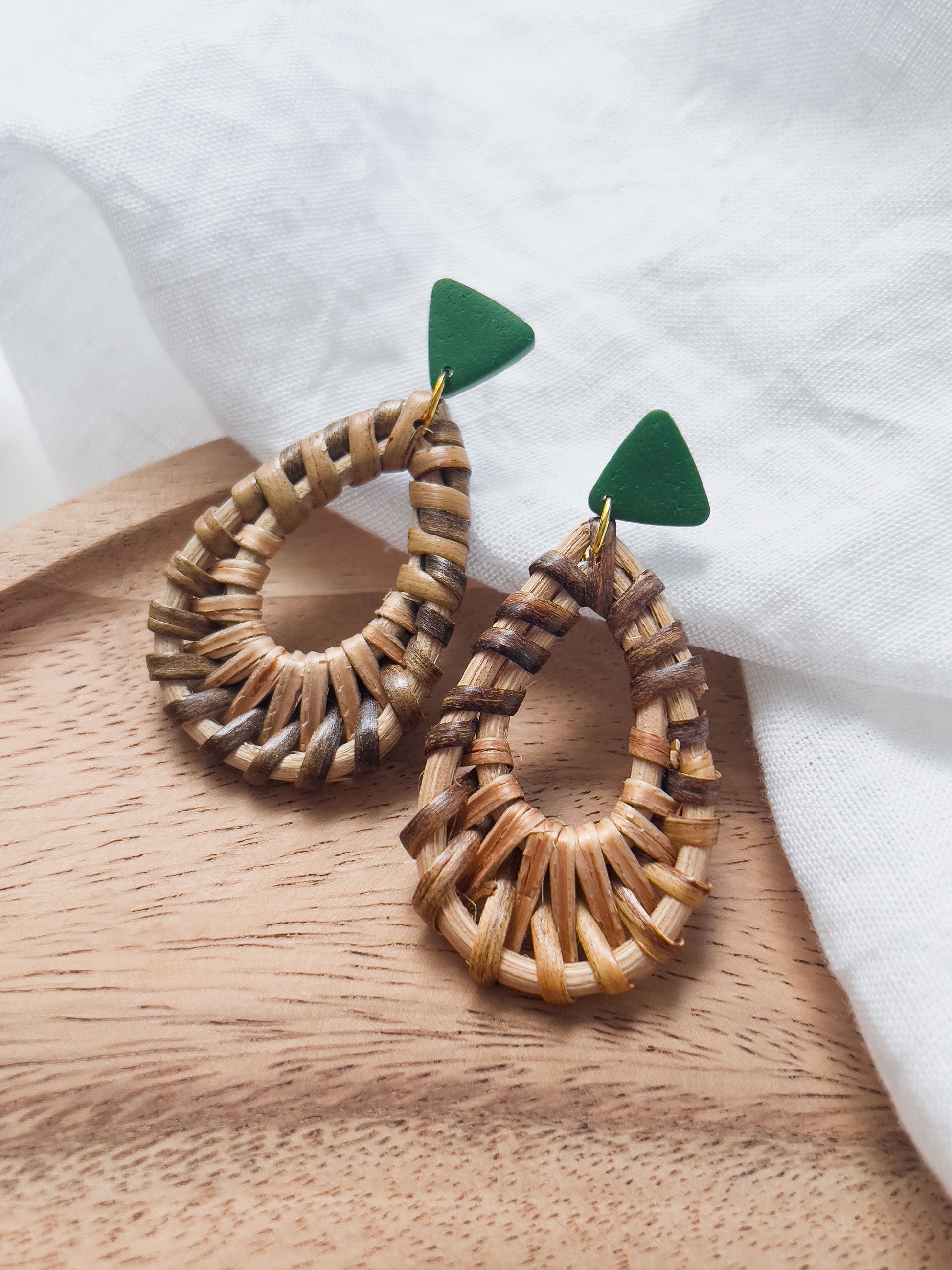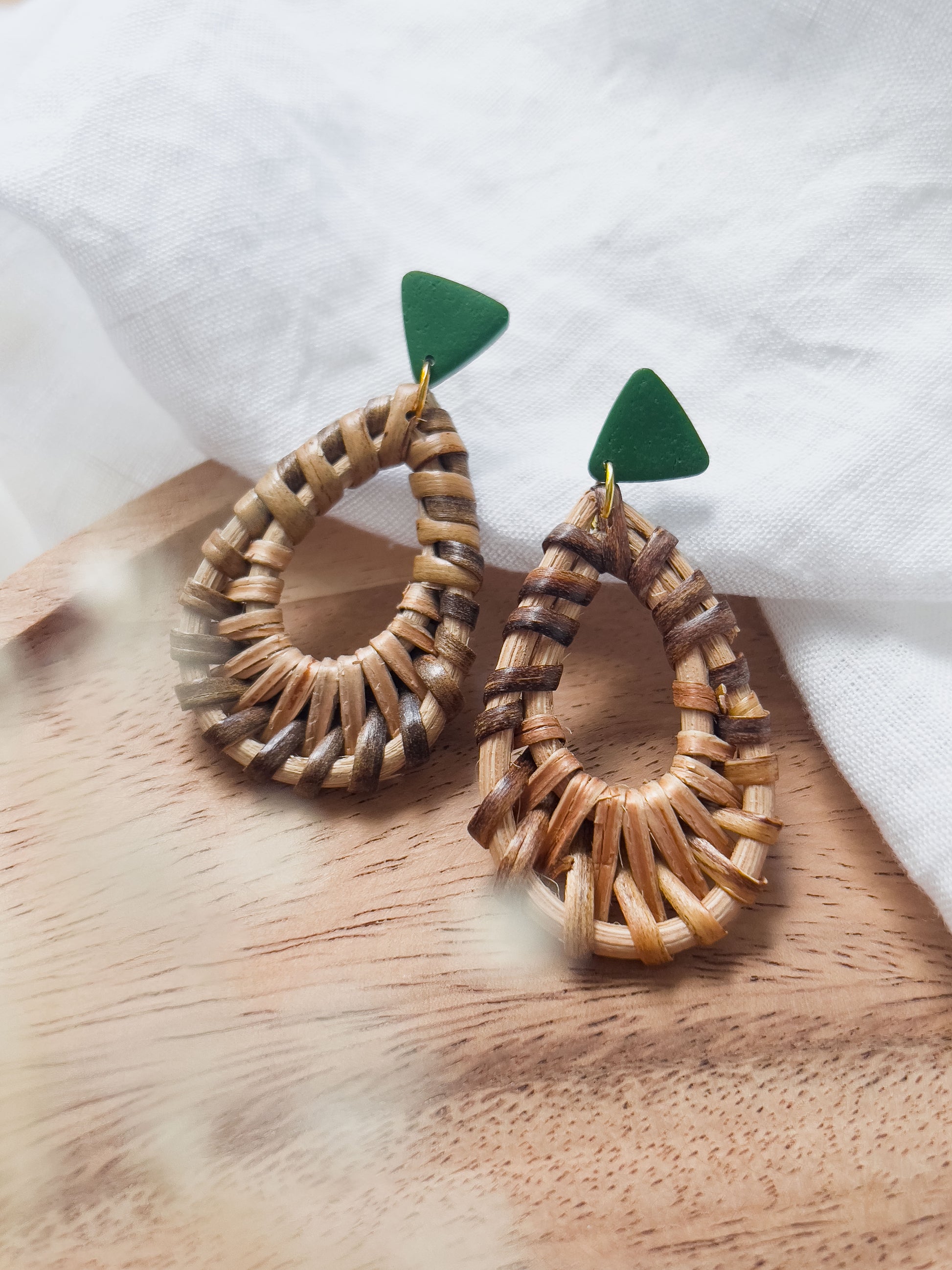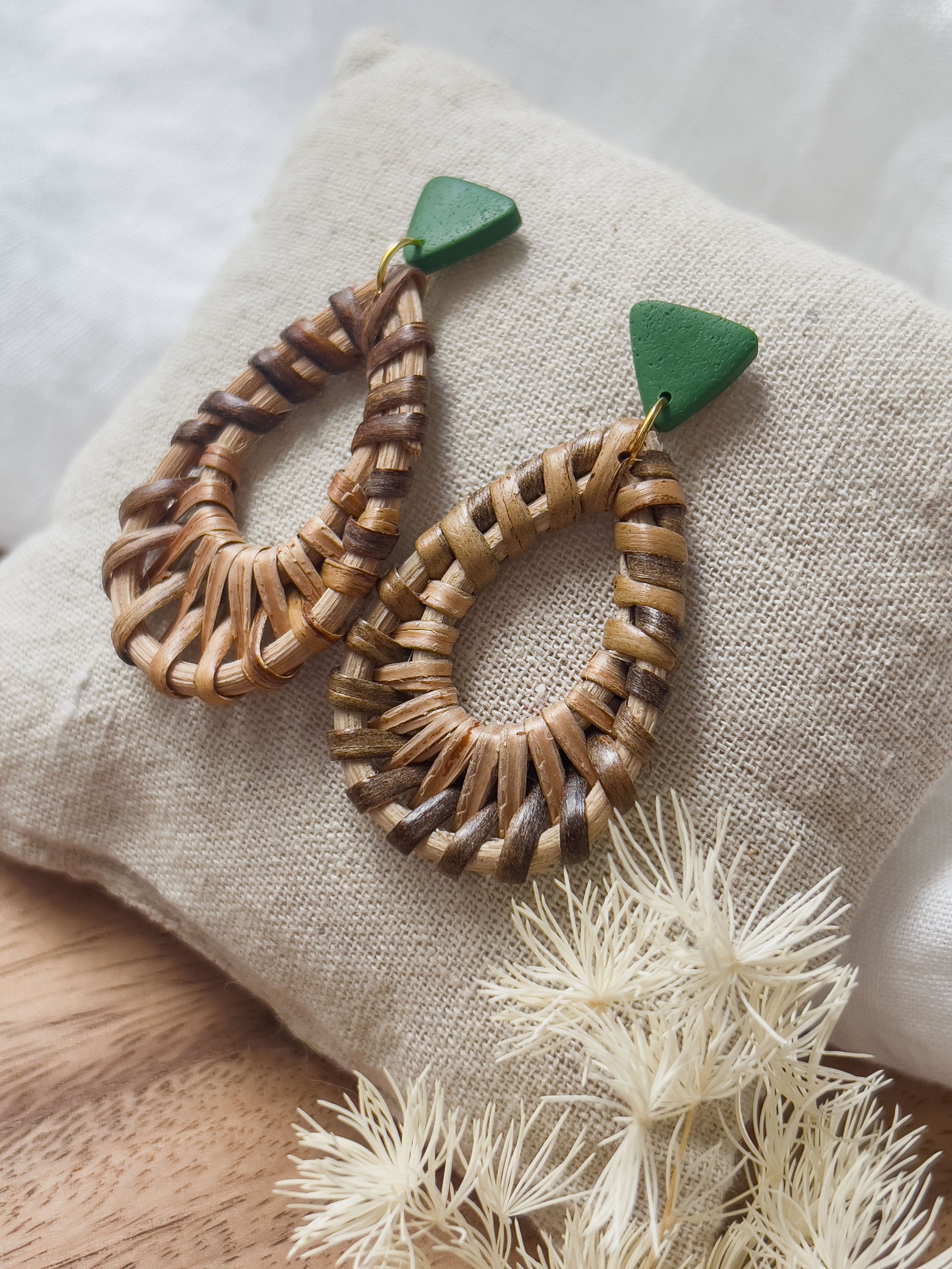 Col K ✦ Tropische grüne Rattan Ohrringe