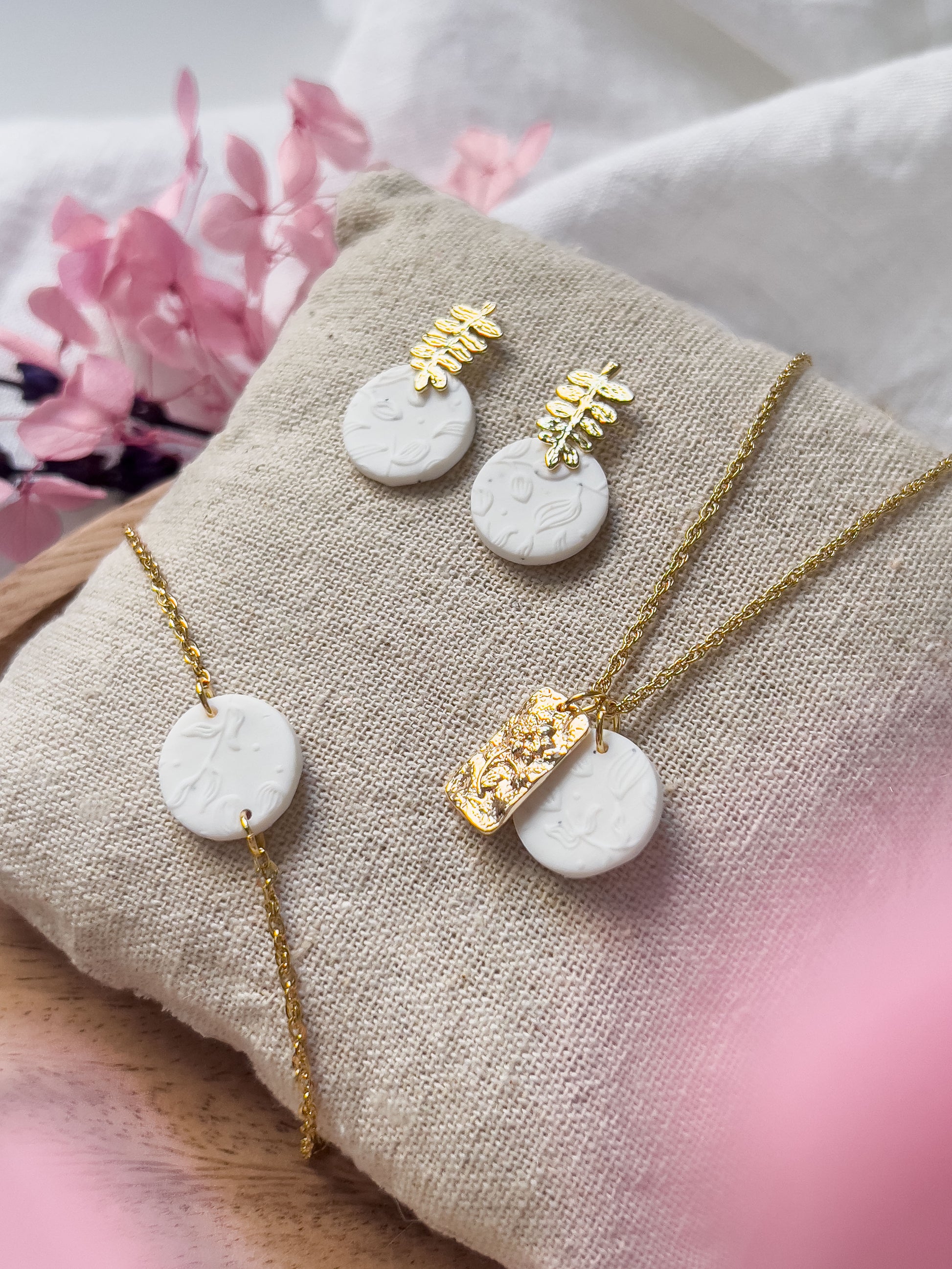 - The jewelry is mainly made of hypoallergenic, gold-plated stainless steel, 18-carat gold-plated or silver-plated brass and lightweight polymer clay, an oven-hardening modeling clay. The exact material information can be found under each product.