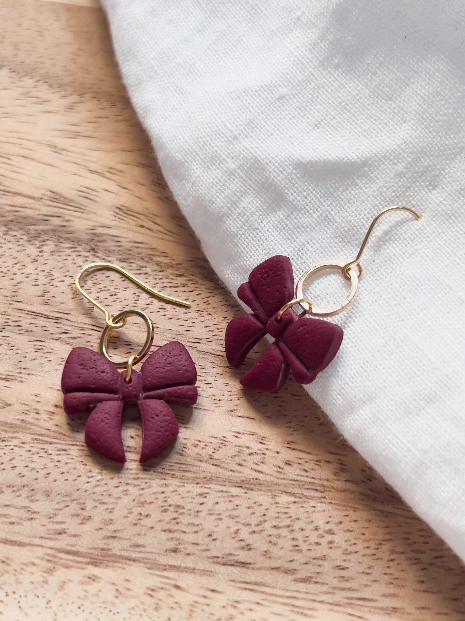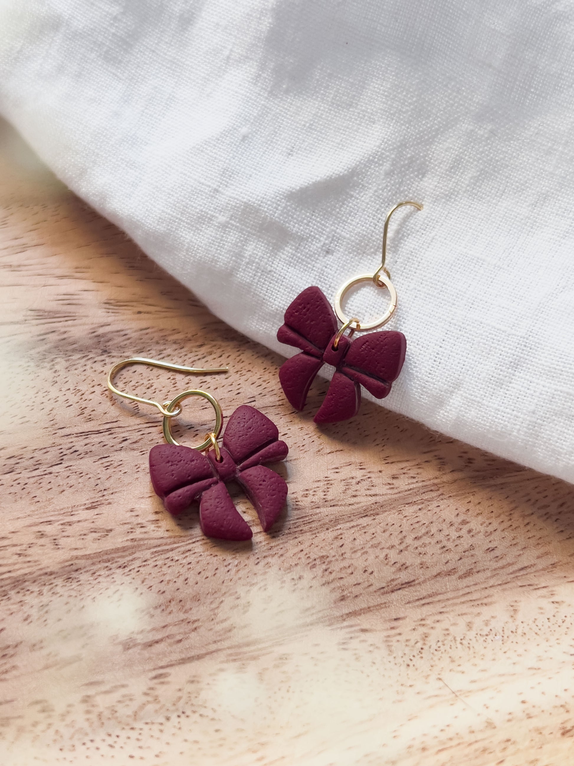 Col R ✦ Bordeauxrote Schleifchen Ohrringe