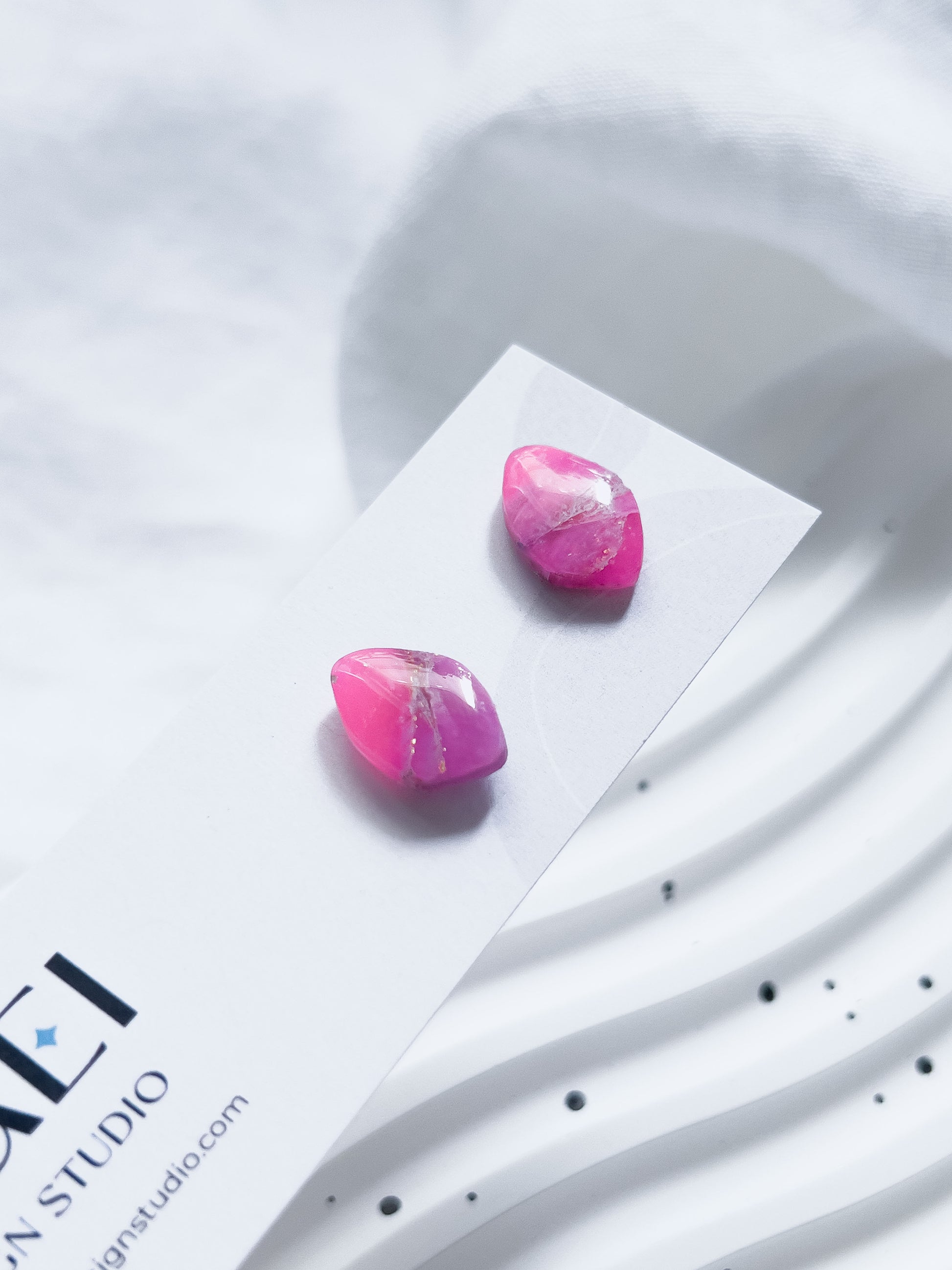 Col R ✦ Fuchsia-marmorierte Kiesel Ohrstecker