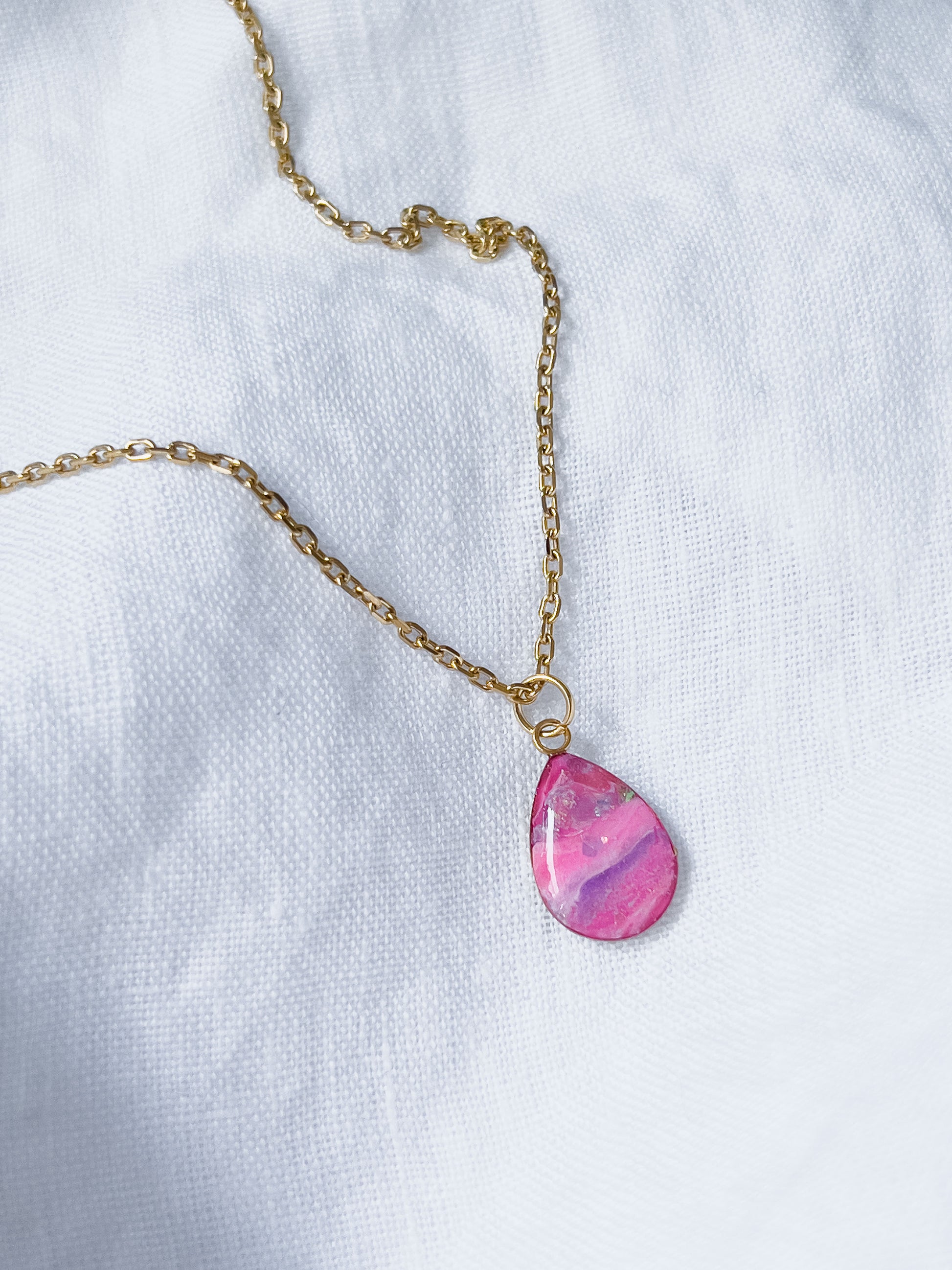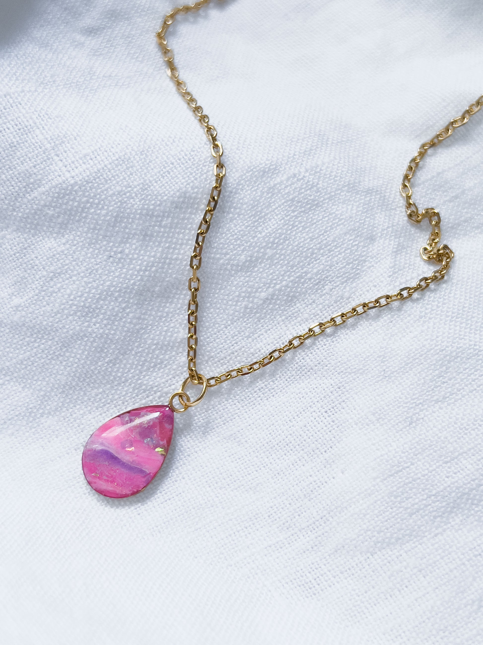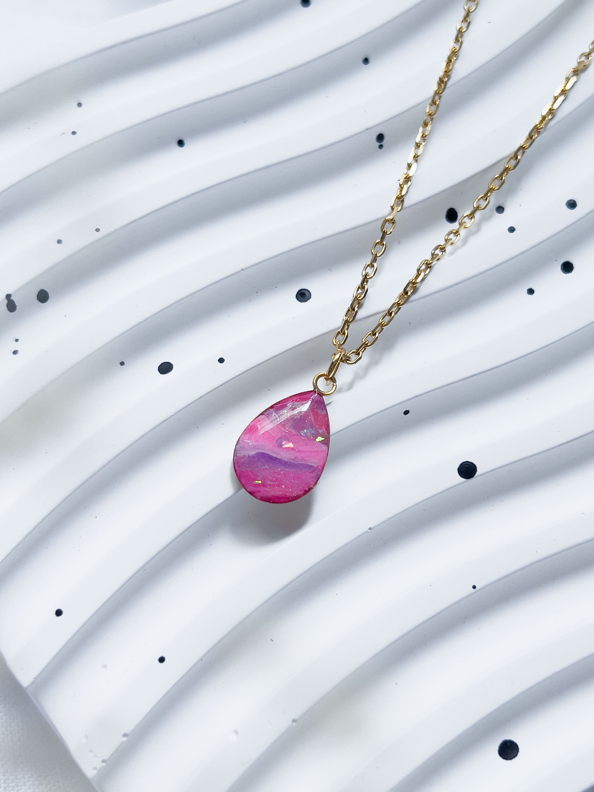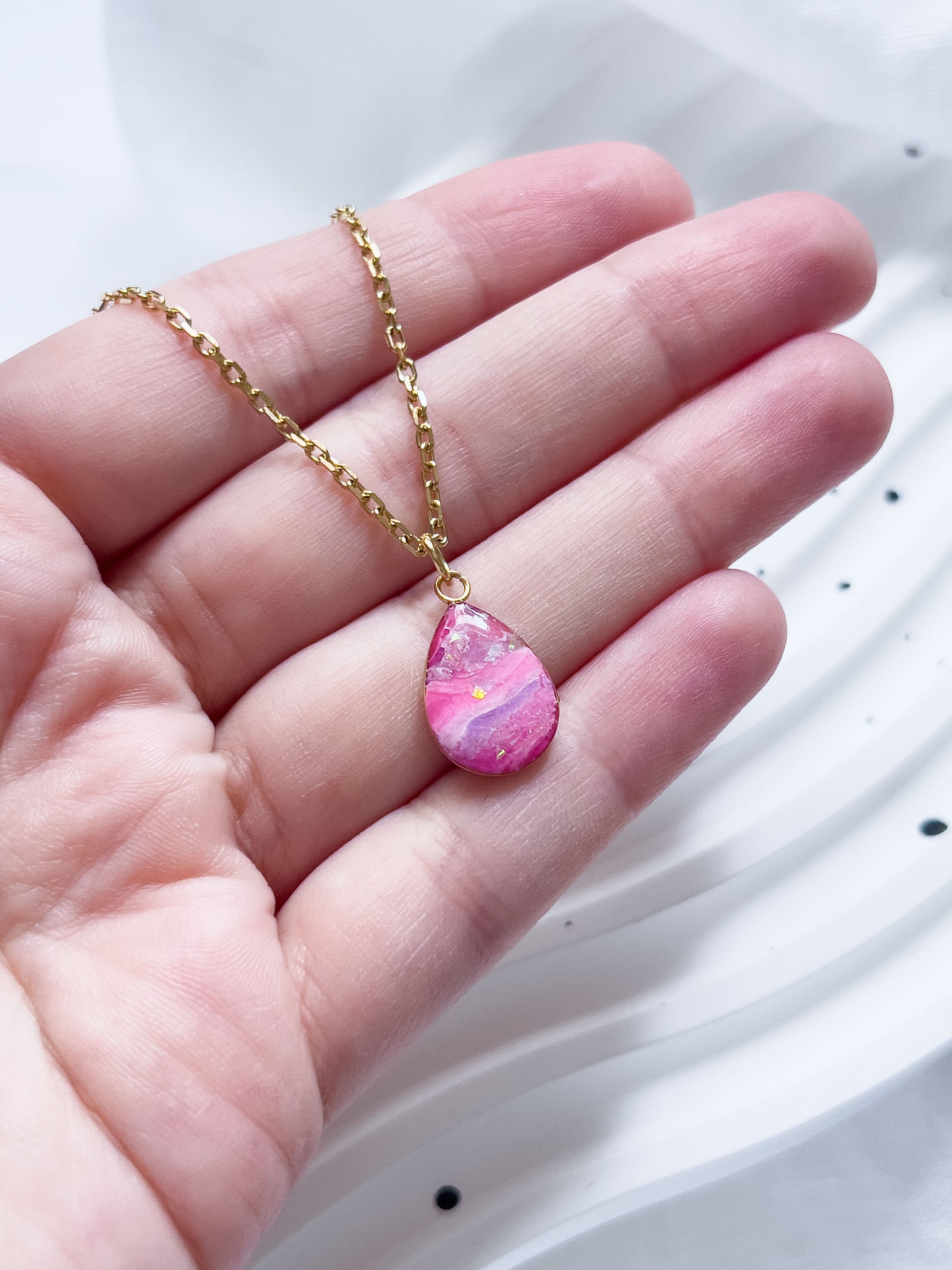 Col R ✦ Fuchsia-marmorierte Tropfen Halskette