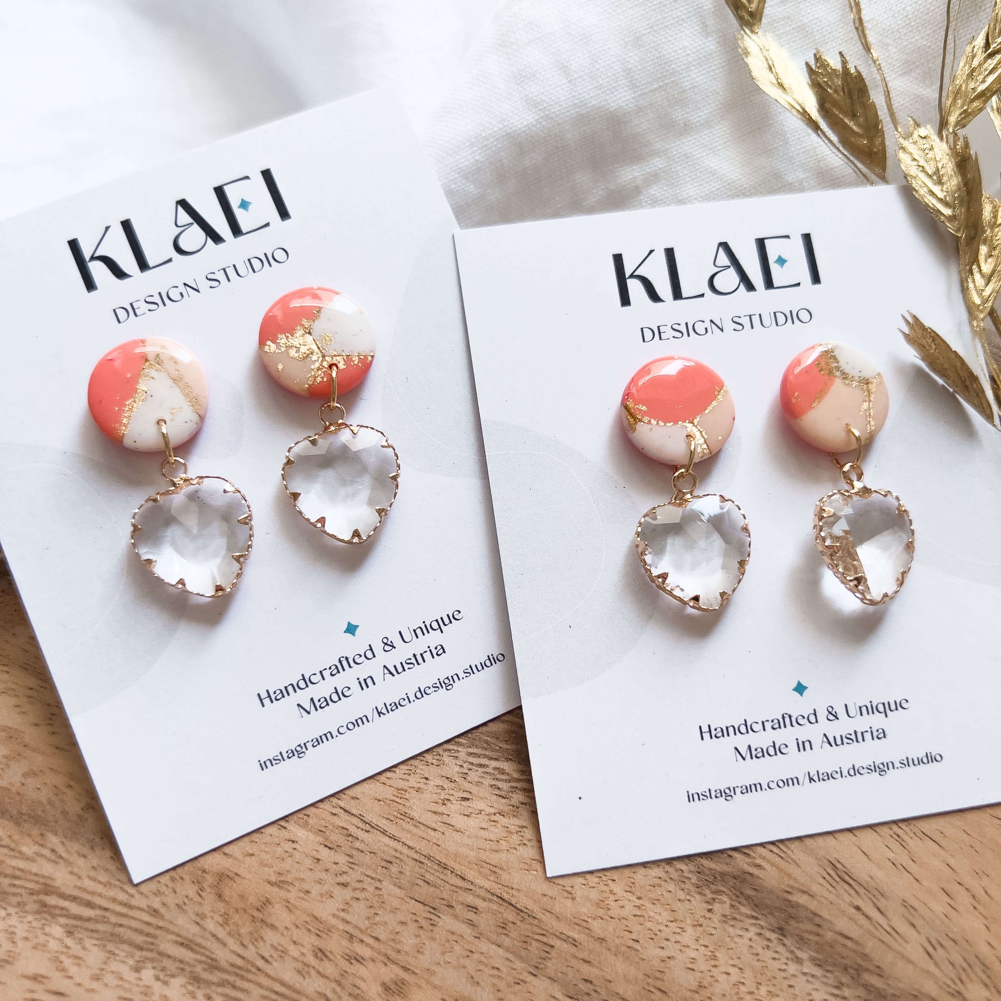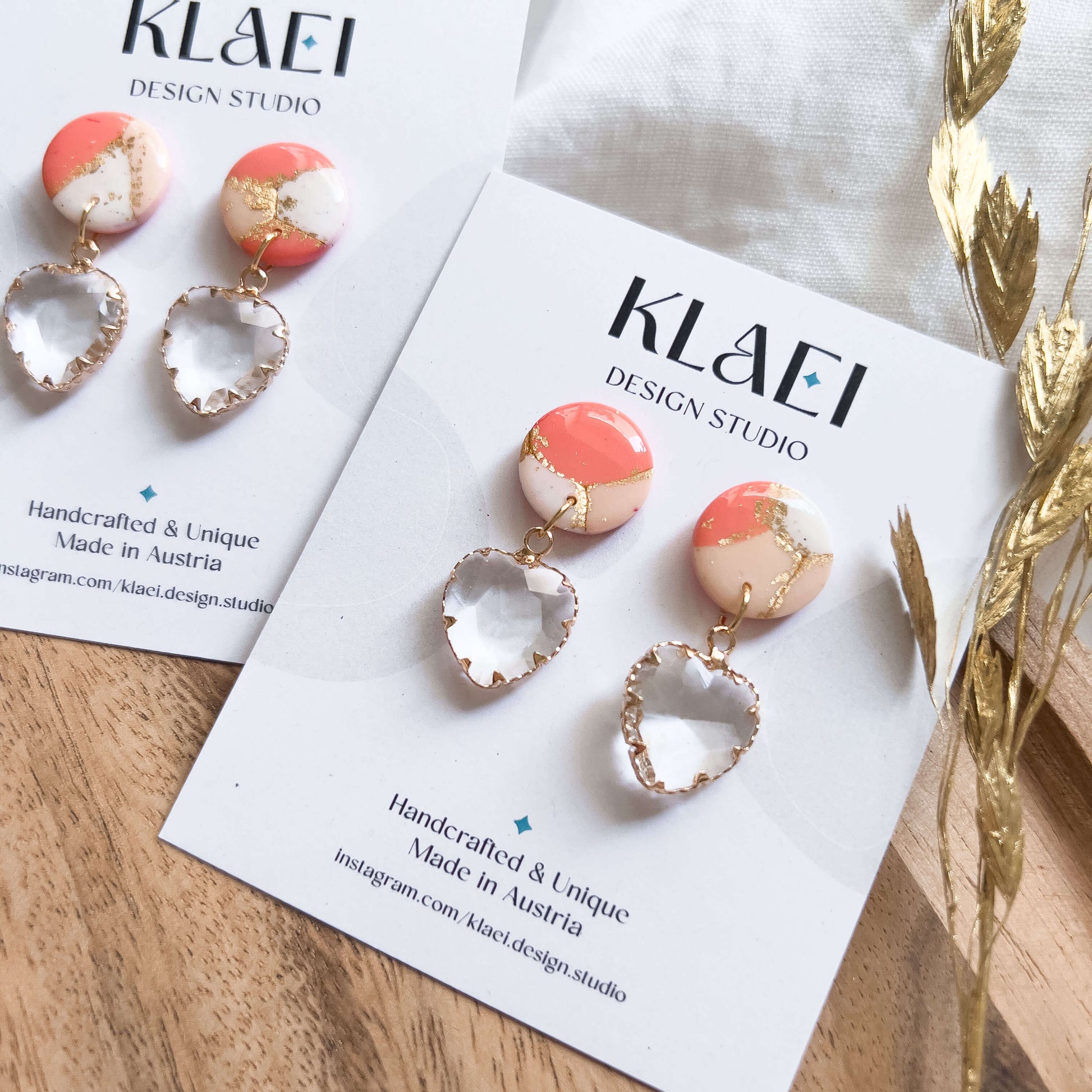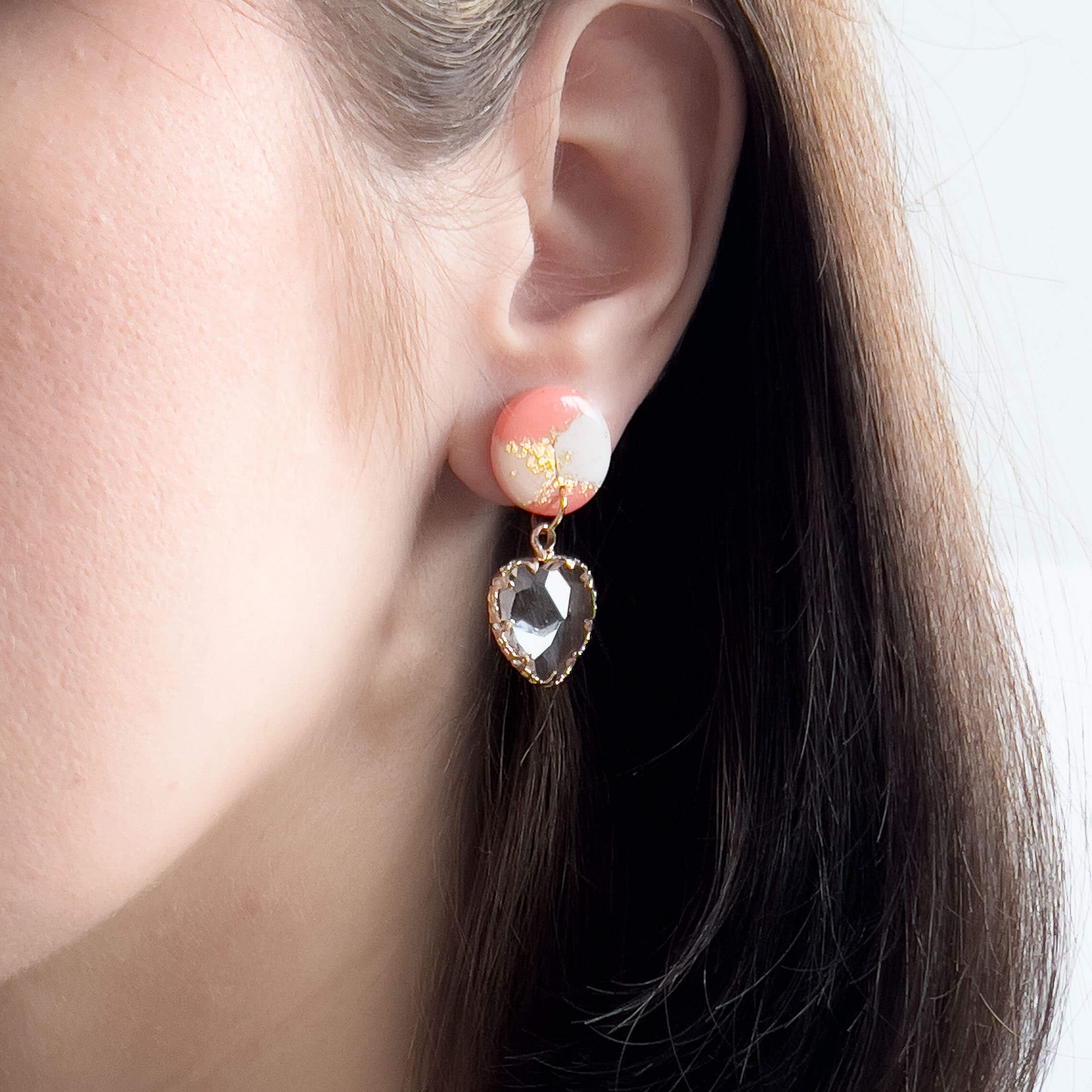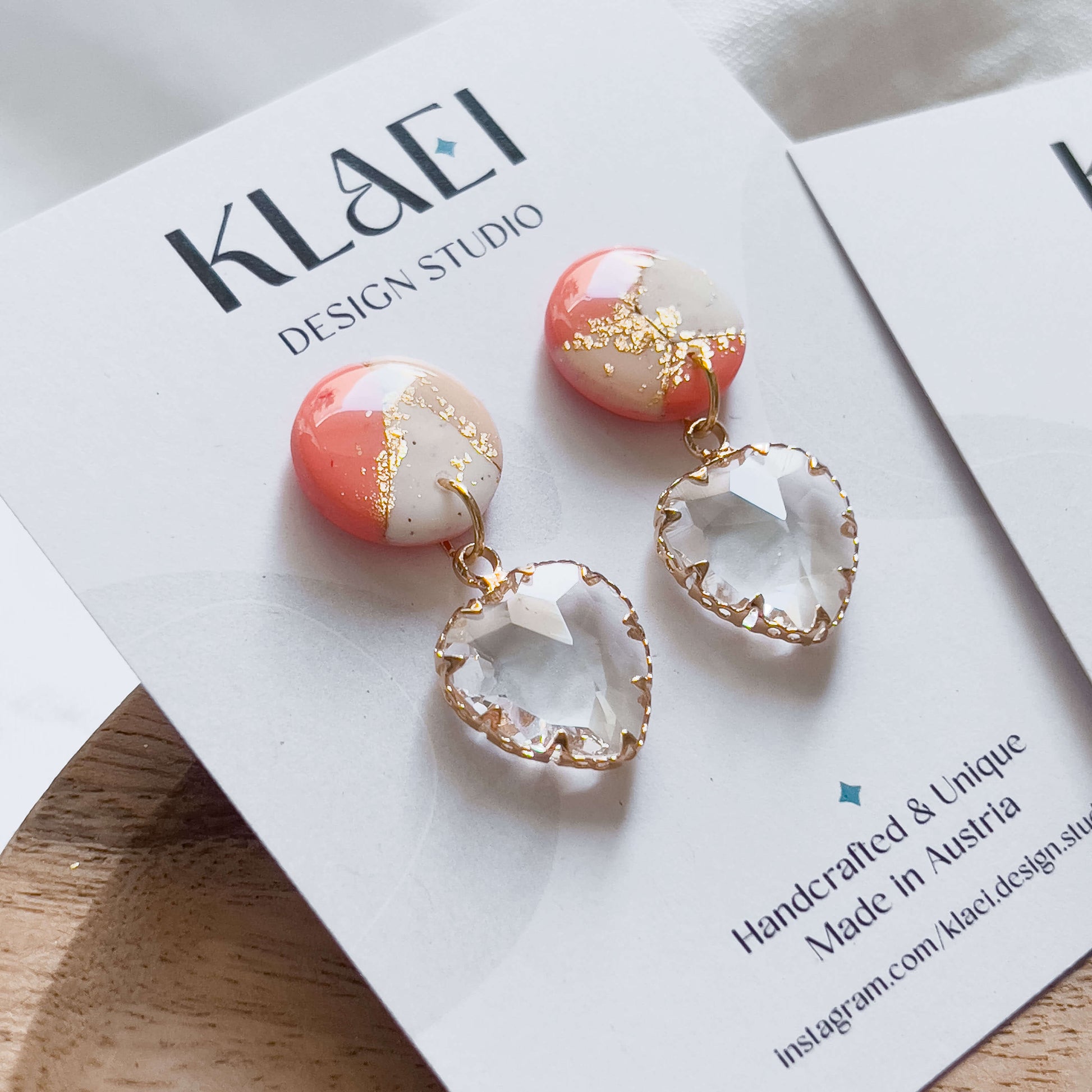 Diese pfirsichfarbenen Ohrringe bestechen durch ihren herzförmigen Anhänger aus Kristallglas, der das Licht wunderschön in sich bricht 🤍