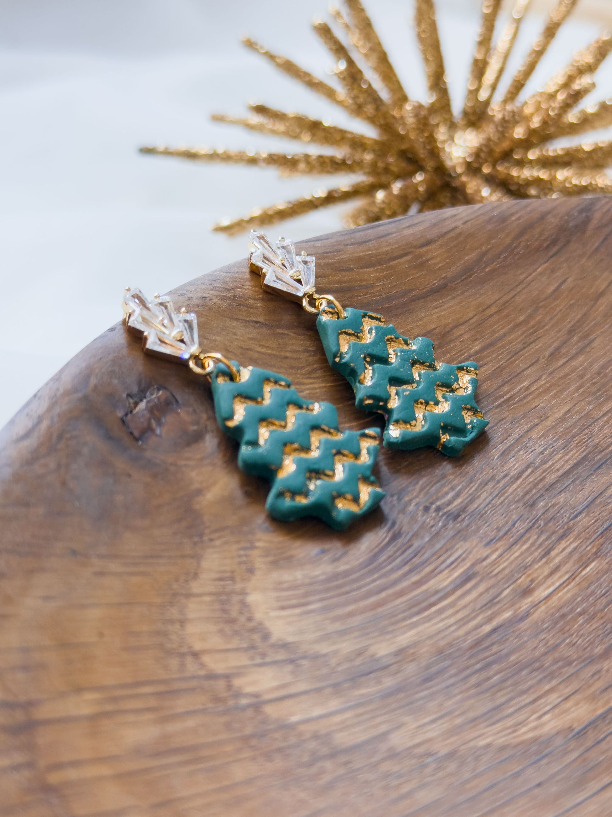 Col A ✦ Tannenbaumgrüne Christbaum Ohrringe mit Zickzack-Muster