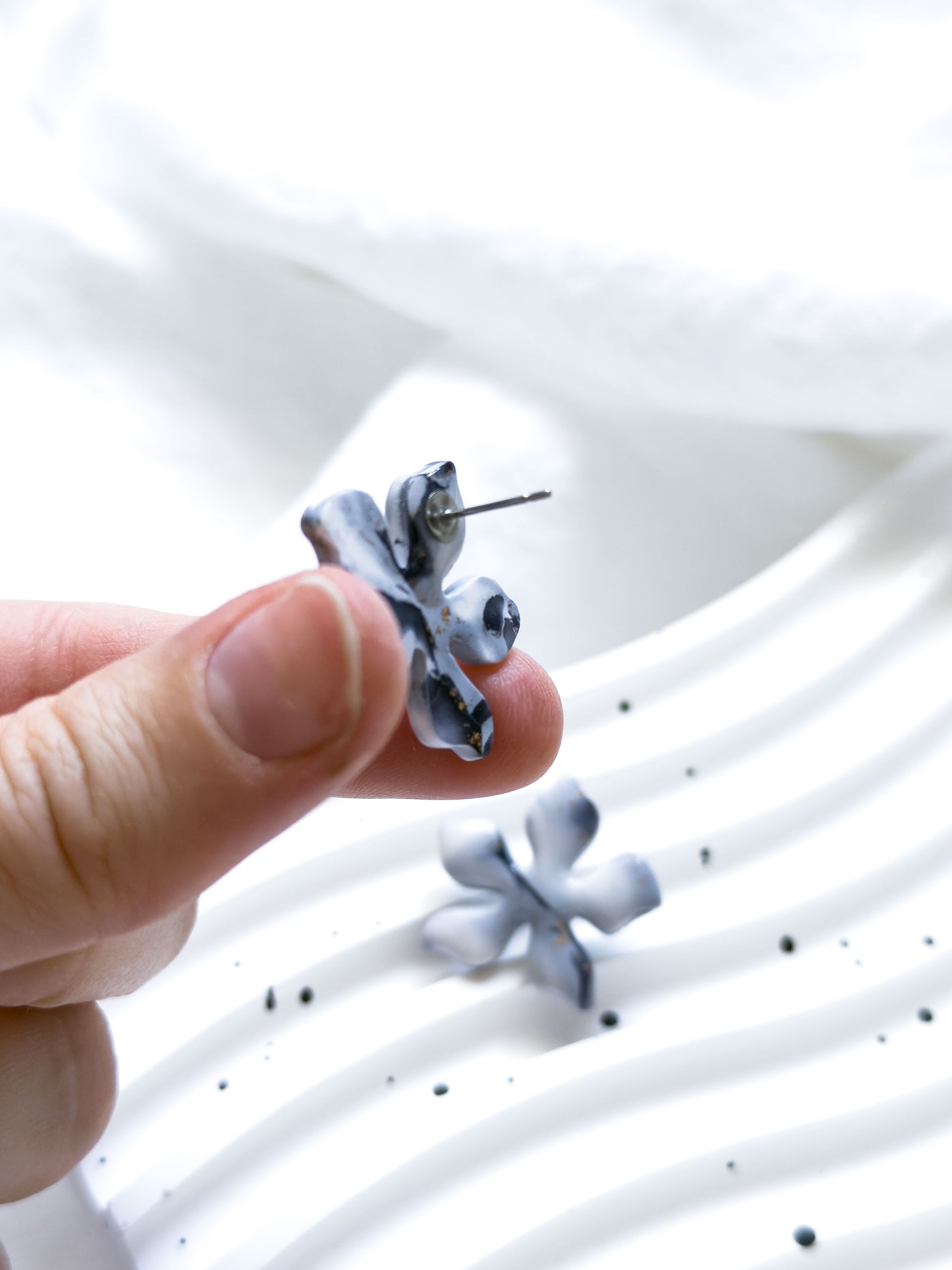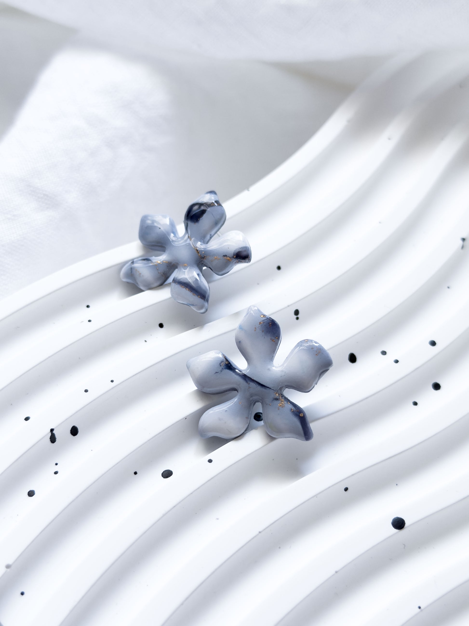 Col A ✦ Weiß-grau marmorierte Blumenohrstecker