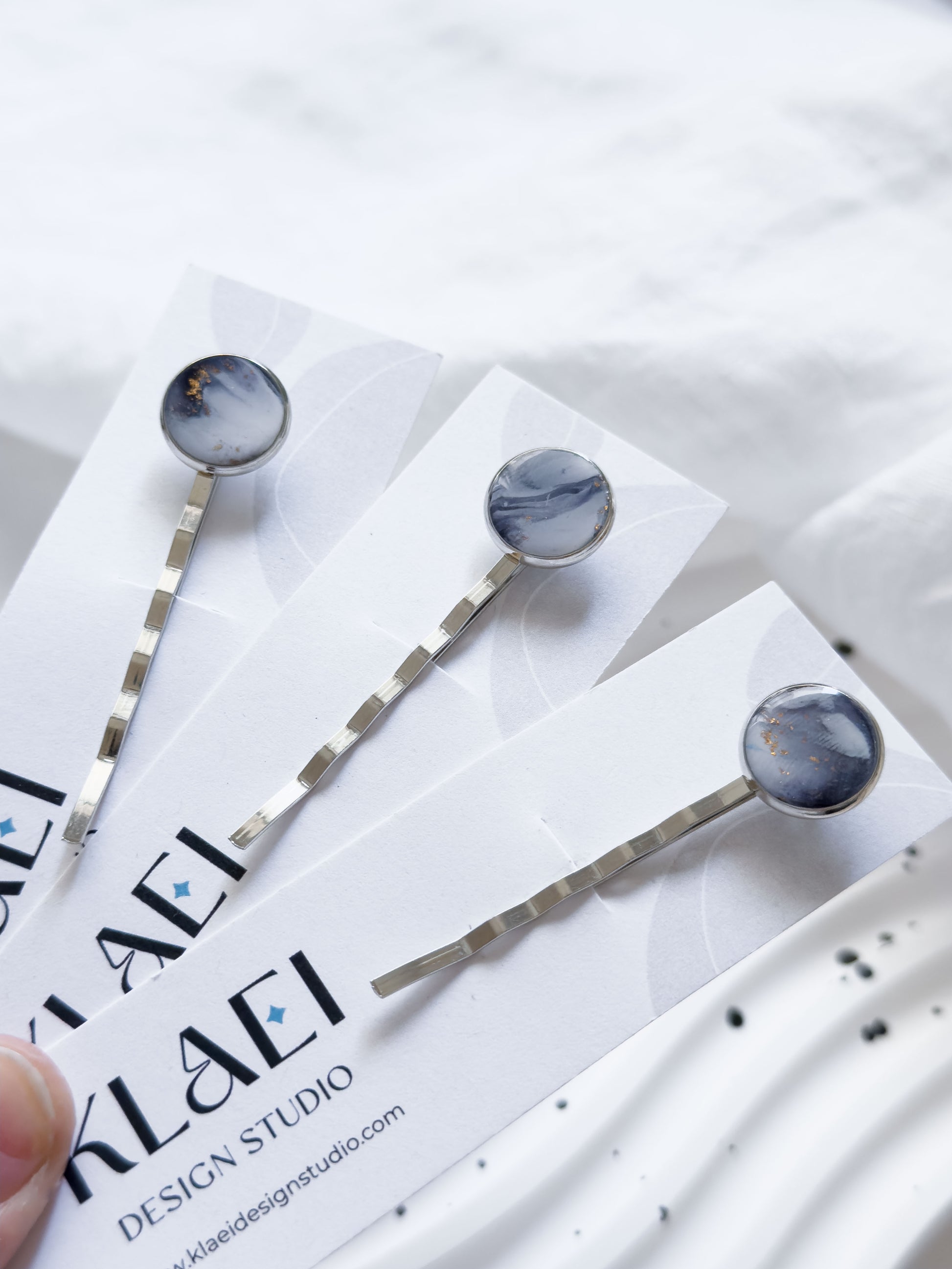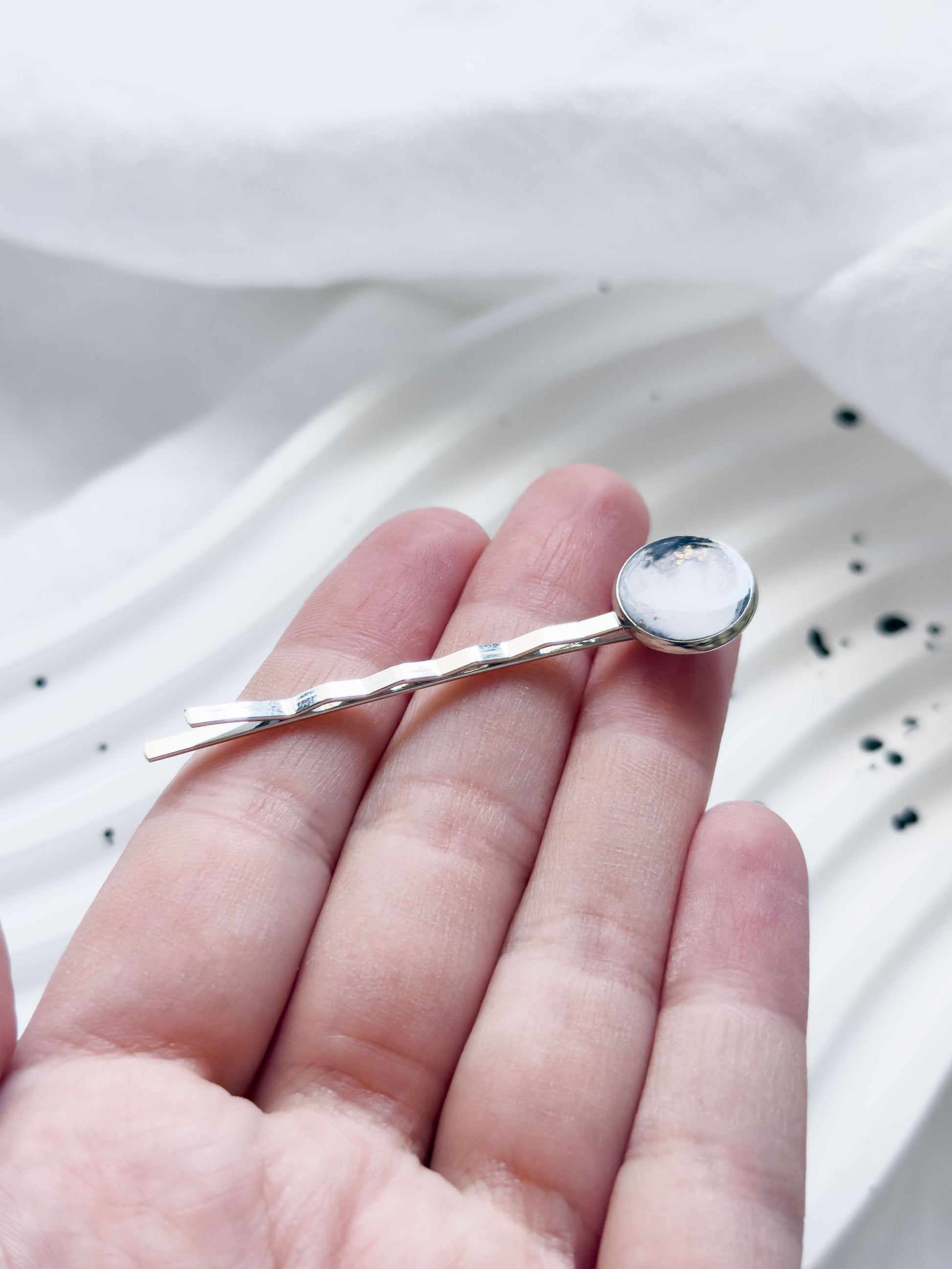 Col A ✦ Weiß-grau marmorierte Haarspange